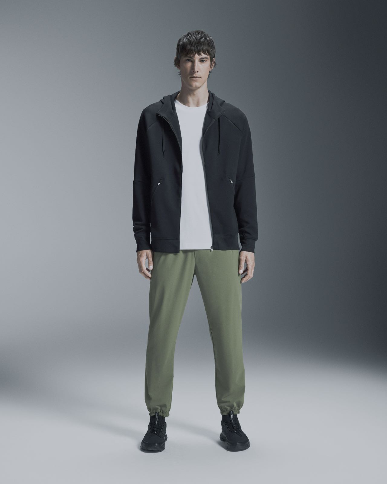弹性抽绳腰头+隐藏式口袋设计,实用性与颜值并存,3M反光logo, 关键部位三针五线车缝,耐磨抗撕裂