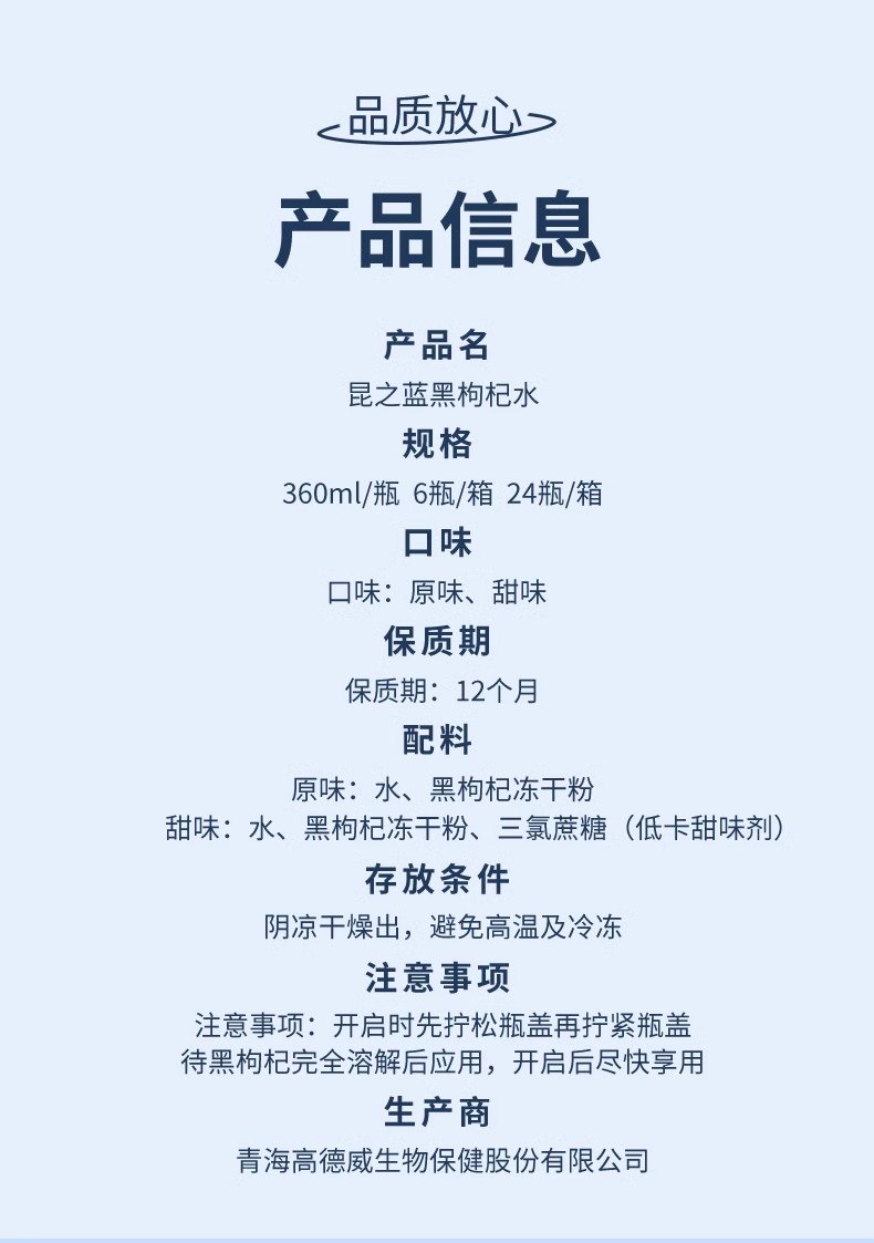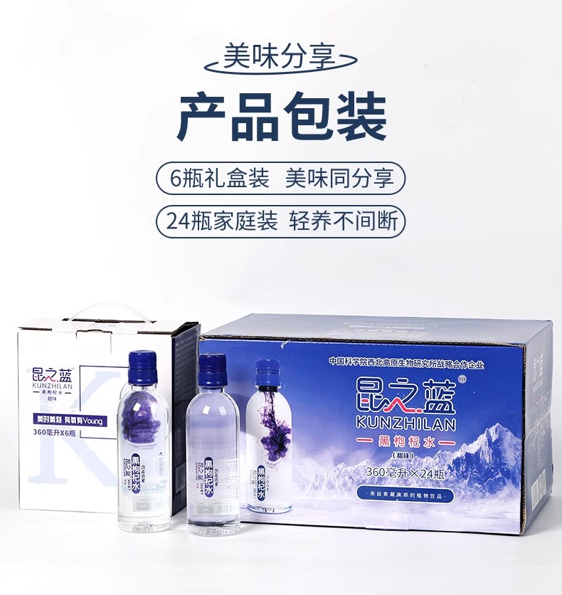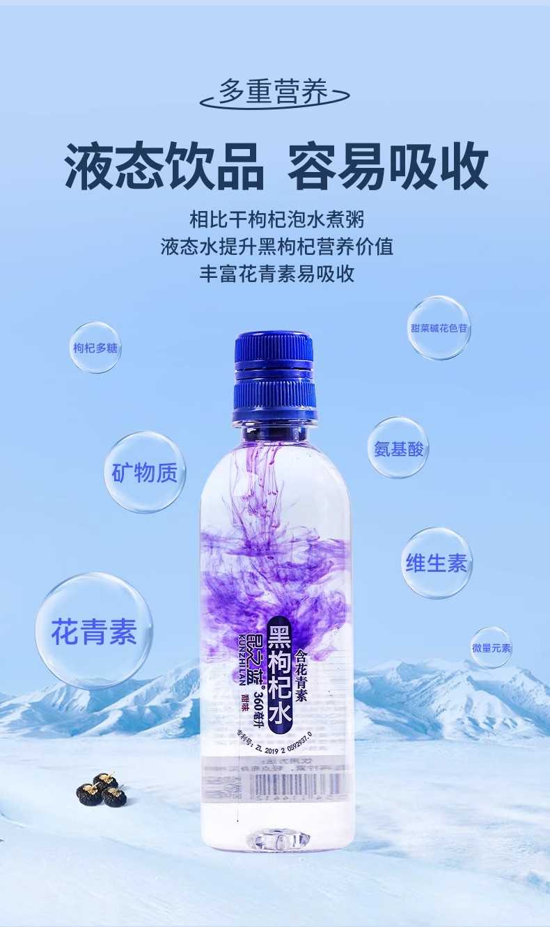 【东昆仑】黑枸杞水富含花青素 固液分离 即开即溶 网红爆款360ML*12瓶 360ML*24瓶 低卡低脂