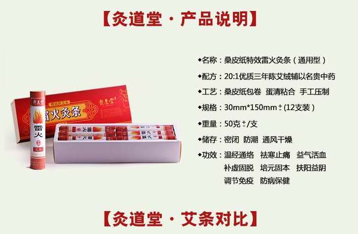 灸道堂经典雷火灸,檀香艾条(30*150mm/支)| 12支/盒 | 50克/支