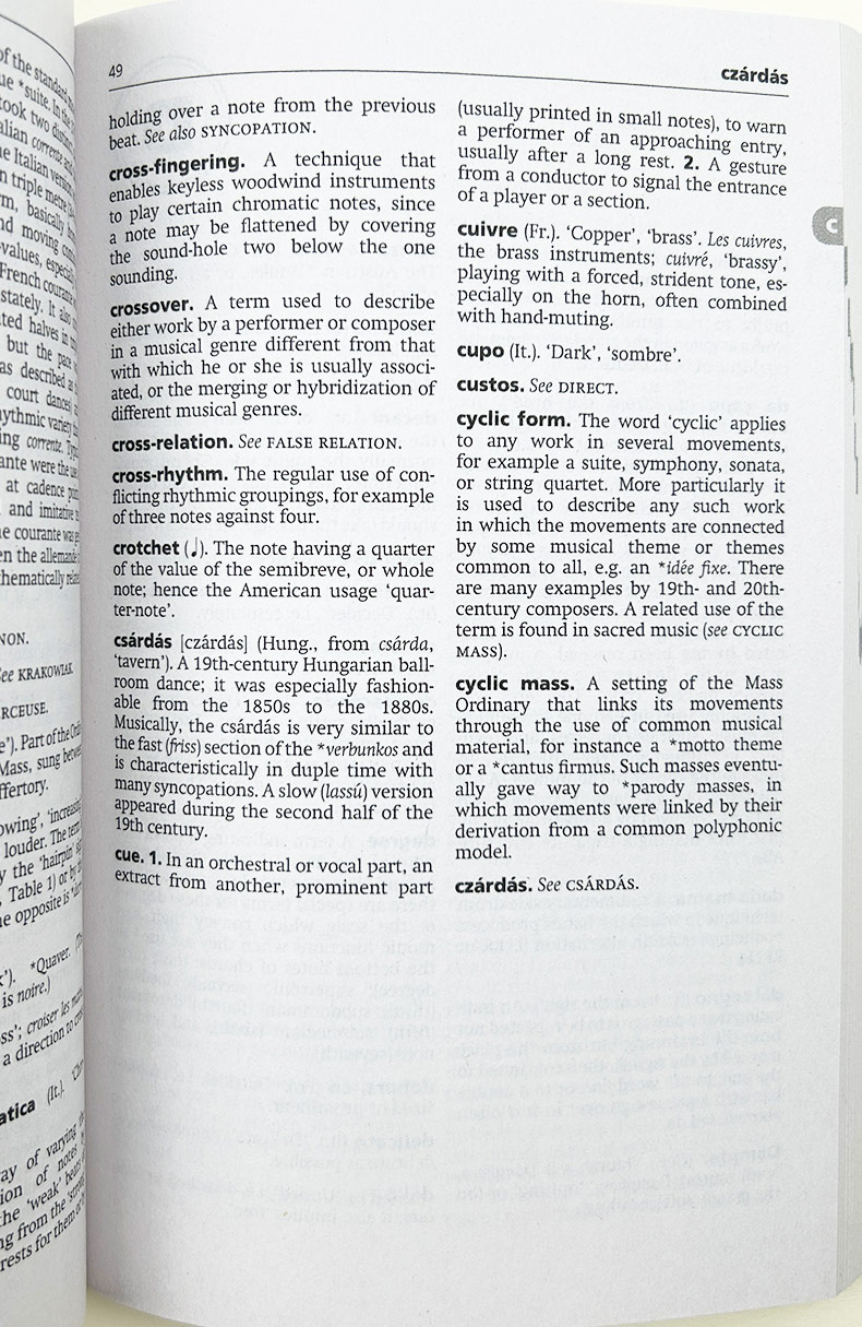 Printed music and writing about music involve the use of complex systems of notation and a wealth of technical terms in several languages. The Oxford Dictionary of Musical Terms provides clear, succinct, definitions of a comprehensive range of the musical terms, in English and other European languages, that are likely to be encountered in Western music, including in jazz and popular musical genres. Over 2,500 A-Z entries range across a spectrum of subjects, among them: rhythm, meter, forms, genres, pitch, scales, chords, harmony and counterpoint, notational systems, composition and analysis, performance practice, tempo, expression, musical periods, artistic movements, computer applications, acoustics, and many more. Entries provide etymologies, and are fully cross-referenced. Some are illustrated with music examples and tables. An appendix lists all composers mentioned in the Dictionary, with their dates. An ideal book for composers, professional musicians, those learning to play musical instruments, and members of choirs and musical groups, the Dictionary is also be a useful quick reference book for concert-goers, C.D.-collectors, and radio listeners.