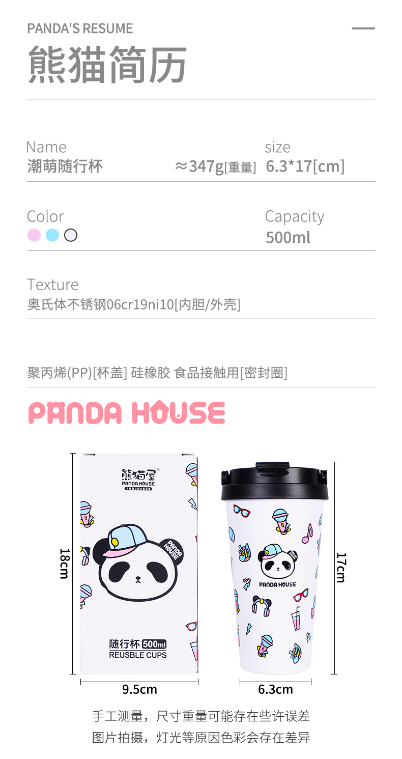 熊猫屋PANDAHOUSE 潮萌随行杯 多色可选