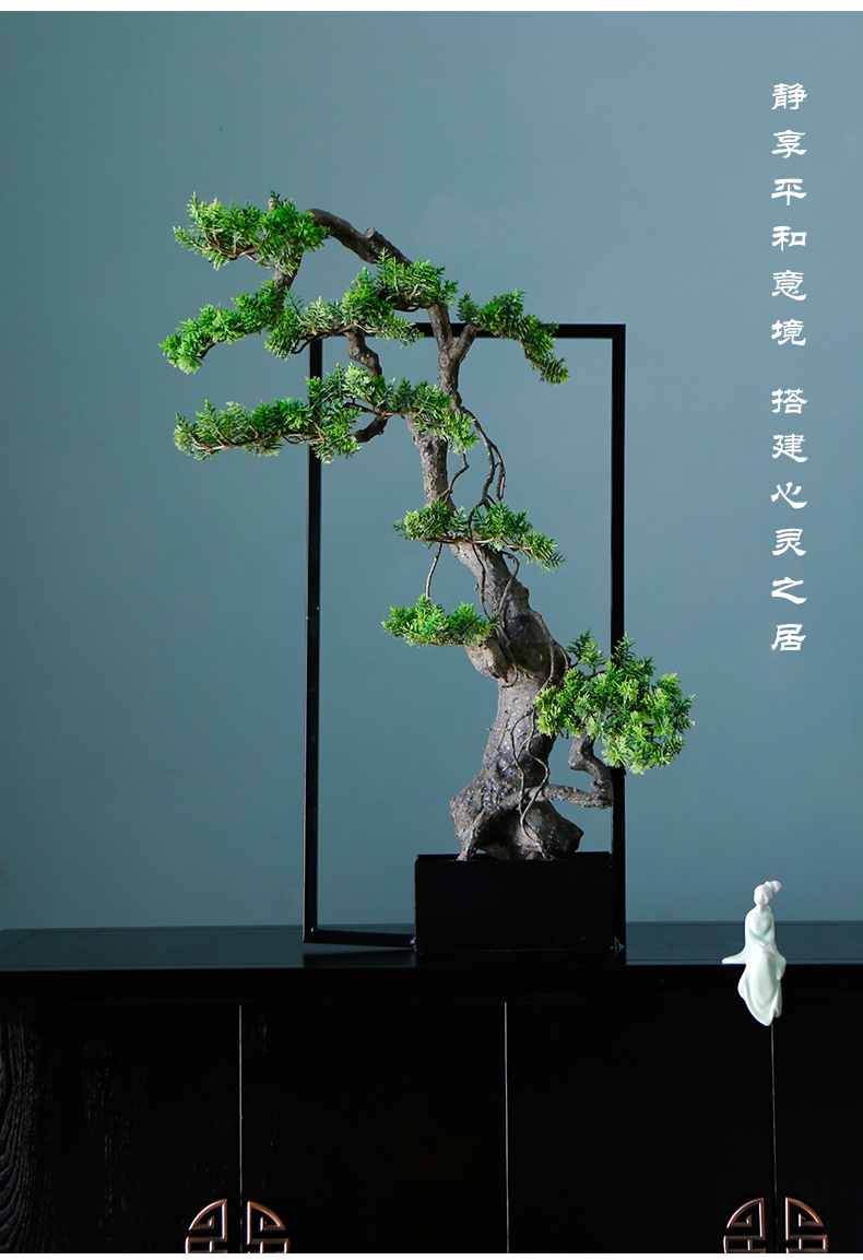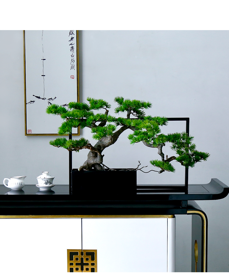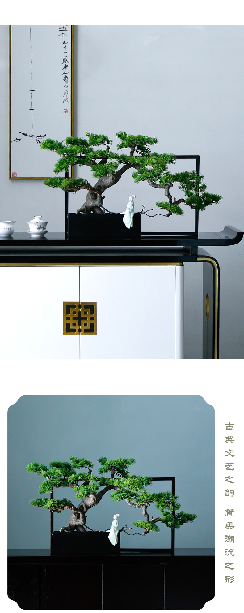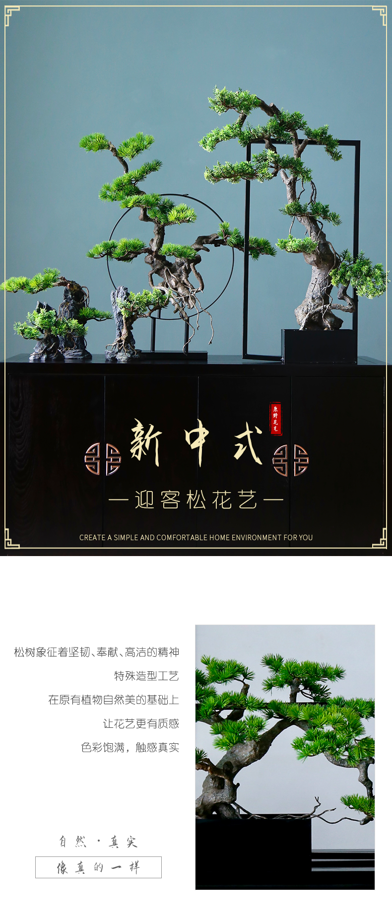 新中式仿真盆景观迎客松摆件玄关客厅酒店办公室酒店茶桌软装造景