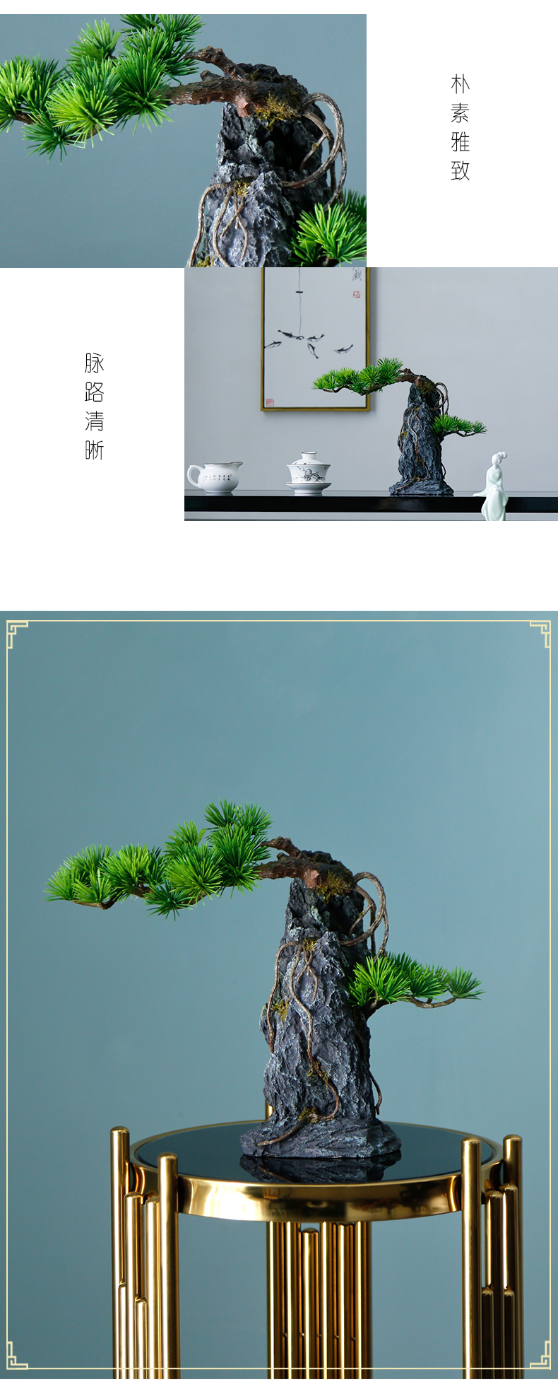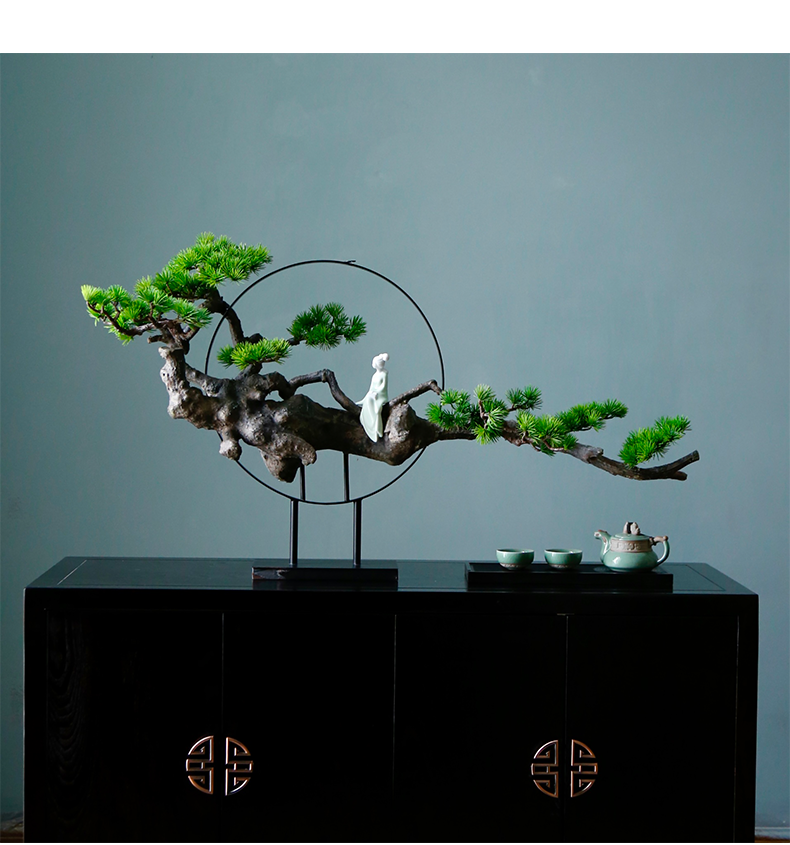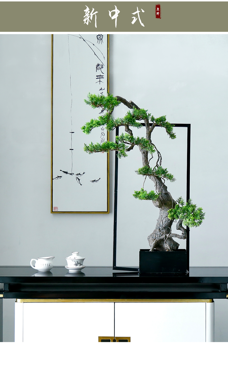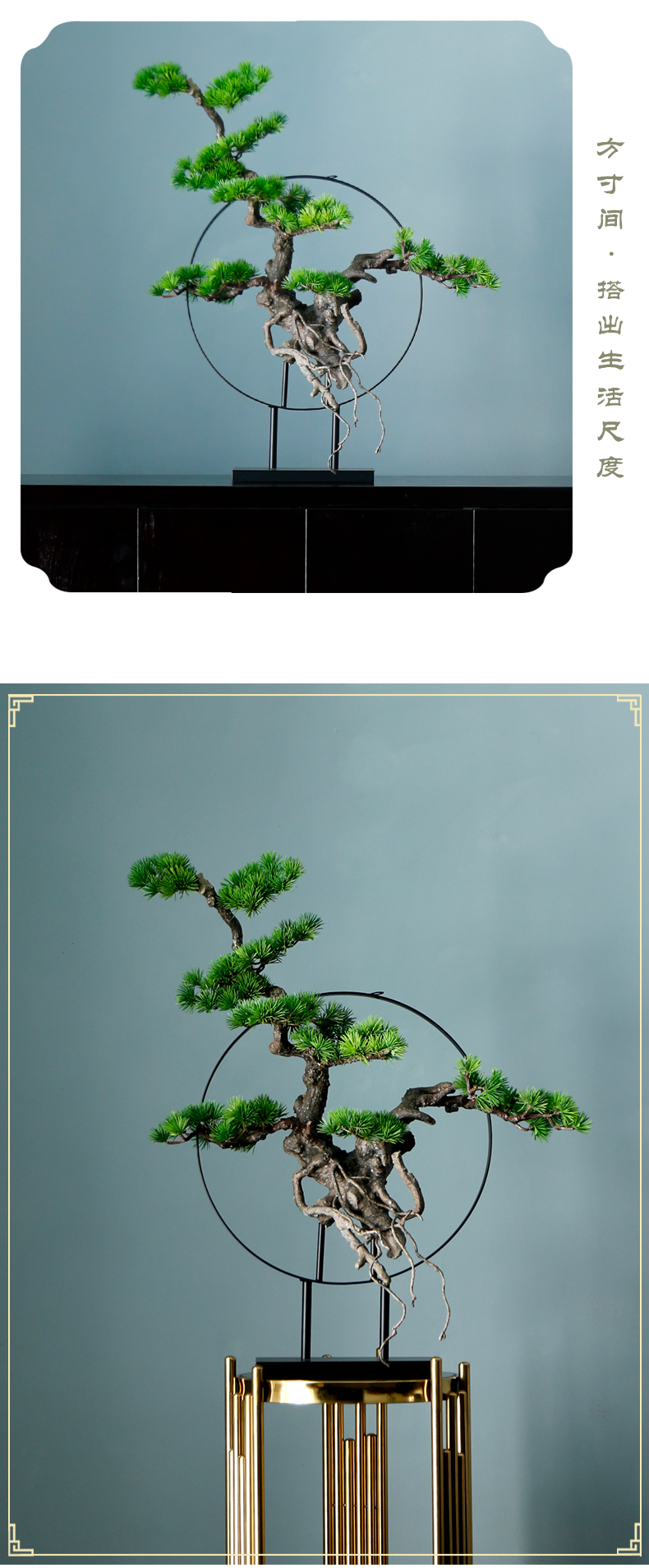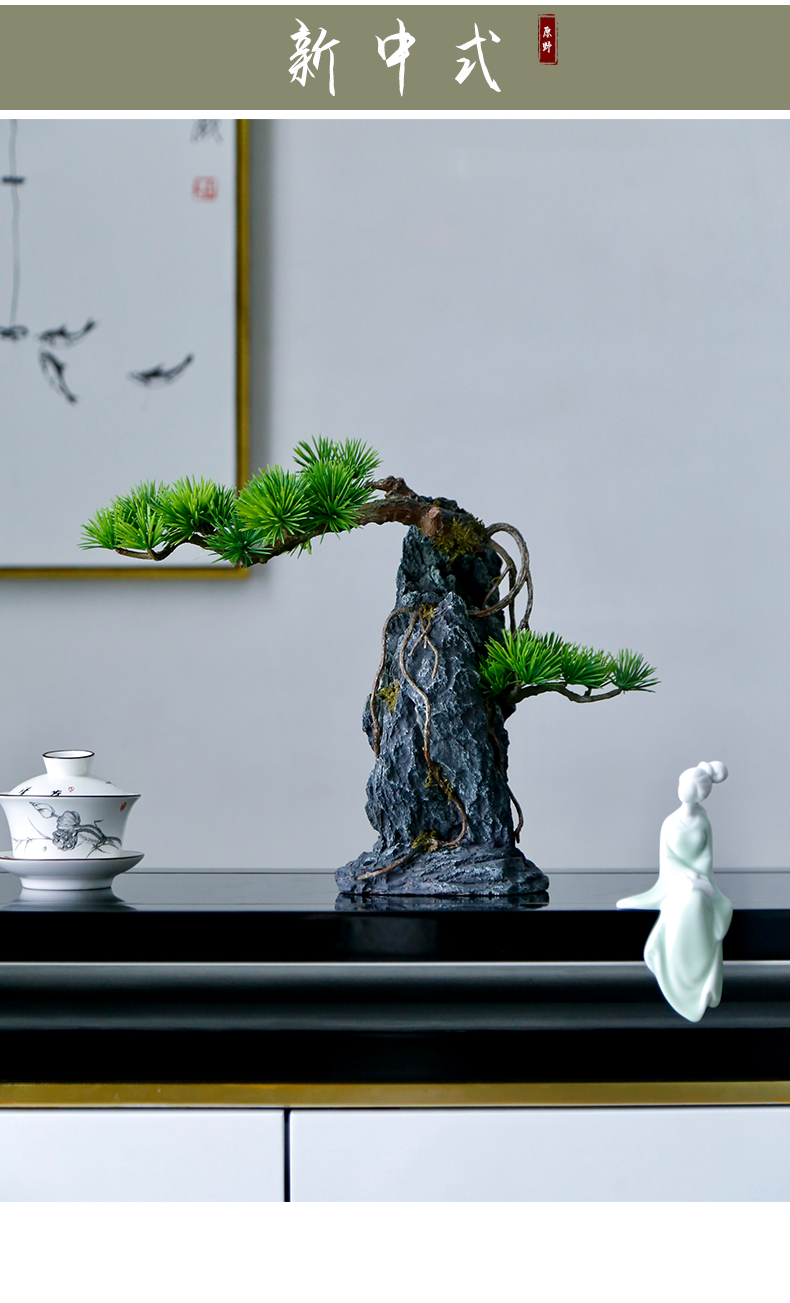 新中式仿真盆景观迎客松摆件玄关客厅酒店办公室酒店茶桌软装造景