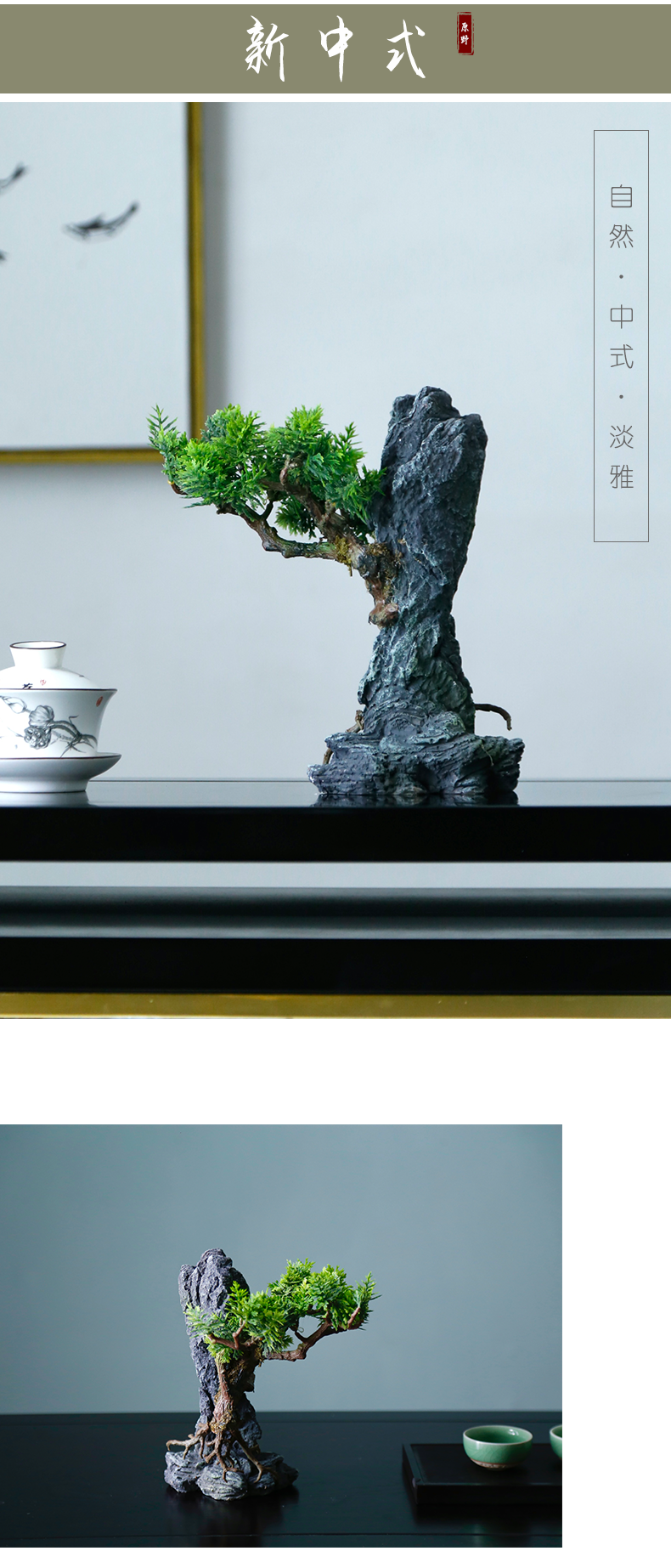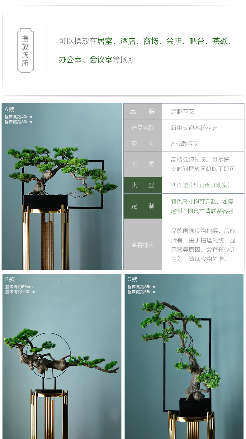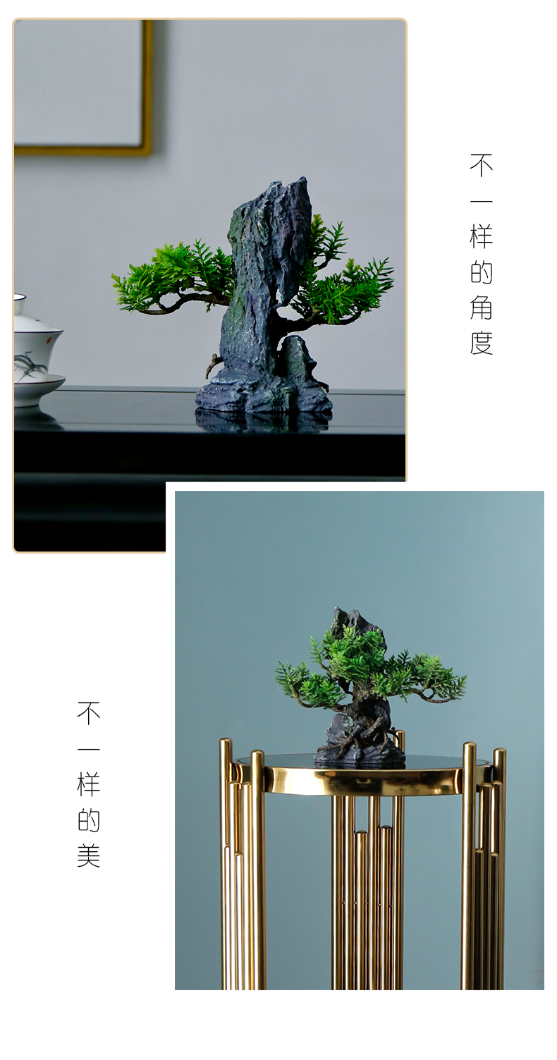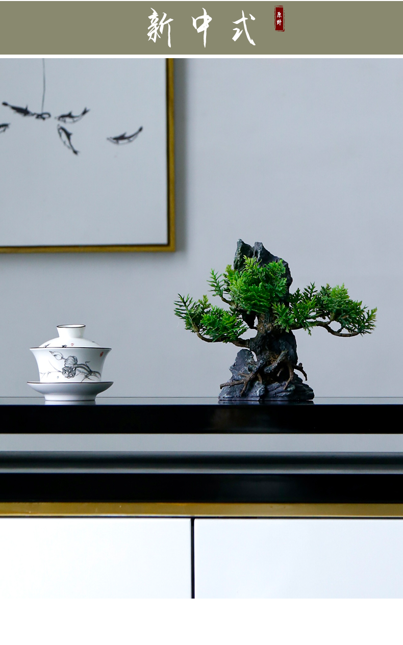 新中式仿真盆景观迎客松摆件玄关客厅酒店办公室酒店茶桌软装造景