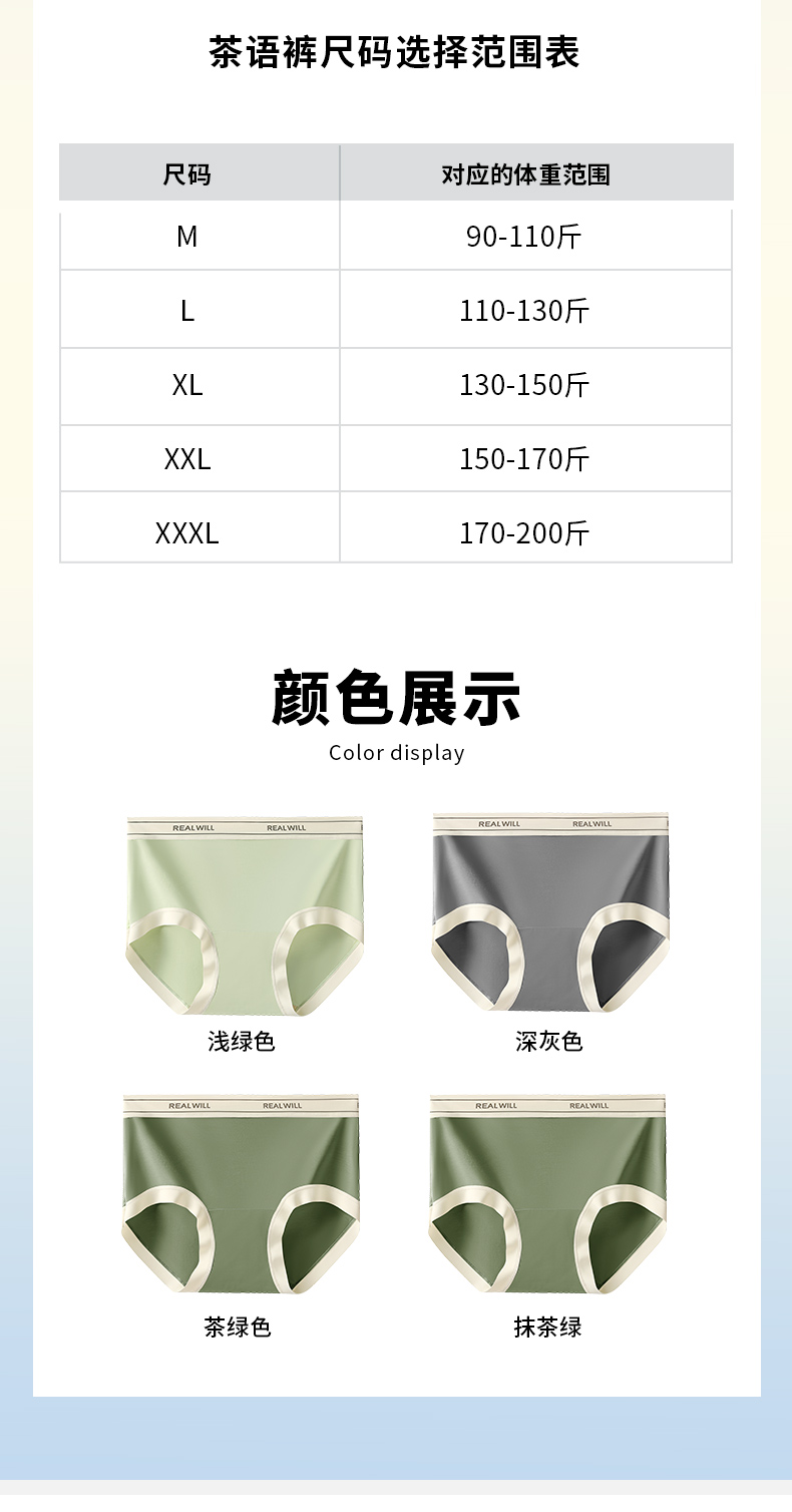 N2-【4条装】【10A抑菌】【发明专利茶肌】润微裸感透气无痕轻收腹中腰内裤女士内裤【茶肌0重金属抑菌】 茶语裤/茶棉裤