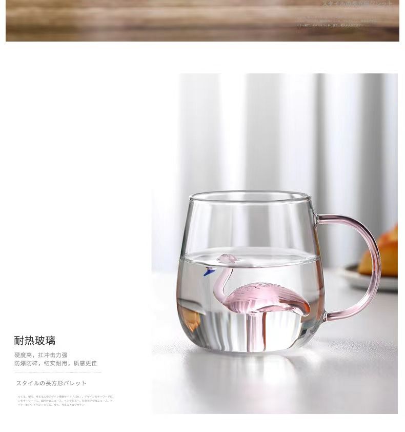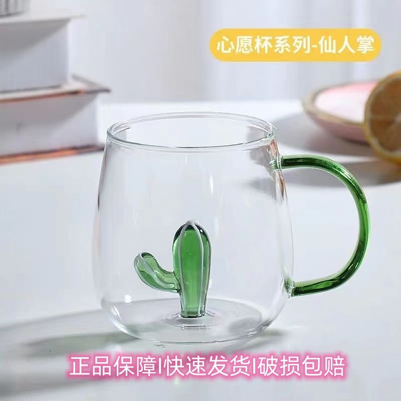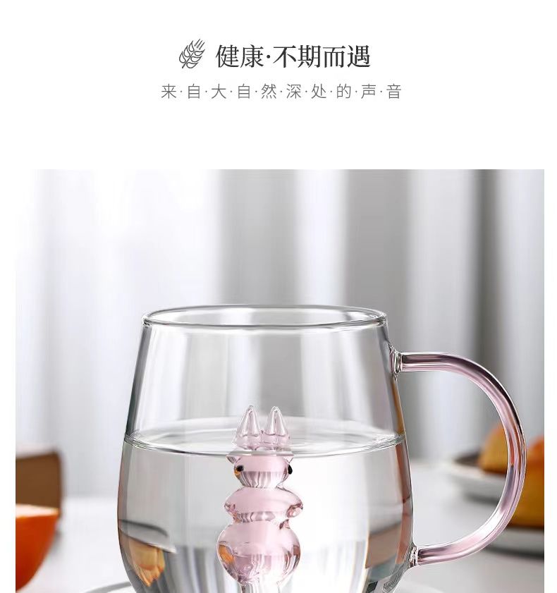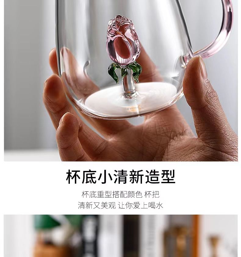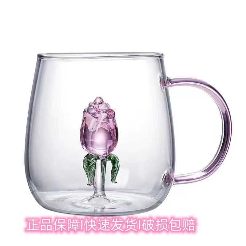 玫瑰花动物郁金香杯子ins高颜值玻璃水杯少女心粉色花立体玻璃杯