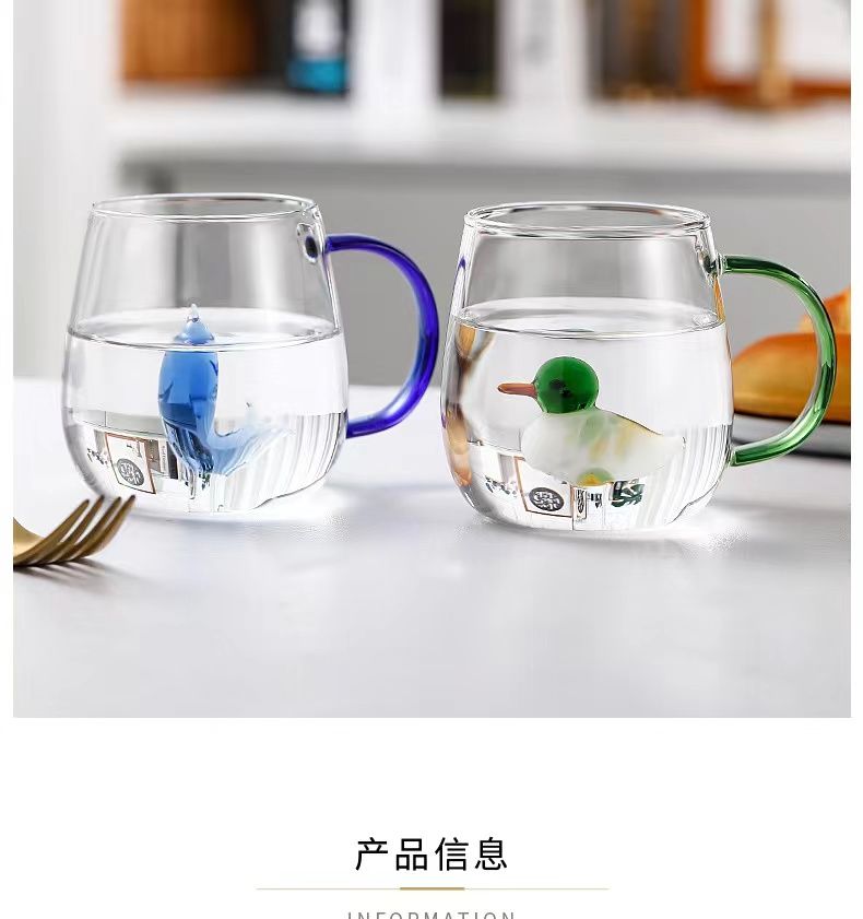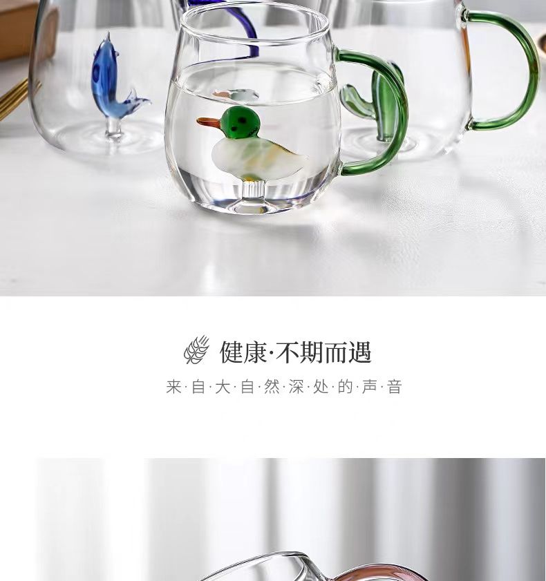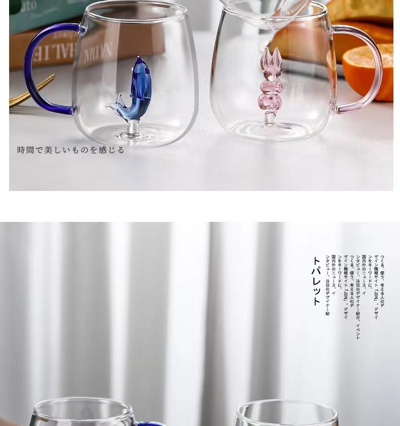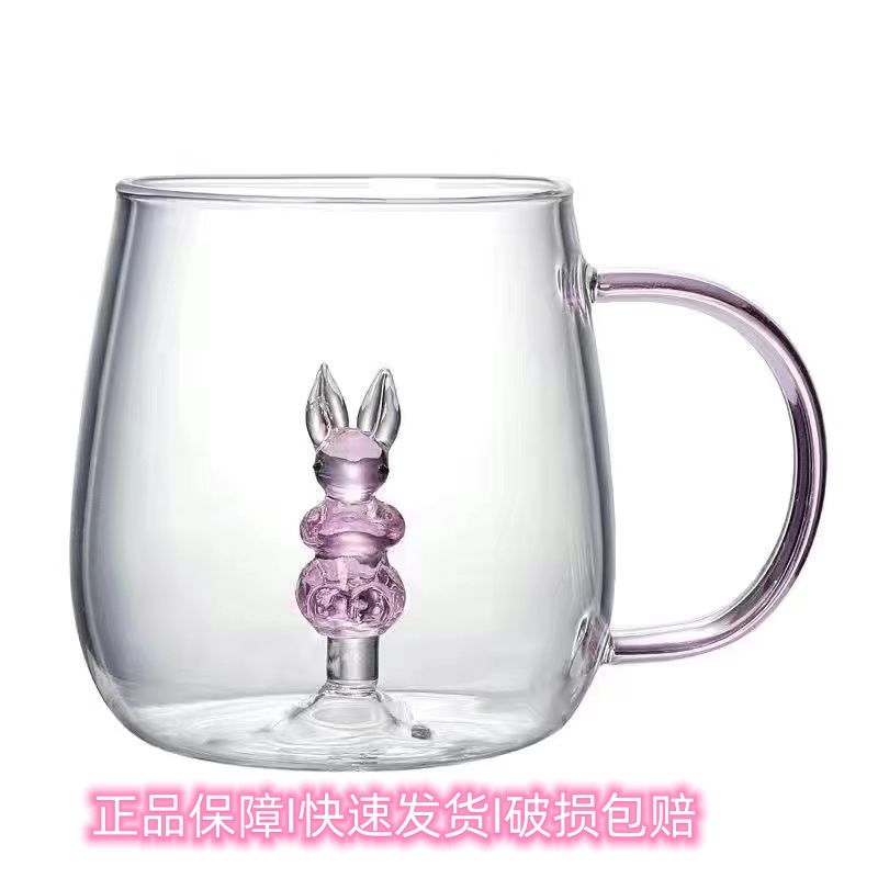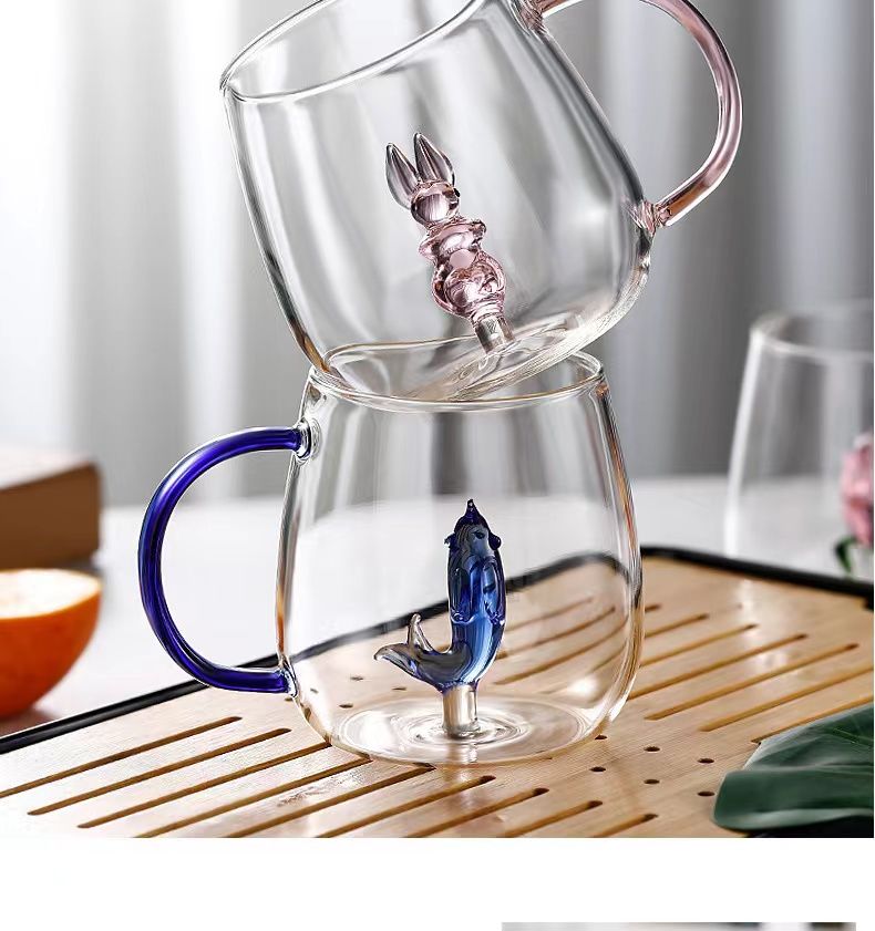 玫瑰花动物郁金香杯子ins高颜值玻璃水杯少女心粉色花立体玻璃杯