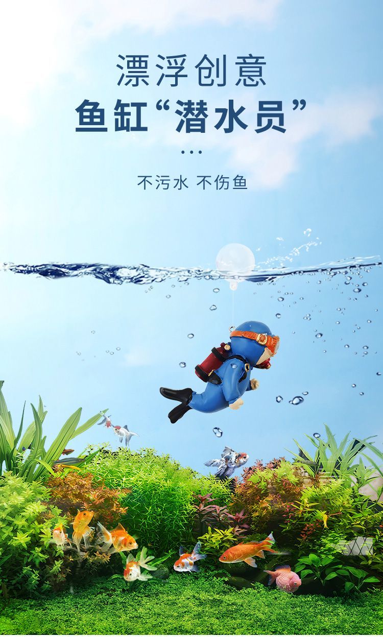 鱼缸造景摆件装饰品小摆件蓝胖子潜水员乌龟缸海底世界