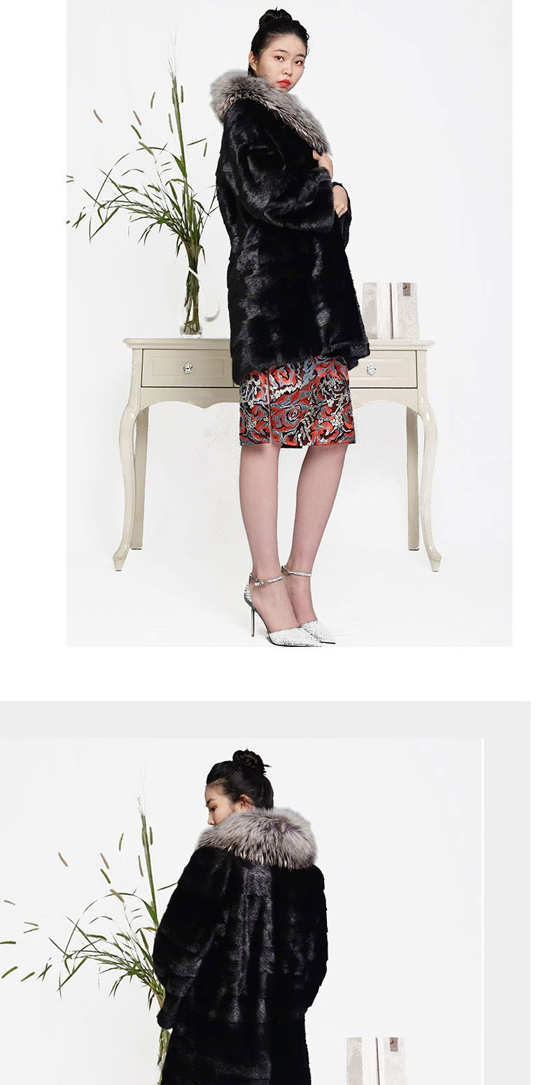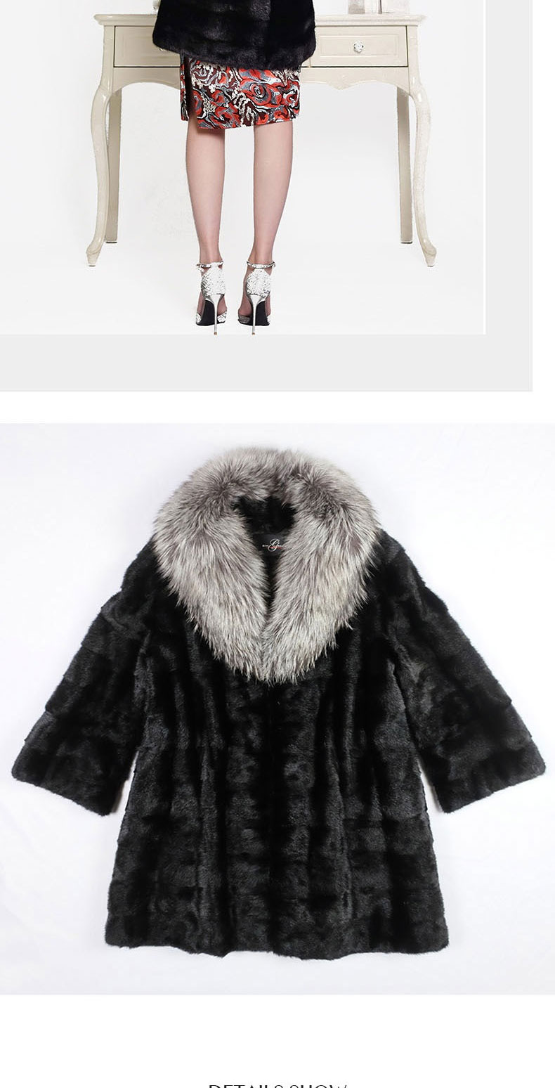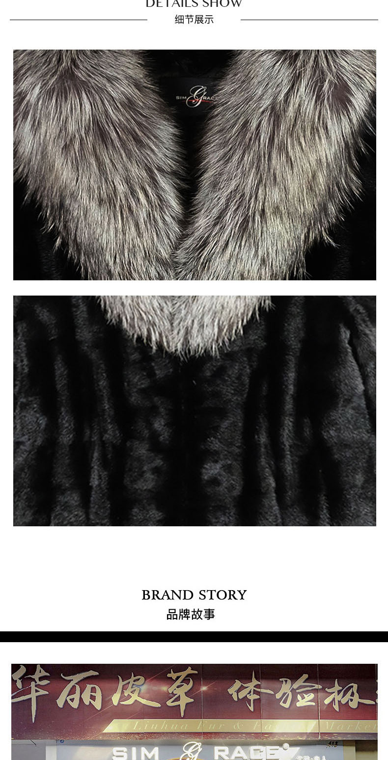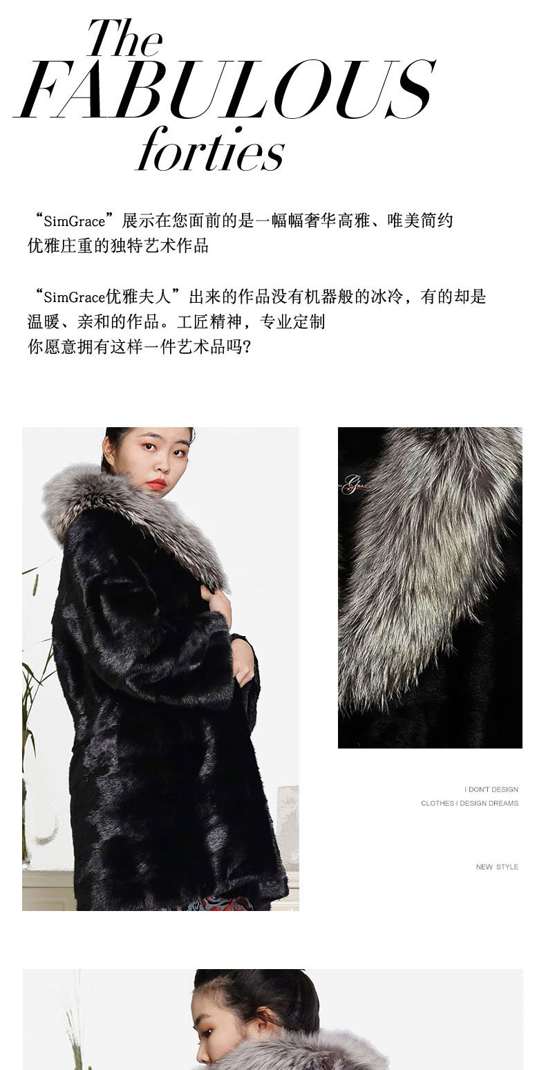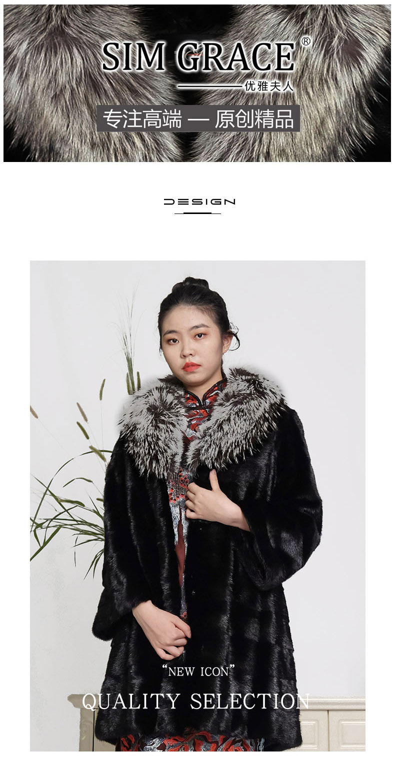 SIM GRACE 优雅夫人 欧美韩版中长款时尚整貂皮银狐毛大翻领女外套