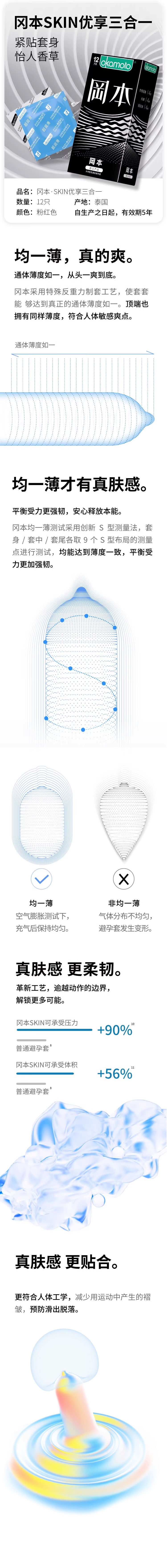 【三合一】冈本SKIN优享三合一避孕套12片装超薄超润滑安全套套进口计生用品安全套