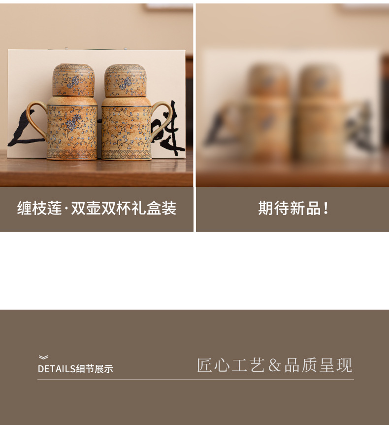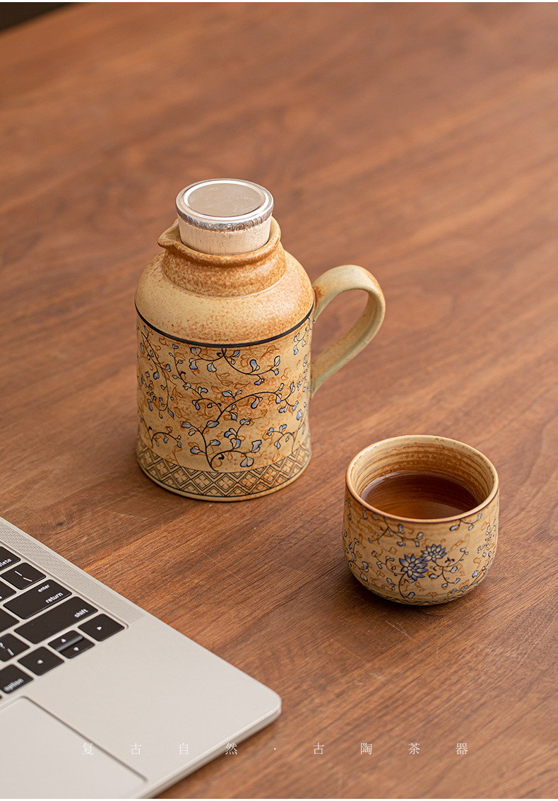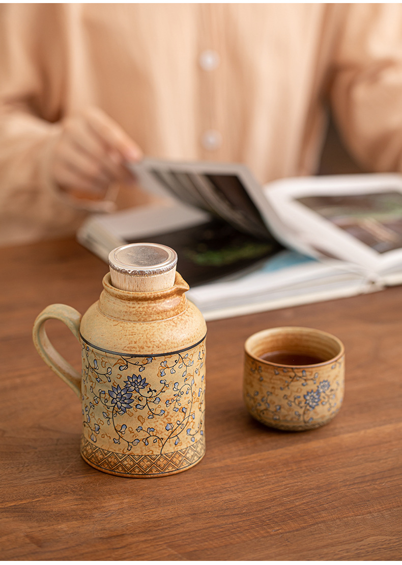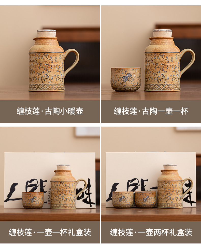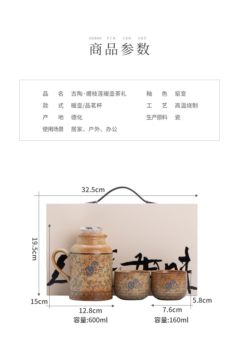 缠枝莲古陶小暖壶复古闷茶壶茶杯陶瓷保温壶茶具商务礼品伴手礼
