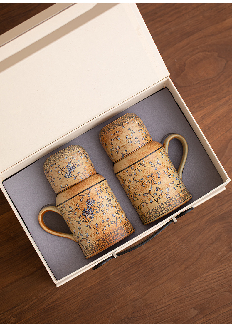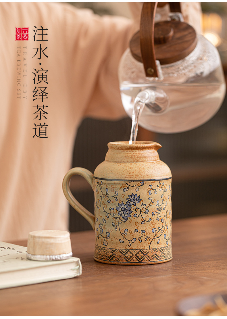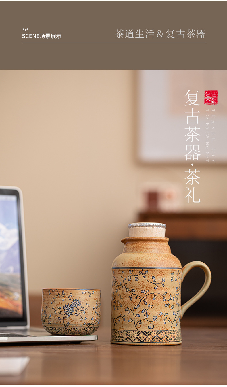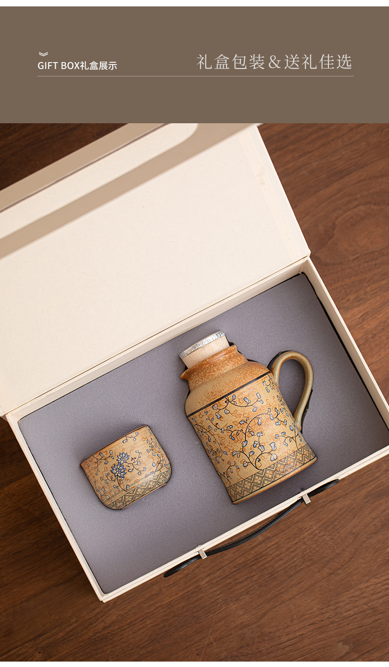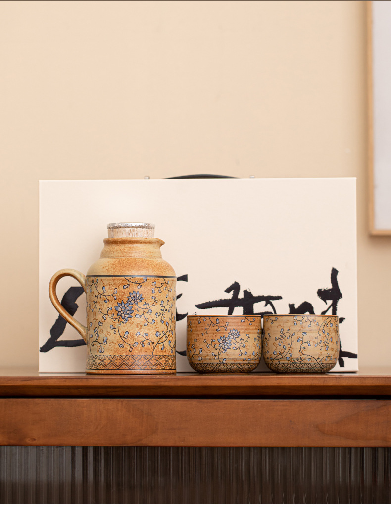 缠枝莲古陶小暖壶复古闷茶壶茶杯陶瓷保温壶茶具商务礼品伴手礼