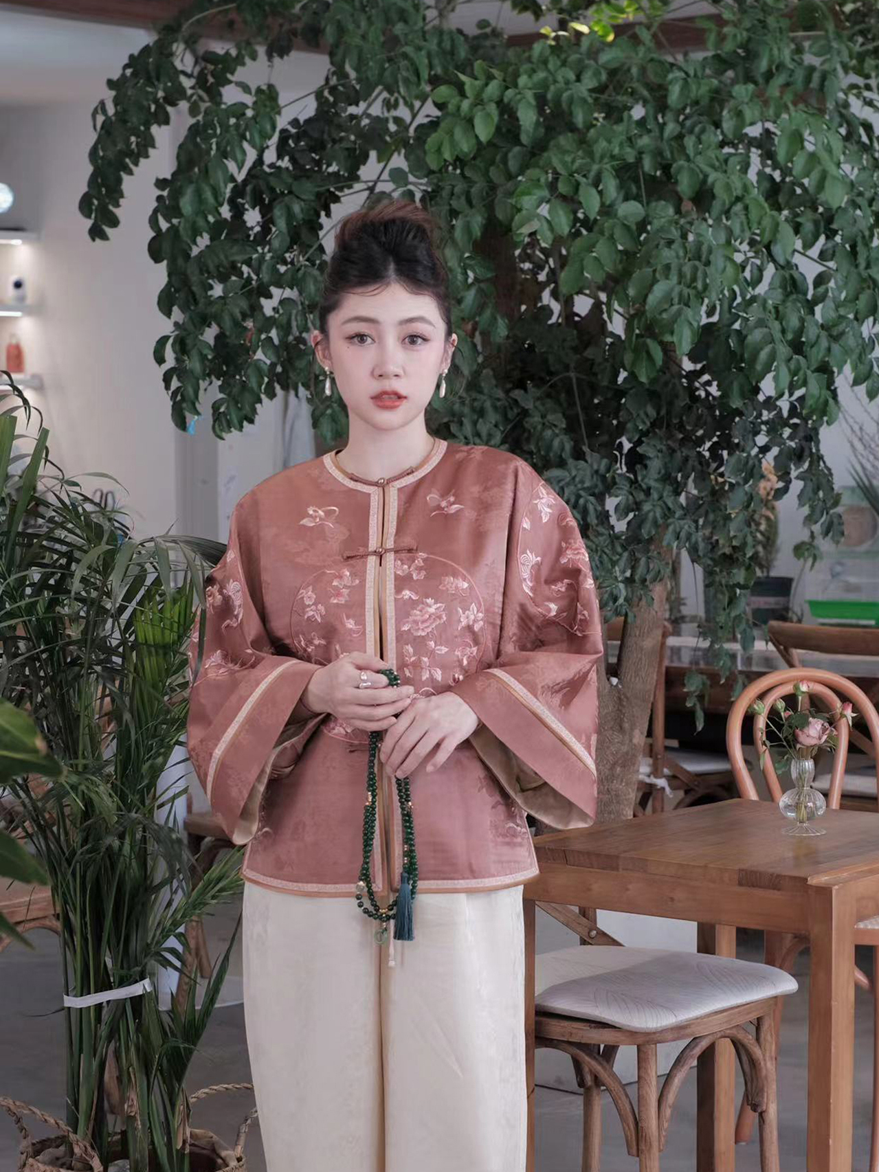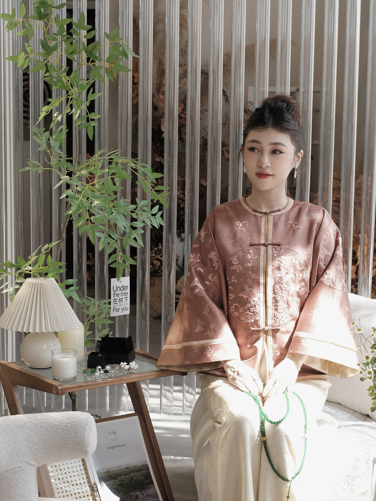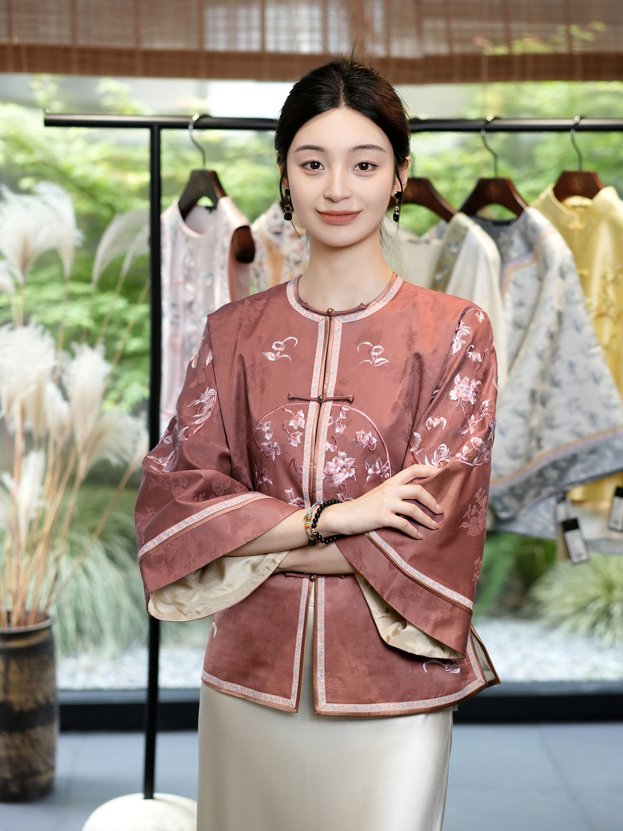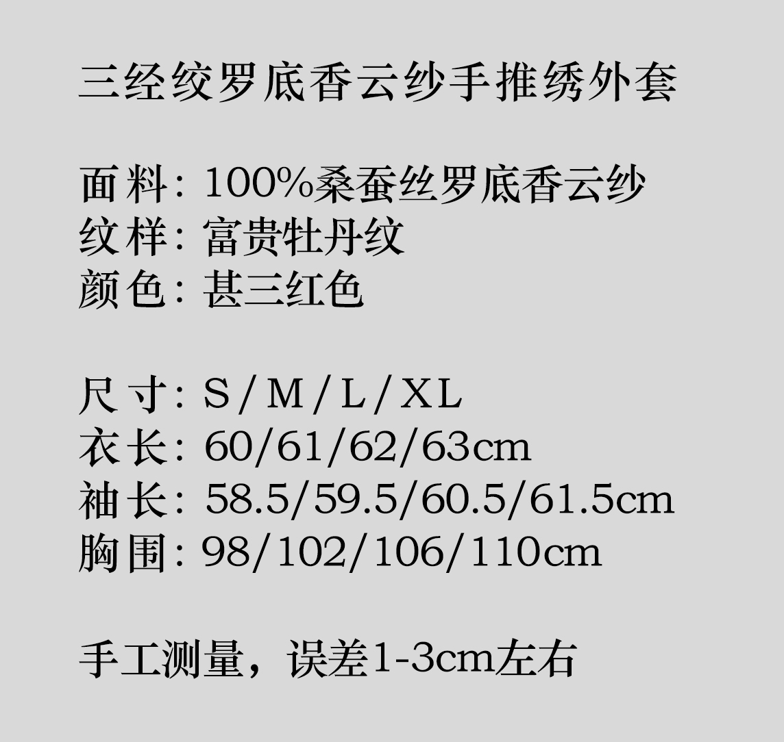 盛唐牡丹 |三经绞罗底香云纱手推绣外套
