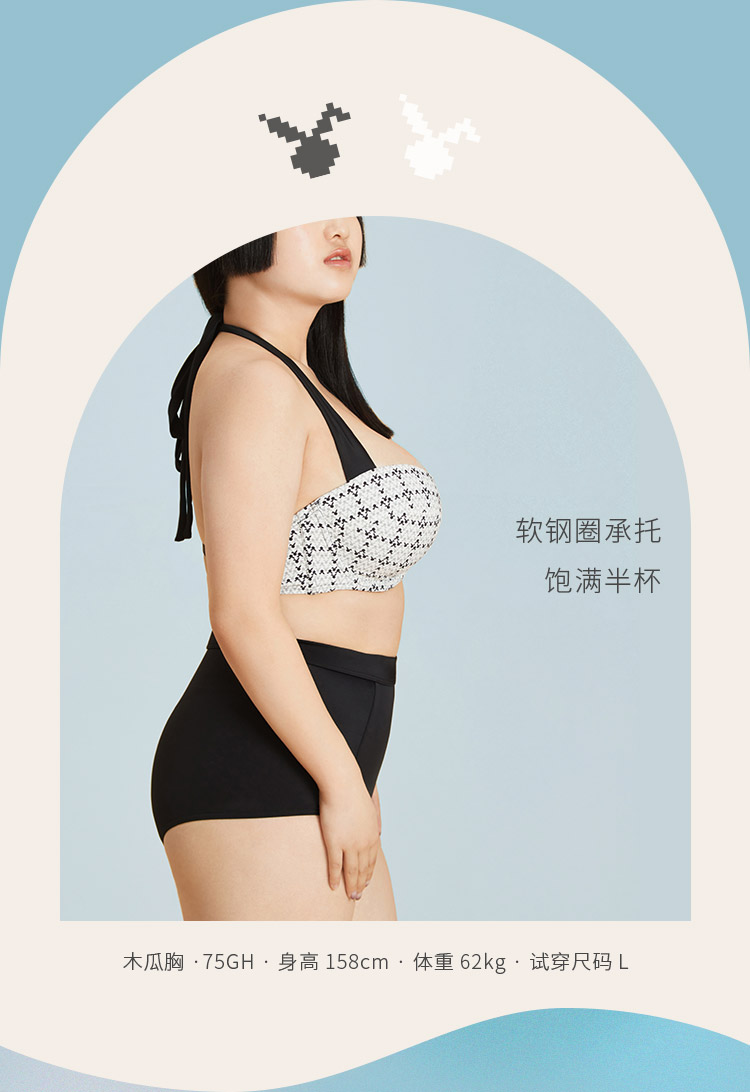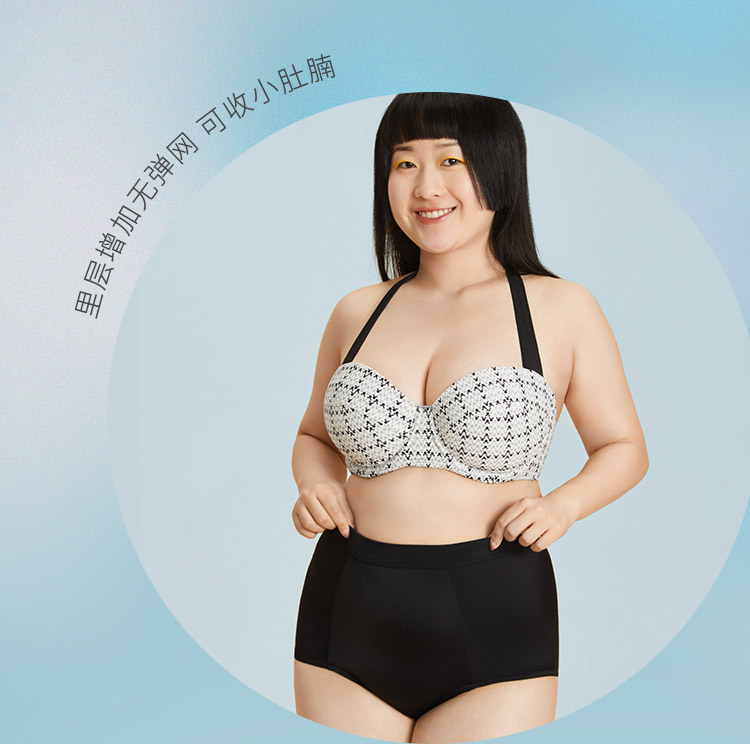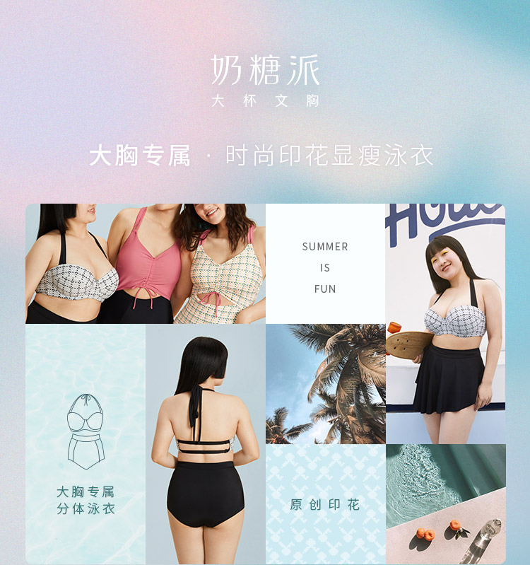 奶糖派大胸泳衣分体显瘦遮肚上托稳定舒适透气大码大胸泳装