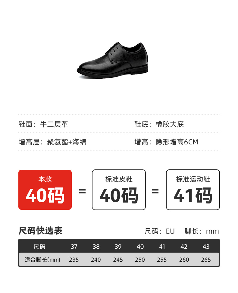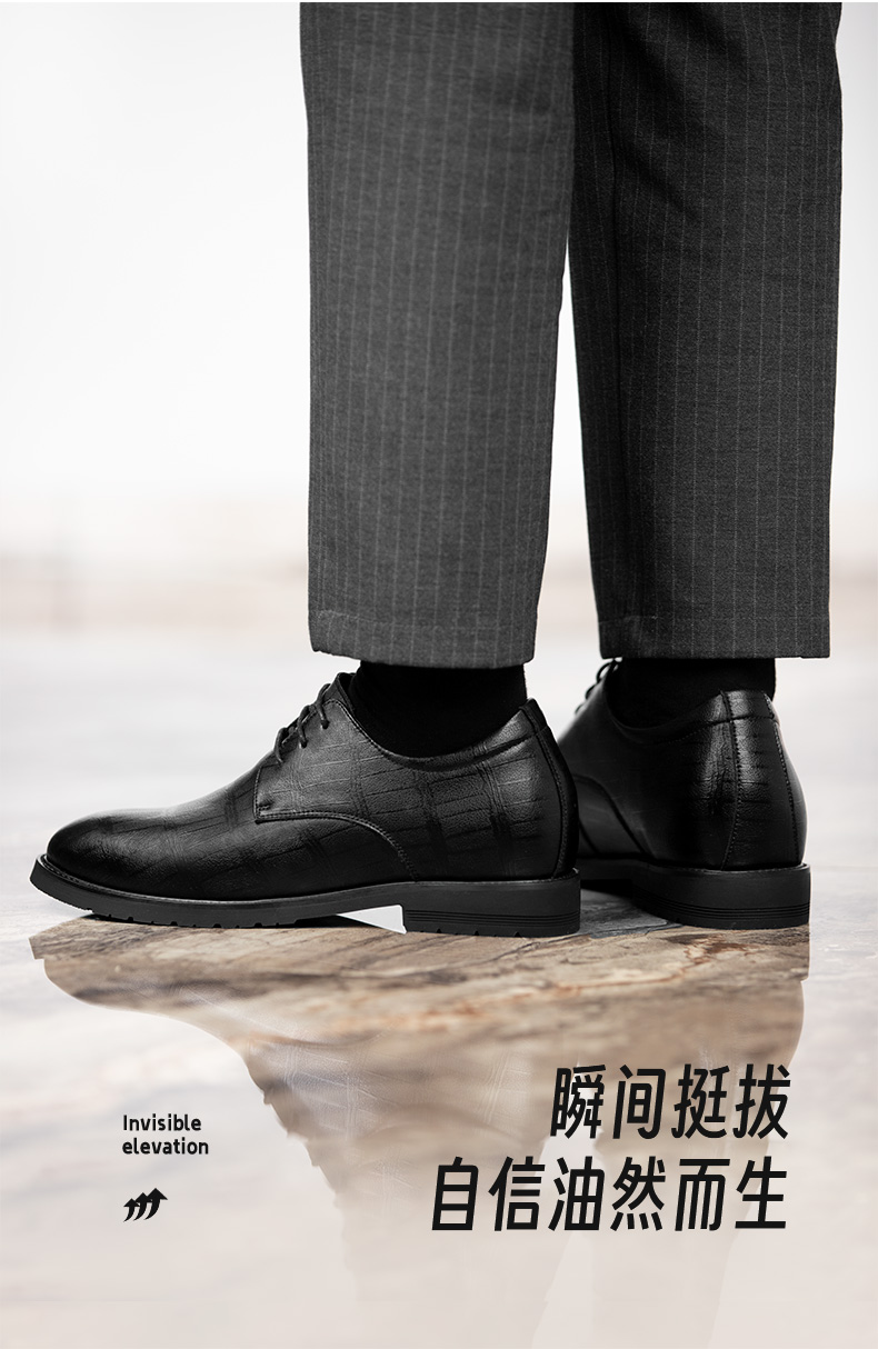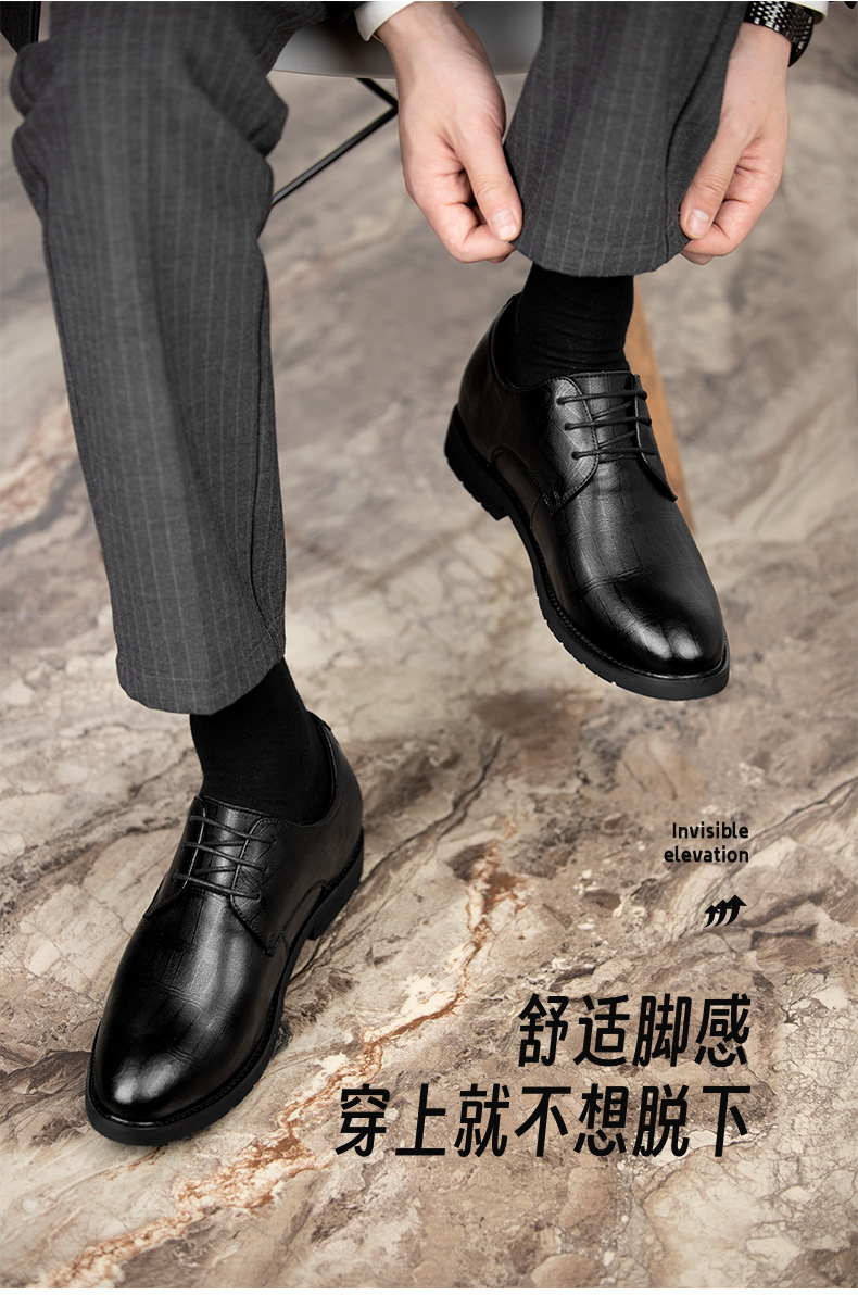 隐形男士增高6cm皮鞋时尚商务休闲百搭系带正装英伦婚鞋男伴郎鞋