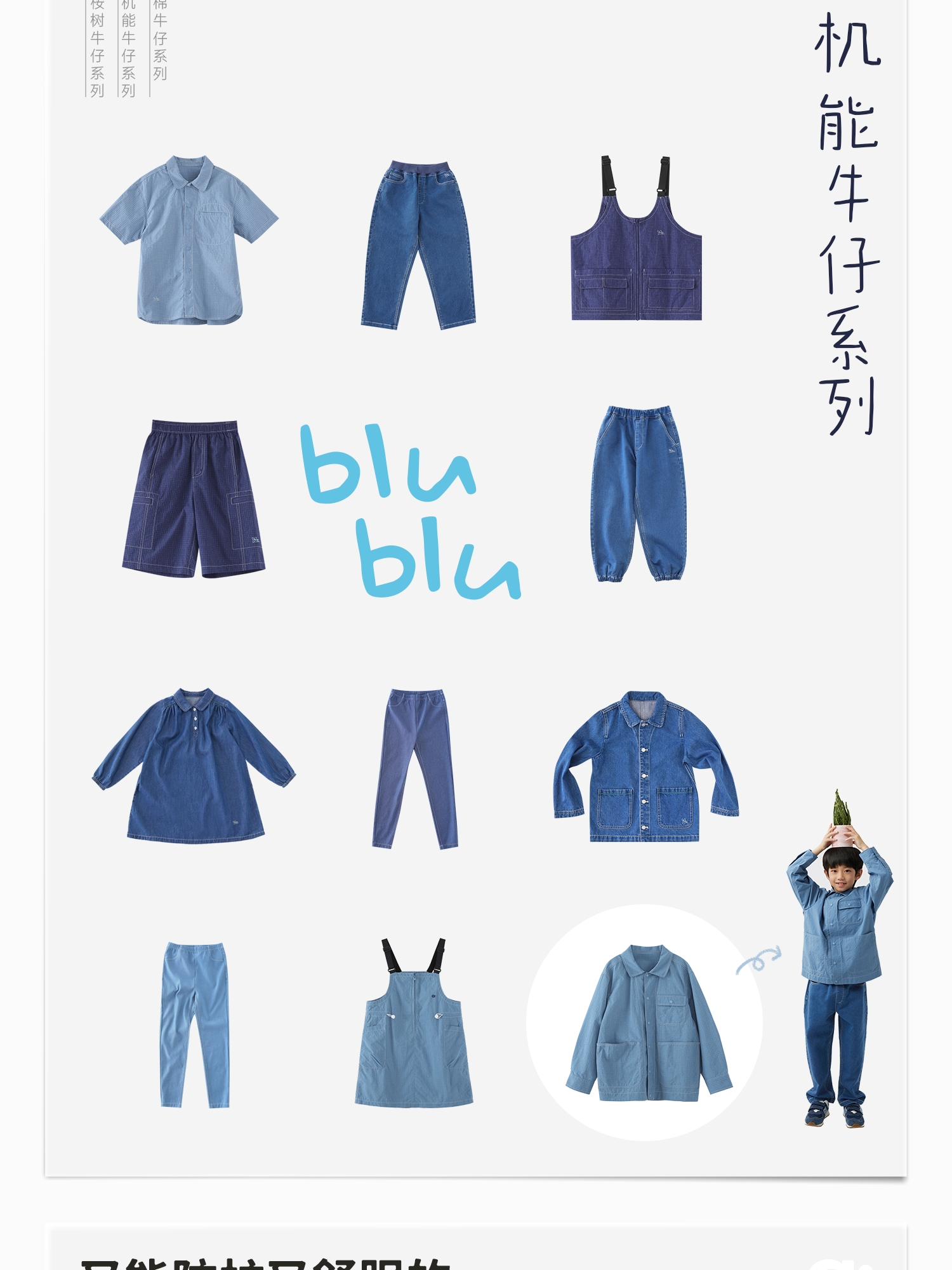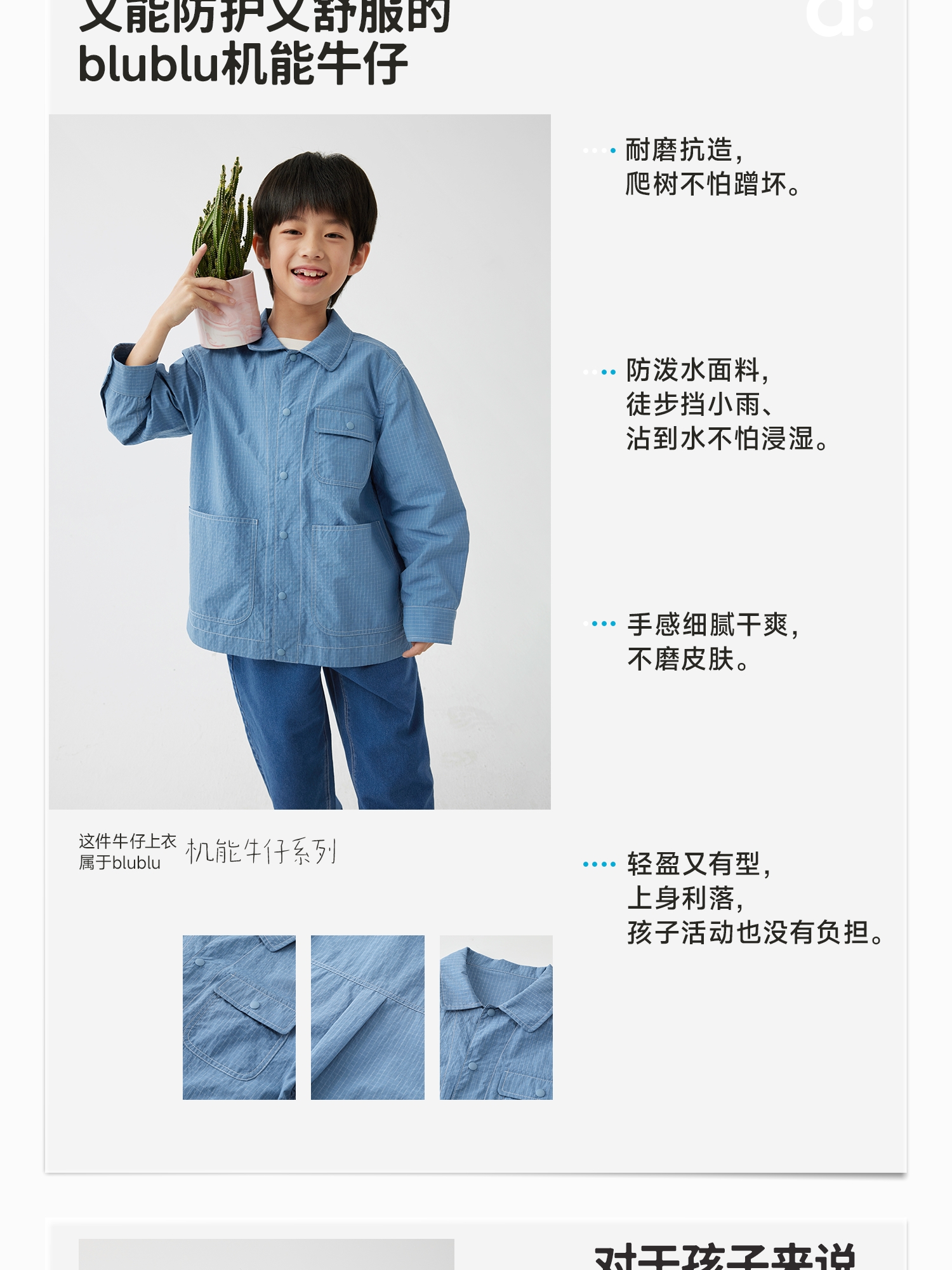 【春季特惠】幼岚耐磨抗造防泼水blublu机能牛仔外套24春季新款儿童男女童外套ZY