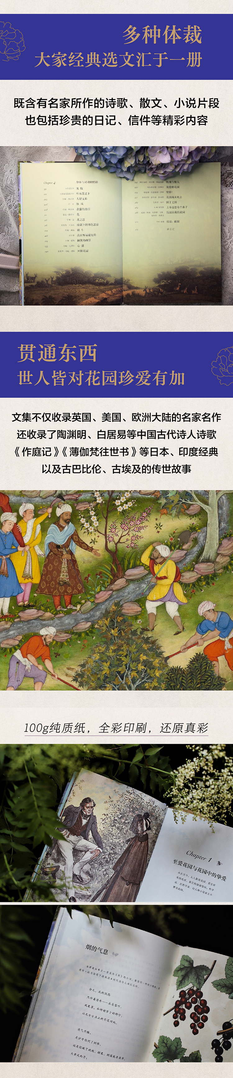 广告语:授权收录大英图书馆精美花草插图,全彩印刷,精选古今中外寄情花园的诗歌、散文、小说经典美文