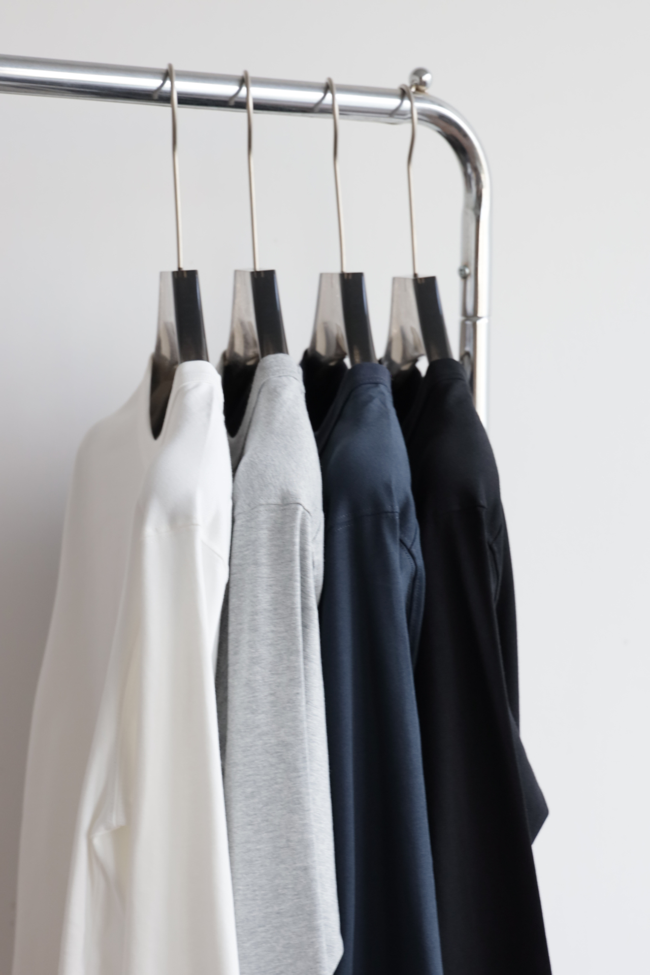 二本针螺纹领口:防变形卷边,穿三年依旧挺括。