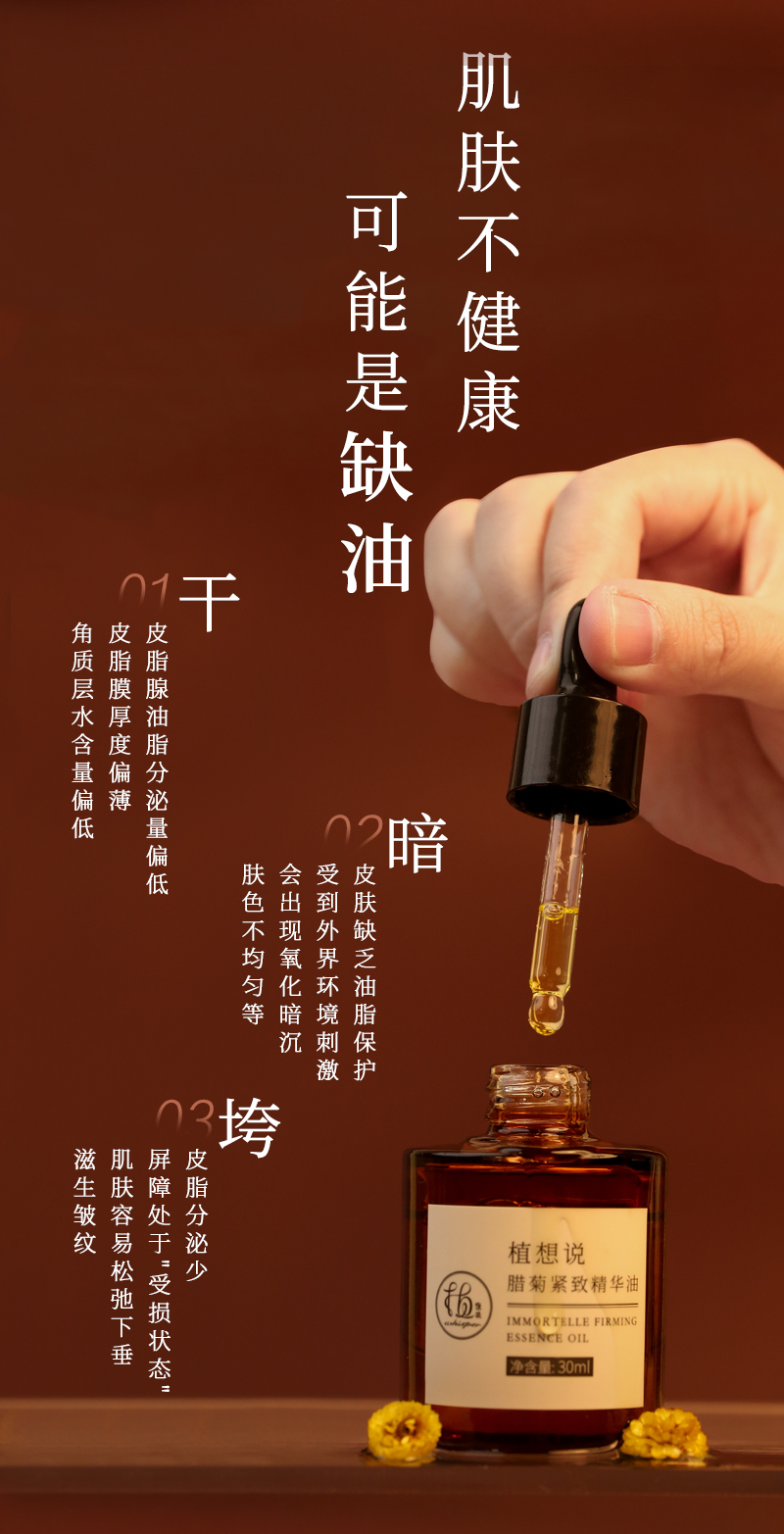 以油健肤 滋润抗皱丨植想说腊菊紧致精华油30ml 深层保湿抗皱紧致改善暗沉淡纹韧屏障纯素护肤