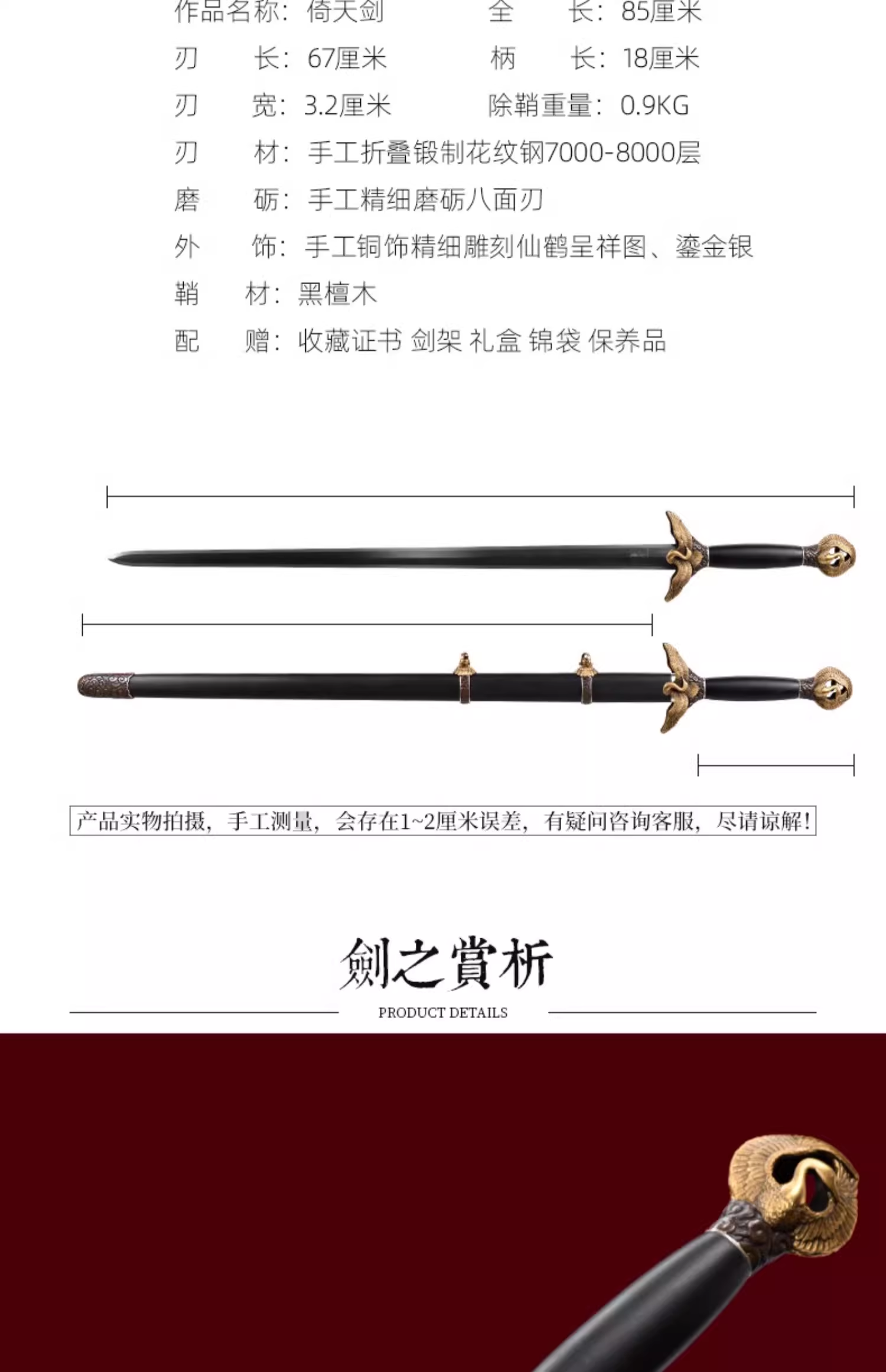 玄武剑 沈州作品 花纹钢剑 龙泉沈广隆宝剑 全手工传统剑 工艺品 未开刃