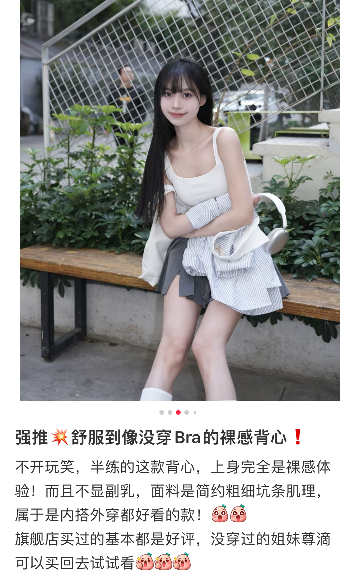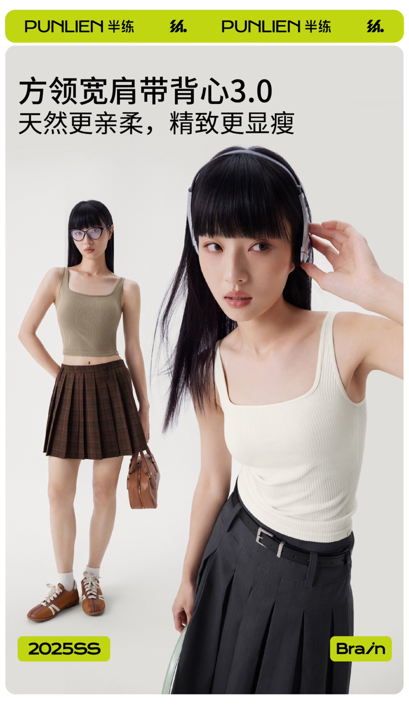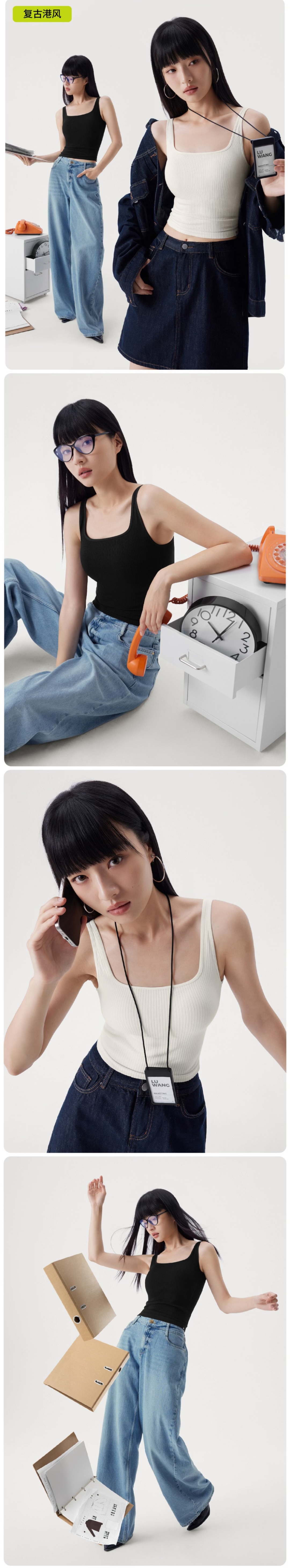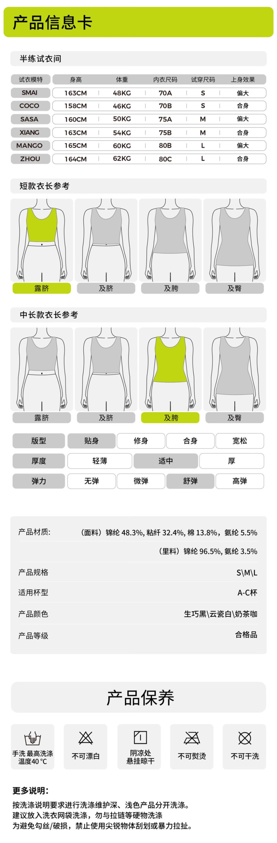 设计上更是细节满满!优雅方领以精准露肤比例修饰天鹅颈,锁骨线条若隐若现;渐宽肩带从肩头至腋下逐渐加宽,巧妙隐藏副乳,打造流畅肩部线条;前胸立体暗纹与后背平滑面料形成视觉差,显瘦效果提升30%;U型美背线以精准弧度勾勒蝴蝶骨轮廓,让背影都好好看!而且还根据不同需求设计了两种版型:露脐短款衣长精准控制在肚脐上方2cm,优化黄金比例,搭配高腰下装更显腿长;及胯长款采用微收腰设计自然垂落,修饰胯部线条,通勤与休闲皆相宜!