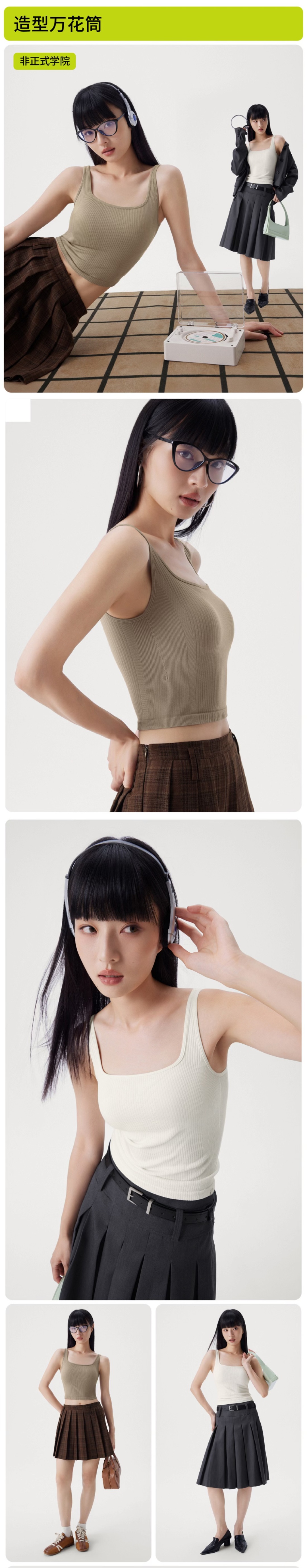 颜色同样用心,生巧黑是哑光雾面质感,自带收缩效果,视觉显瘦5斤;奶茶咖属于温柔莫兰迪色系,搭配金色配饰超高级;云瓷白则以珍珠光泽感面料,很清新哦!而且,它的内层是特调隐形肤色,搭纯白外衣不会透色,优雅!我自留的是云瓷白露脐短款,清纯中带着点小性感,超喜欢,可以搭瑜伽裤来运动啦!大家可以直接外穿,也可以披个小衬衫防晒衣,或者搭小短裙阔腿裤,各种风格都能搞定!