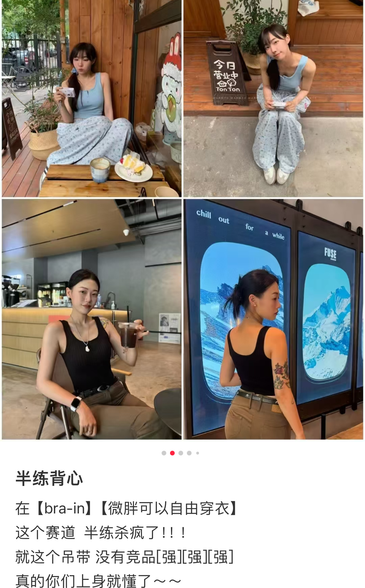 半练bra-in系列去年就上了蛮多款,陪伴我度过漫漫减脂路,跳操超合适,自带Bra的,保护胸胸,很稳哦!今年又有出新,自留两件,其他一起上啦,挂脖、宽肩带细肩带,还有各种吊带和连衣裙,限时特价的99元2件促销款,也一定抓抓,很有得挑!半练不仅颜值在线,还兼具清凉、舒适与功能性,只要一件,显胸又显瘦,还有直角肩!