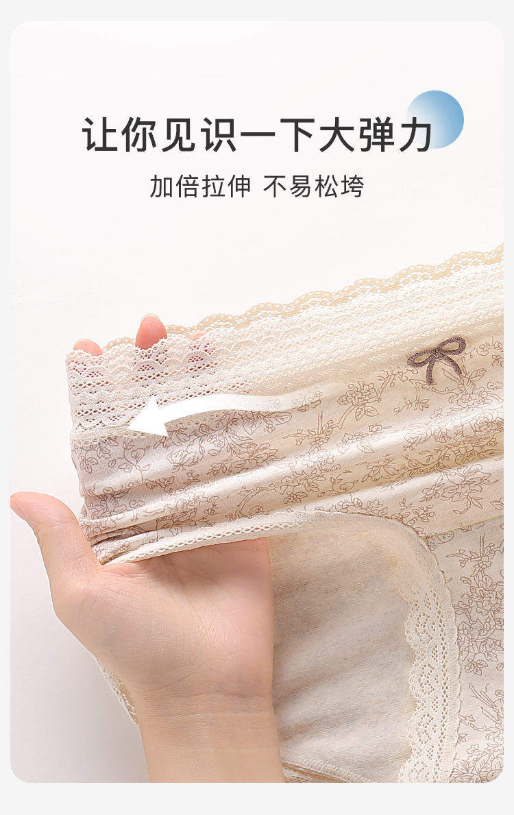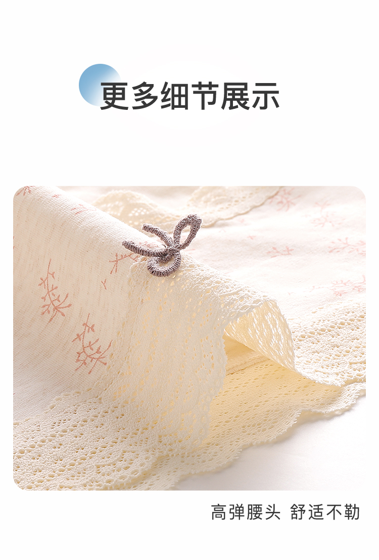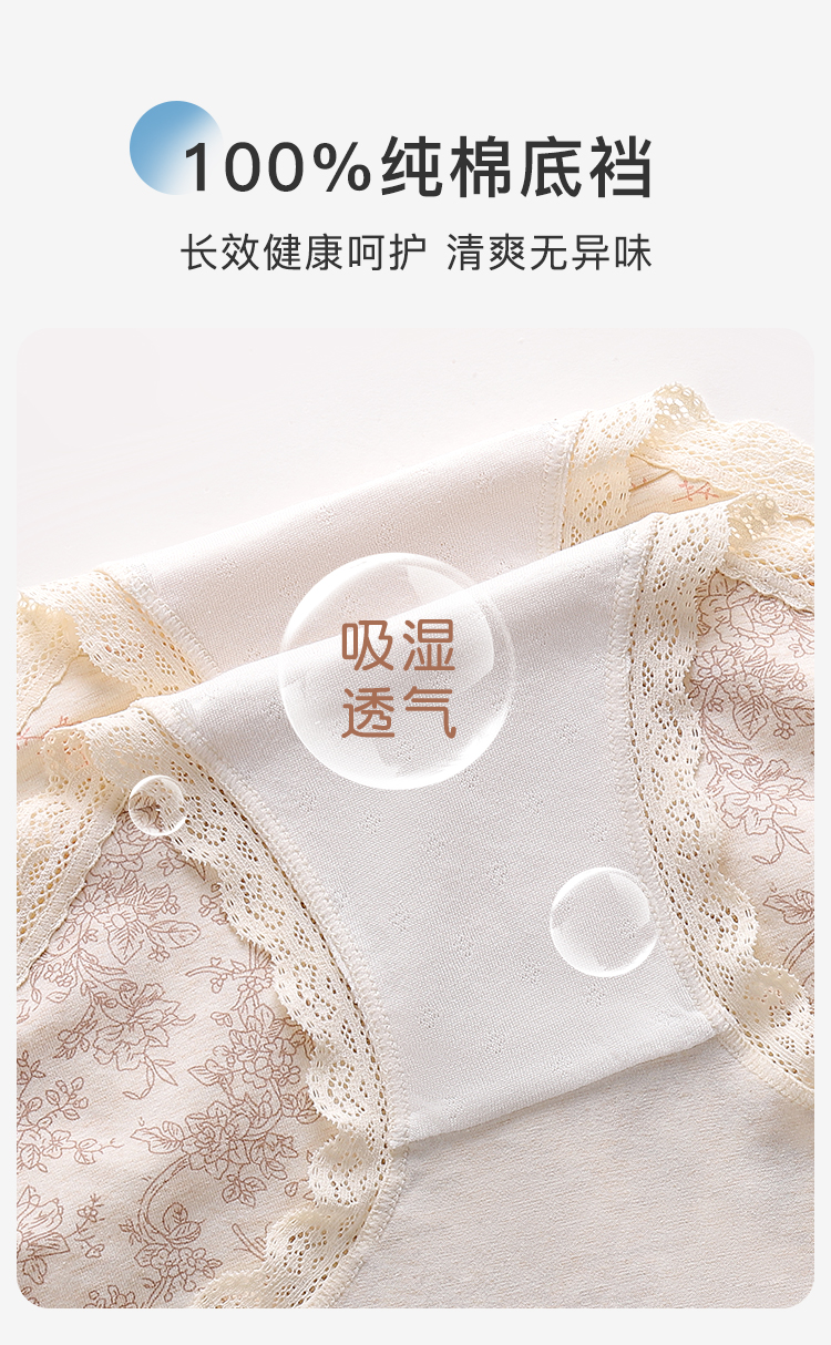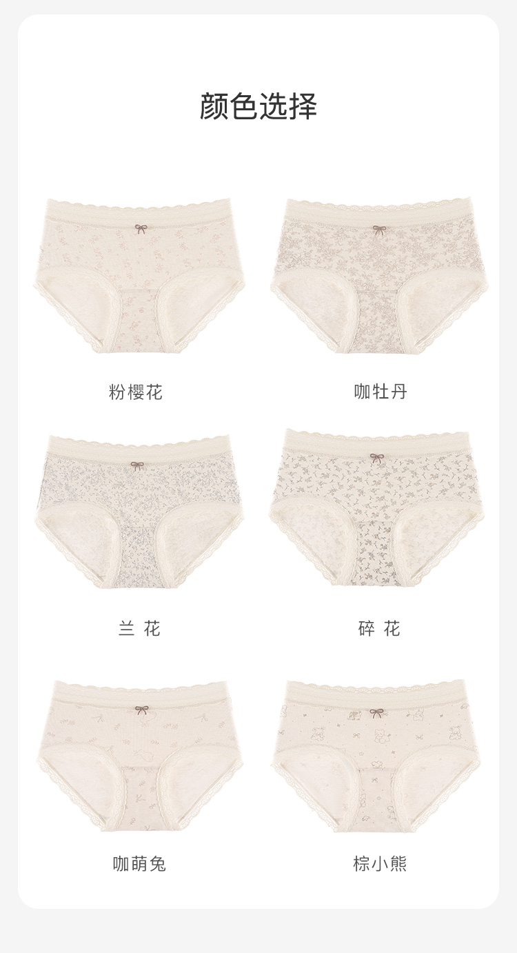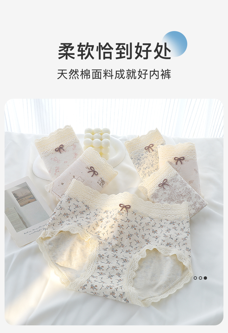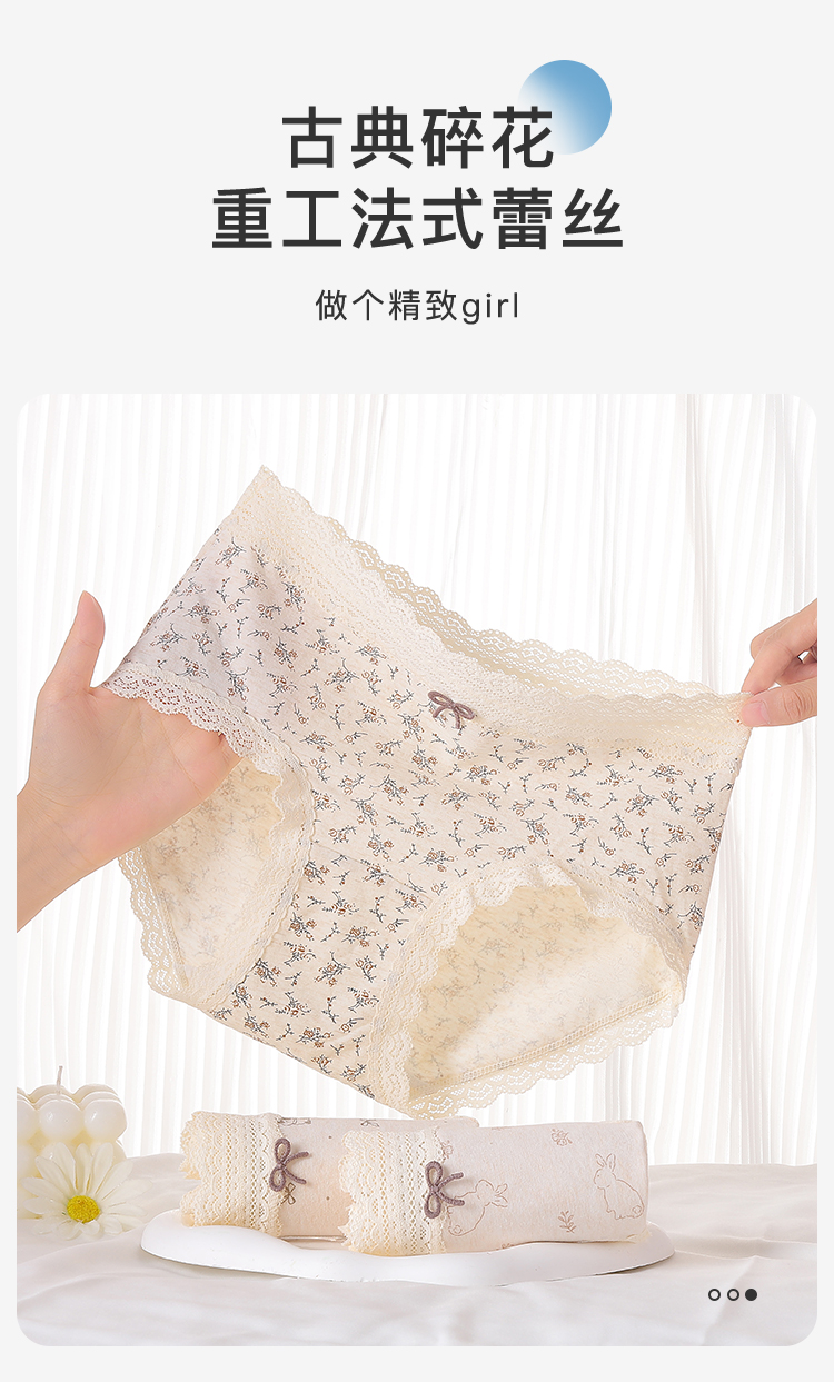 【3条装】法式浪漫碎花中腰纯棉内裤女柔软亲肤100%棉加长裆3811森系碎花内裤