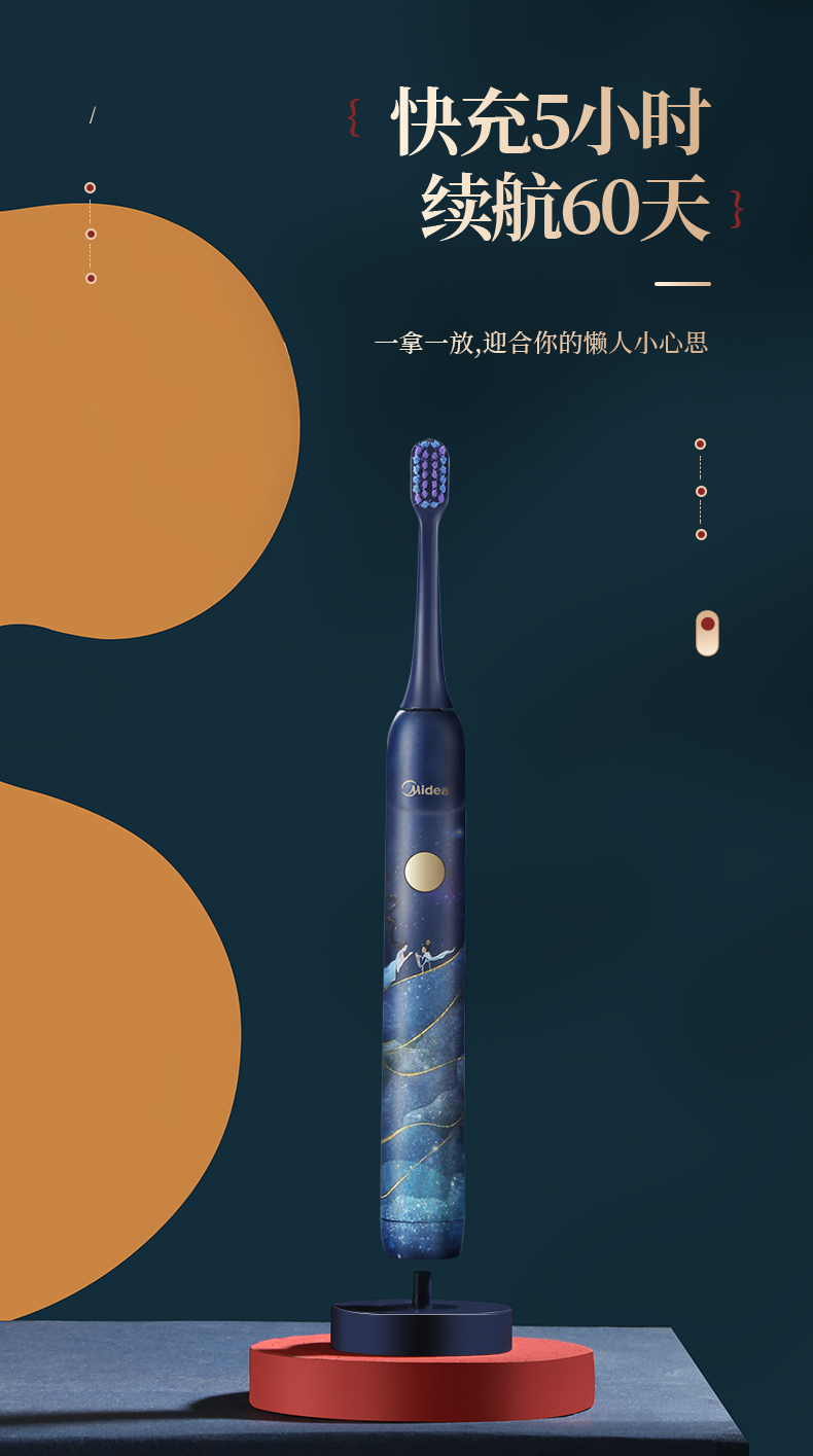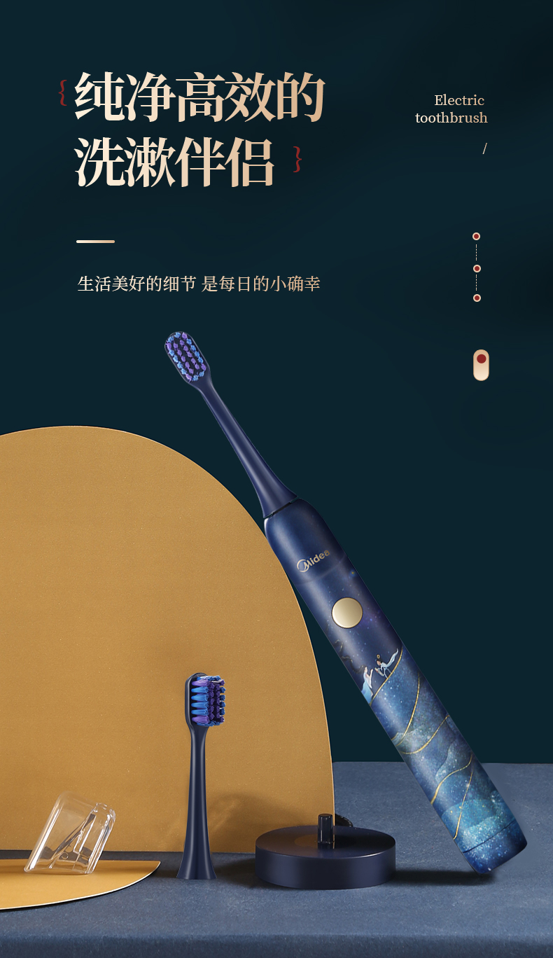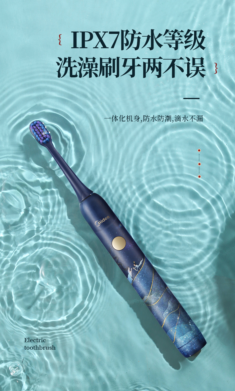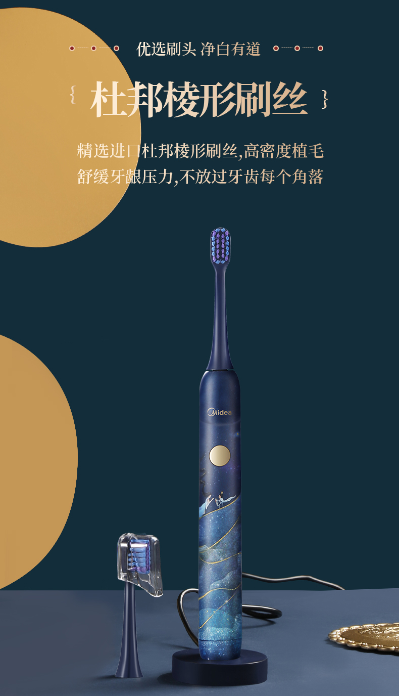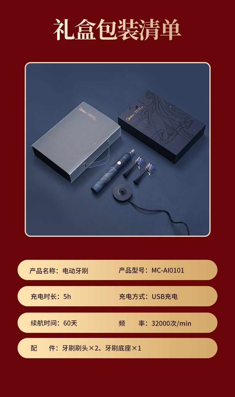 美的3折!洛神星河系列电动牙刷(礼盒装) 超声波全自动牙刷 无线充电 3种模式2个刷头