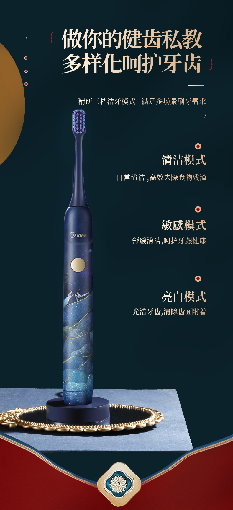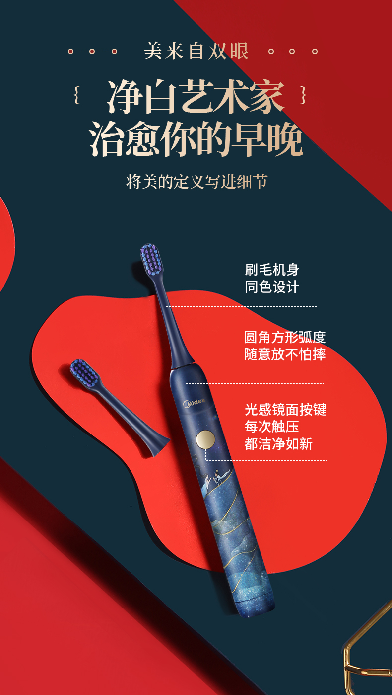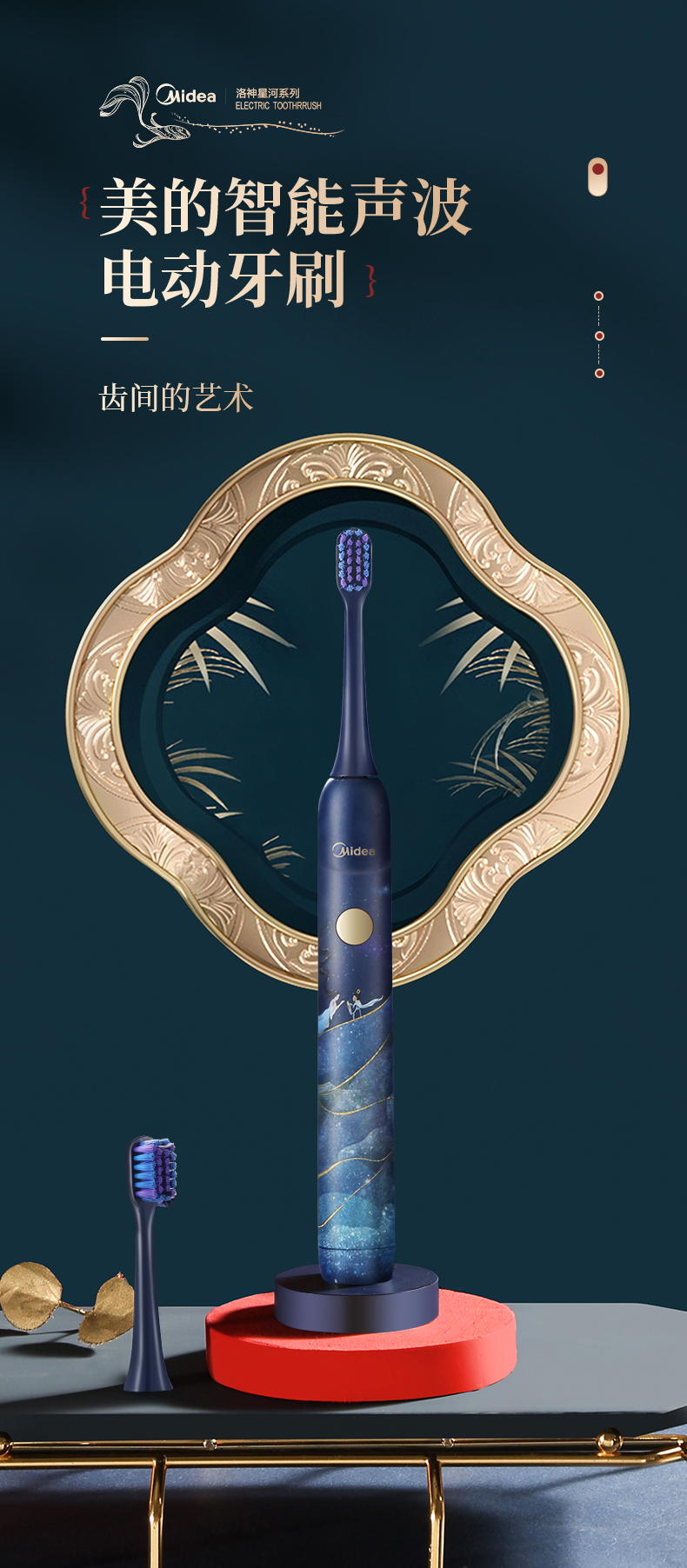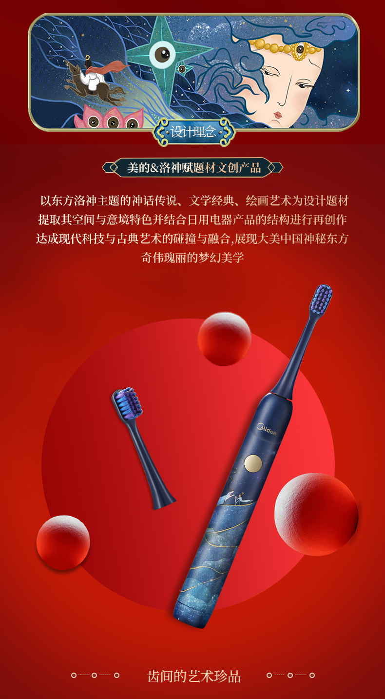 美的3折!洛神星河系列电动牙刷(礼盒装) 超声波全自动牙刷 无线充电 3种模式2个刷头