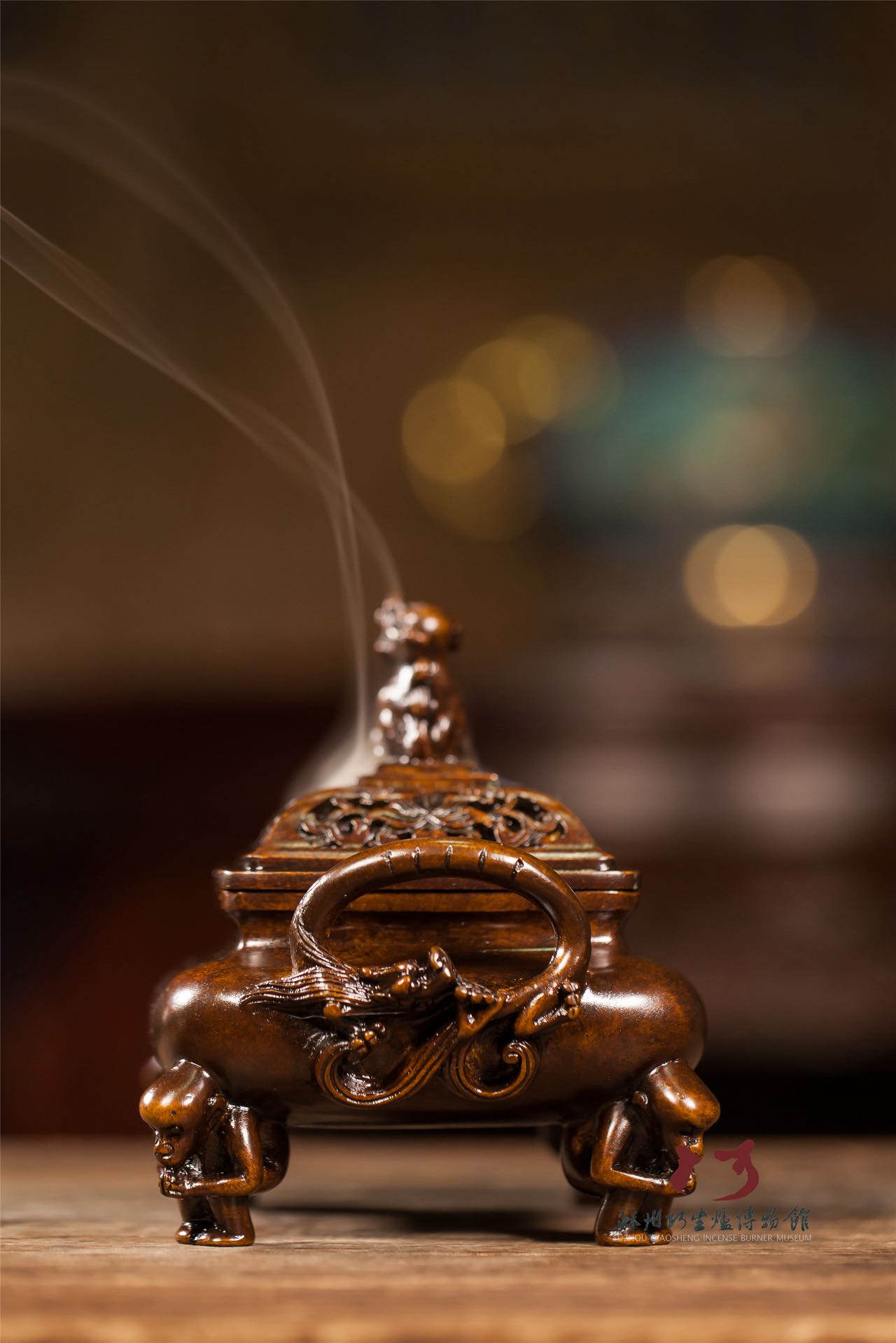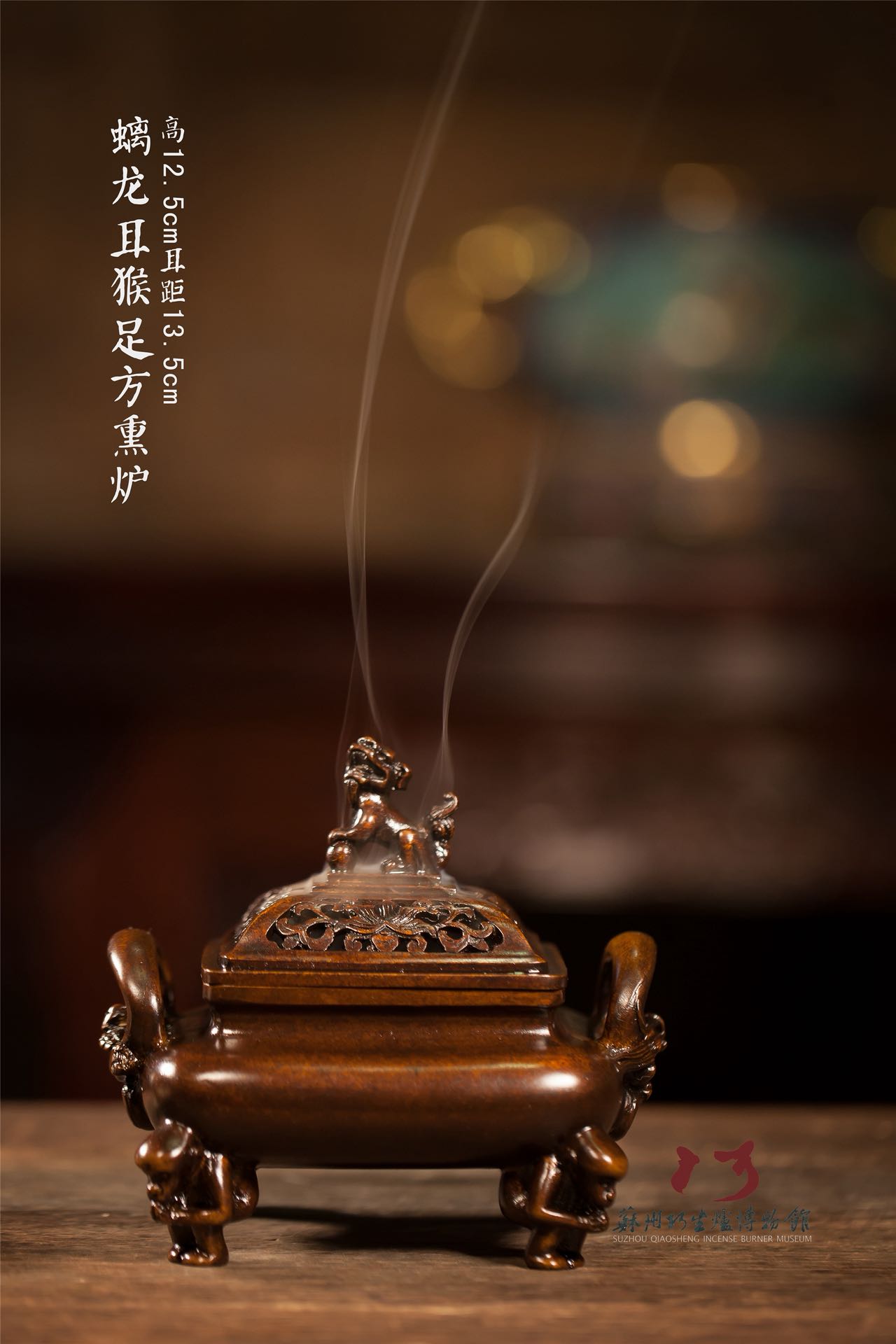 陈巧生制 螭龙耳猴足熏炉 香炉铜炉摆件