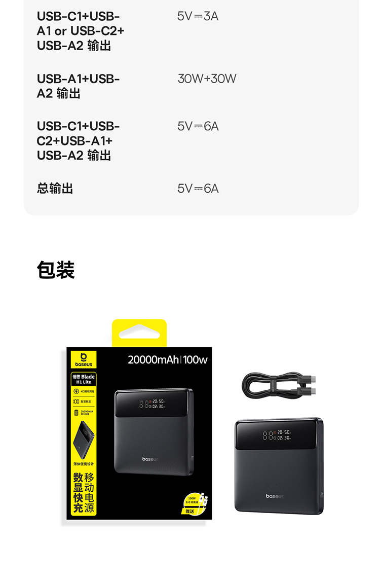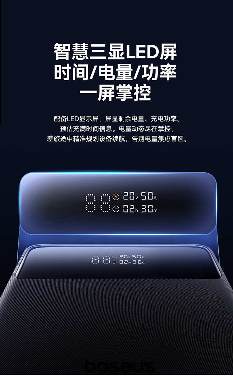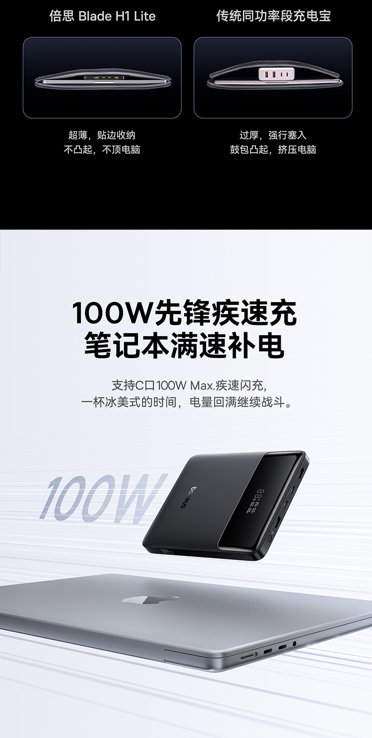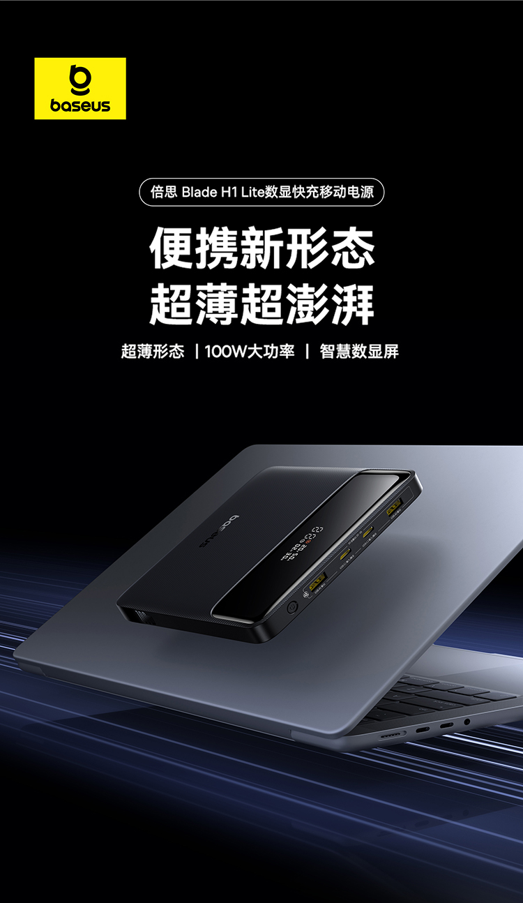 倍思 Blade H1 Lite 数显快充移动电源 20000mAh 100W