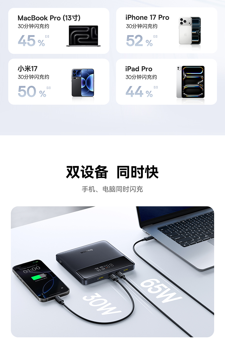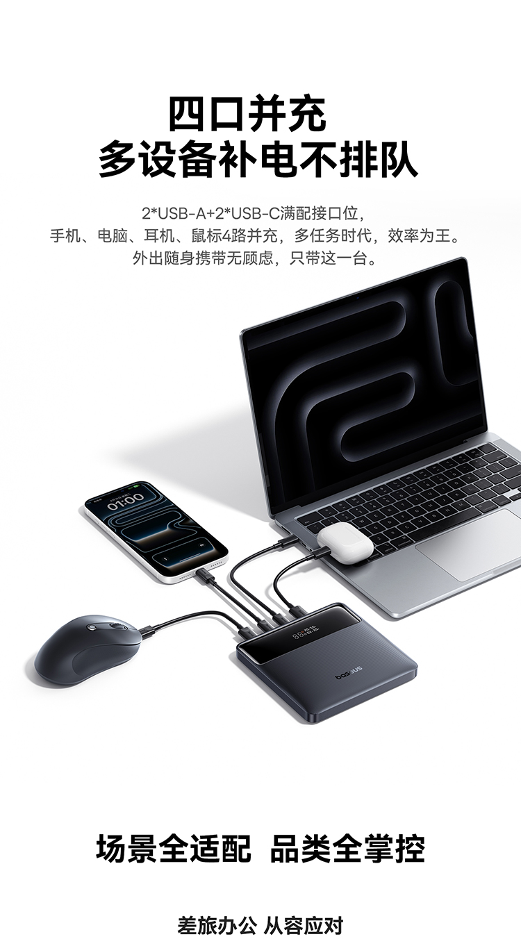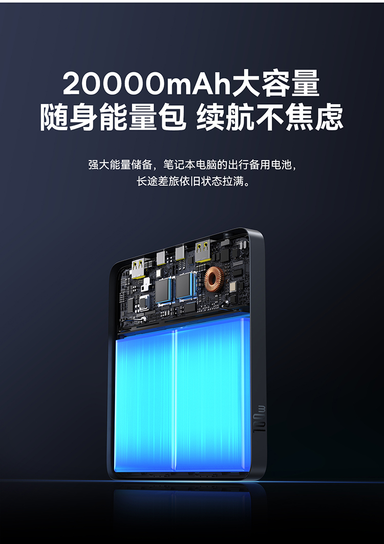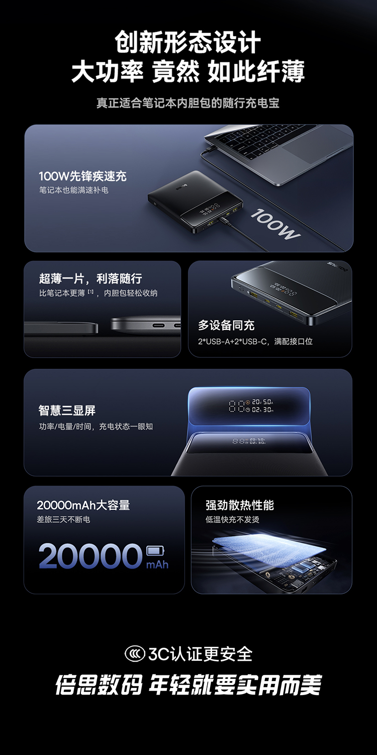 倍思 Blade H1 Lite 数显快充移动电源 20000mAh 100W