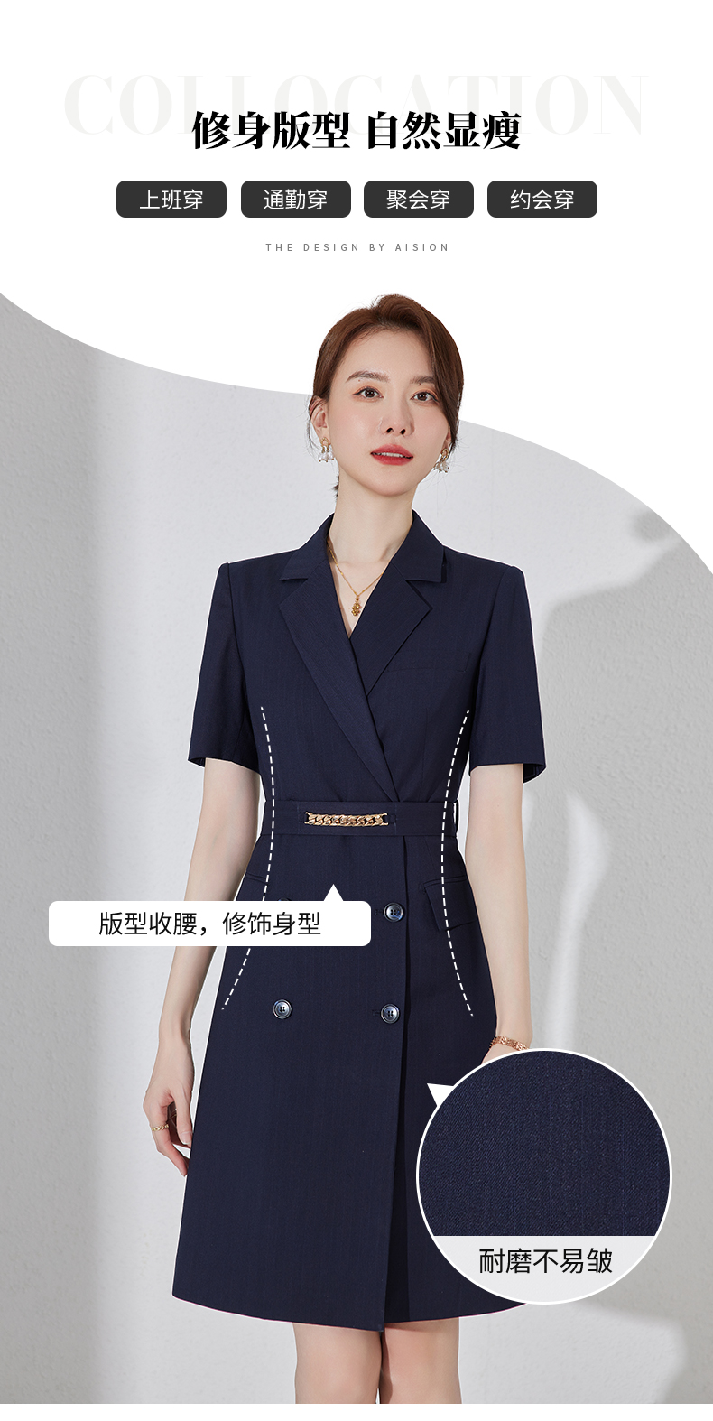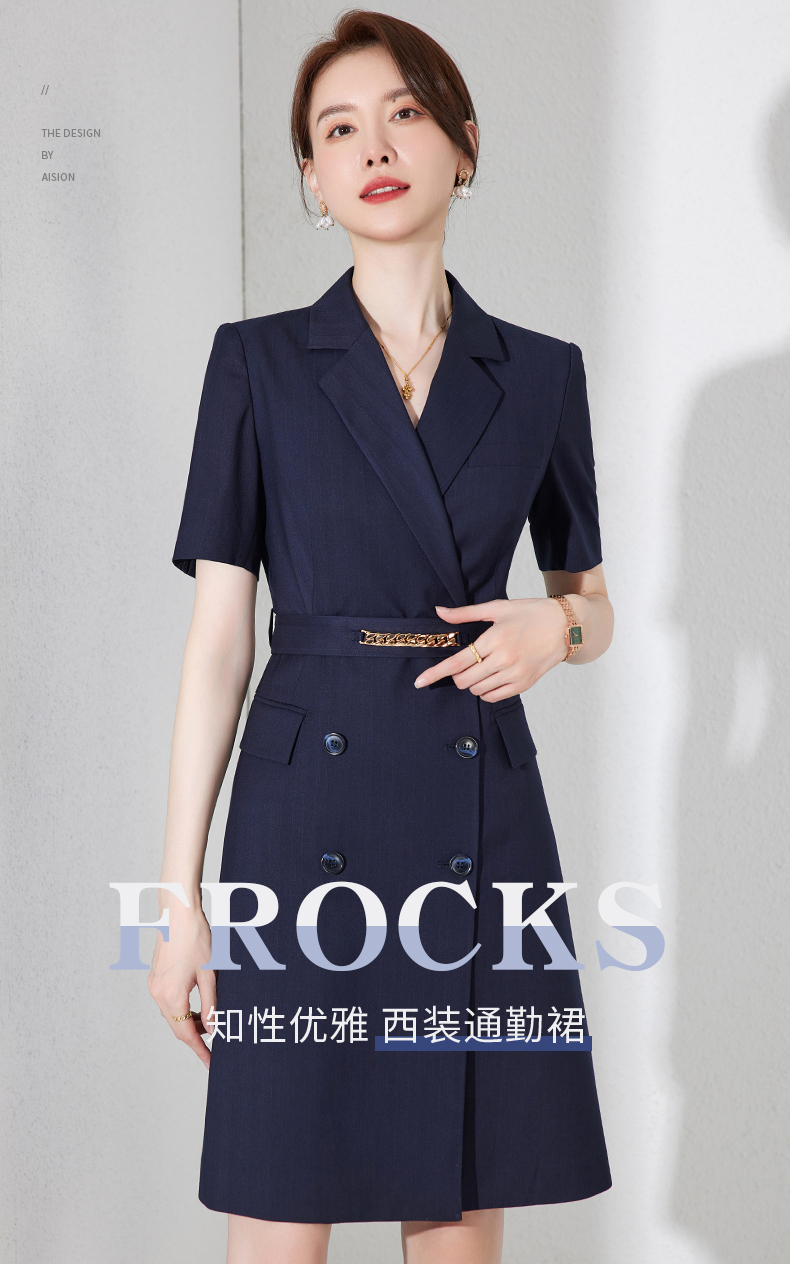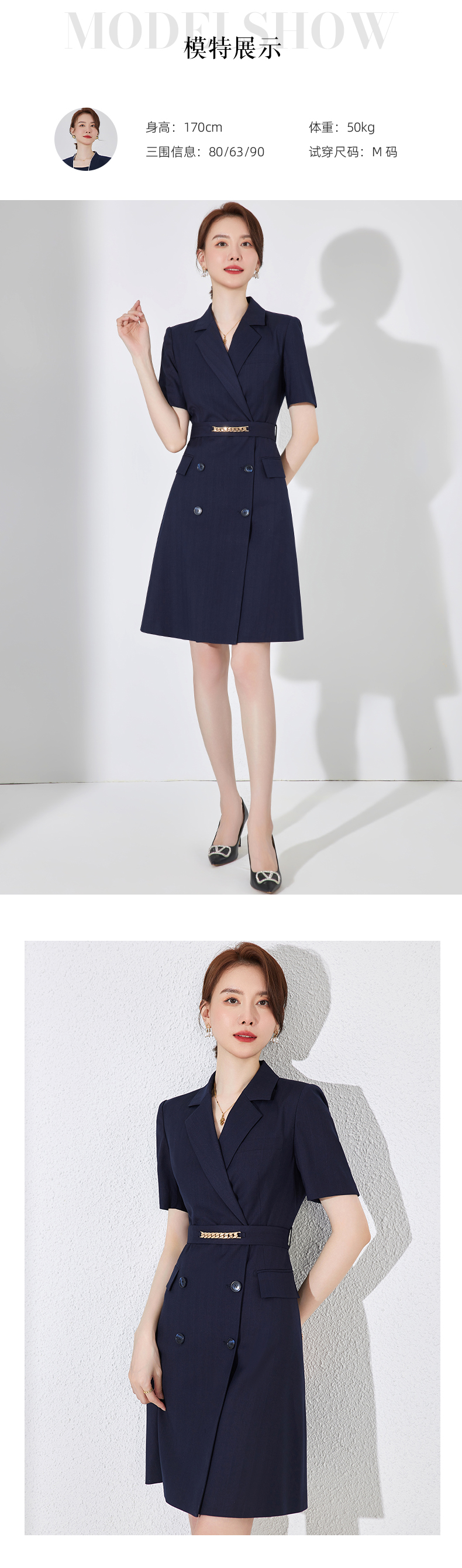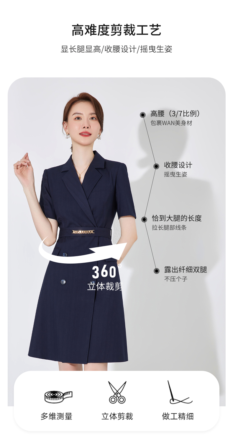 高端职业洋装女2023夏季新款藏青色短袖西装裙薄款通勤气质正装