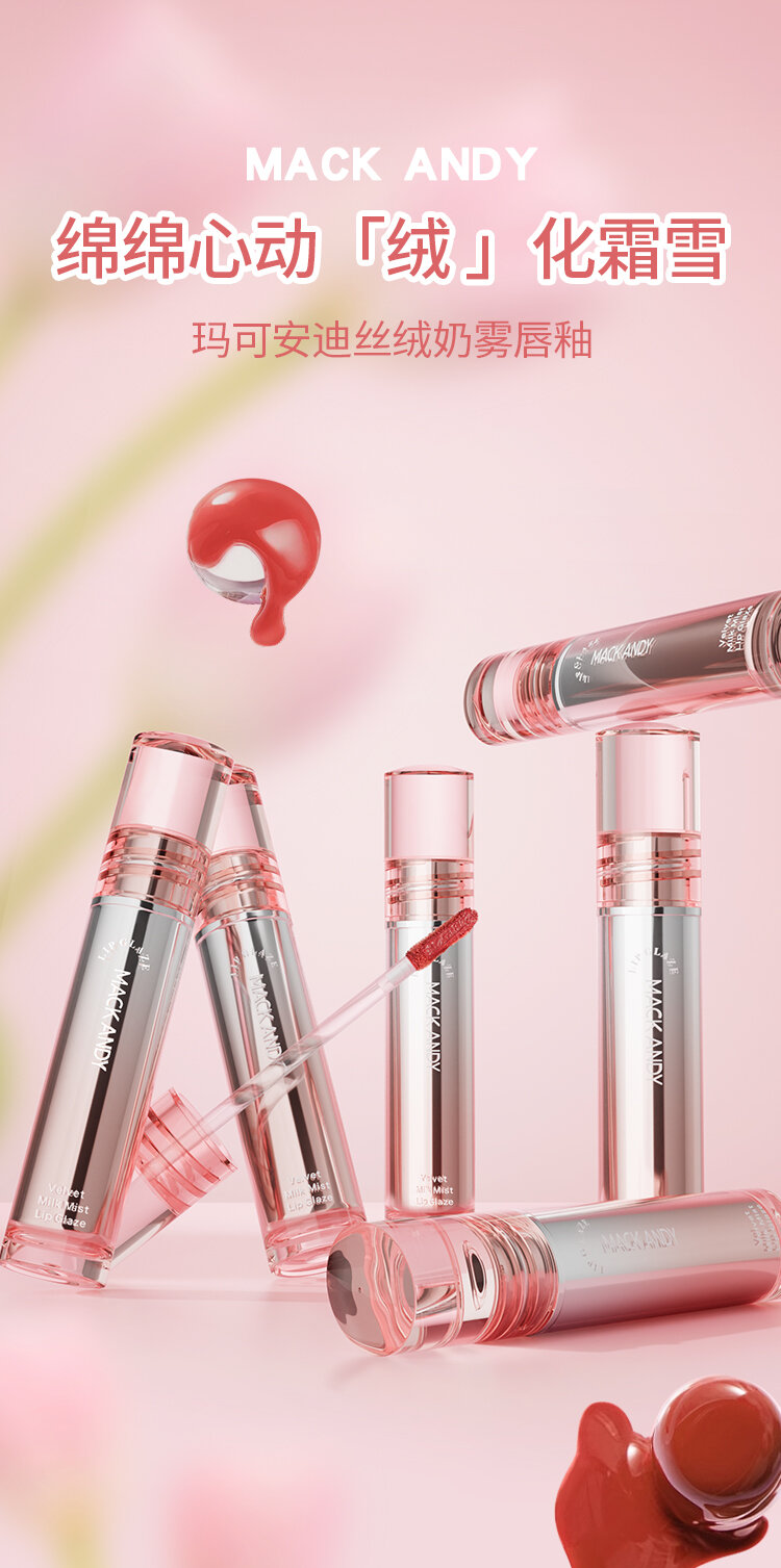 夏日氛围感女神必备!【MACK ANDY--丝绒奶雾唇釉】柔雾哑光的妆效 轻盈干爽的粉霜状 膏体细腻丝滑 显白显气色显年轻 轻松勾画饱满上色 彩色多巴胺6色可选~