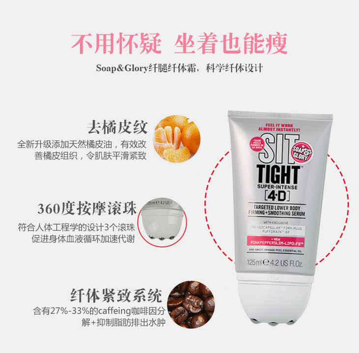「坐着 躺着都能瘦的瘦身霜」英国Soap&Glory滚珠4DTSIT TIGH坐着瘦纤细身体腿臀腰腹部紧致霜香港直邮