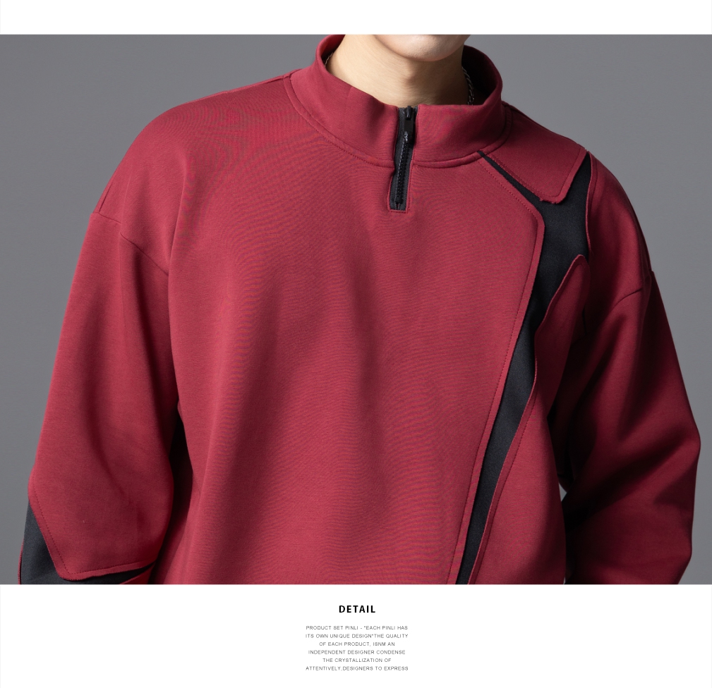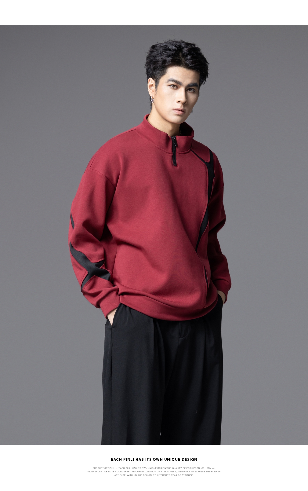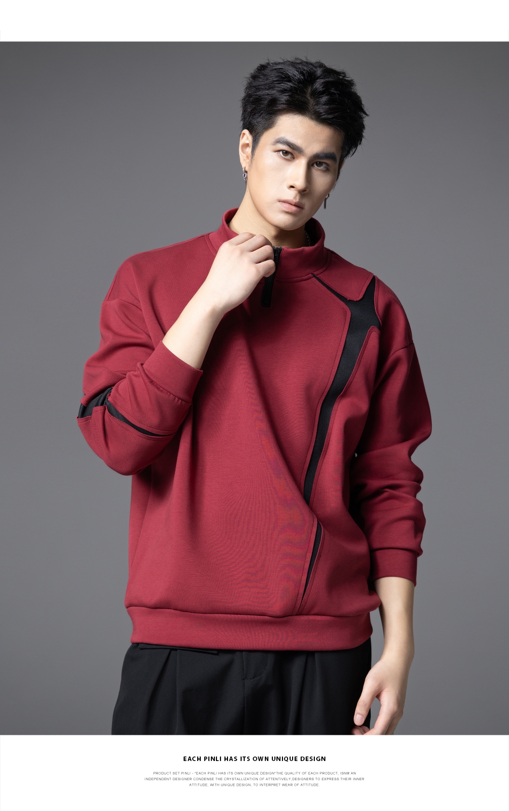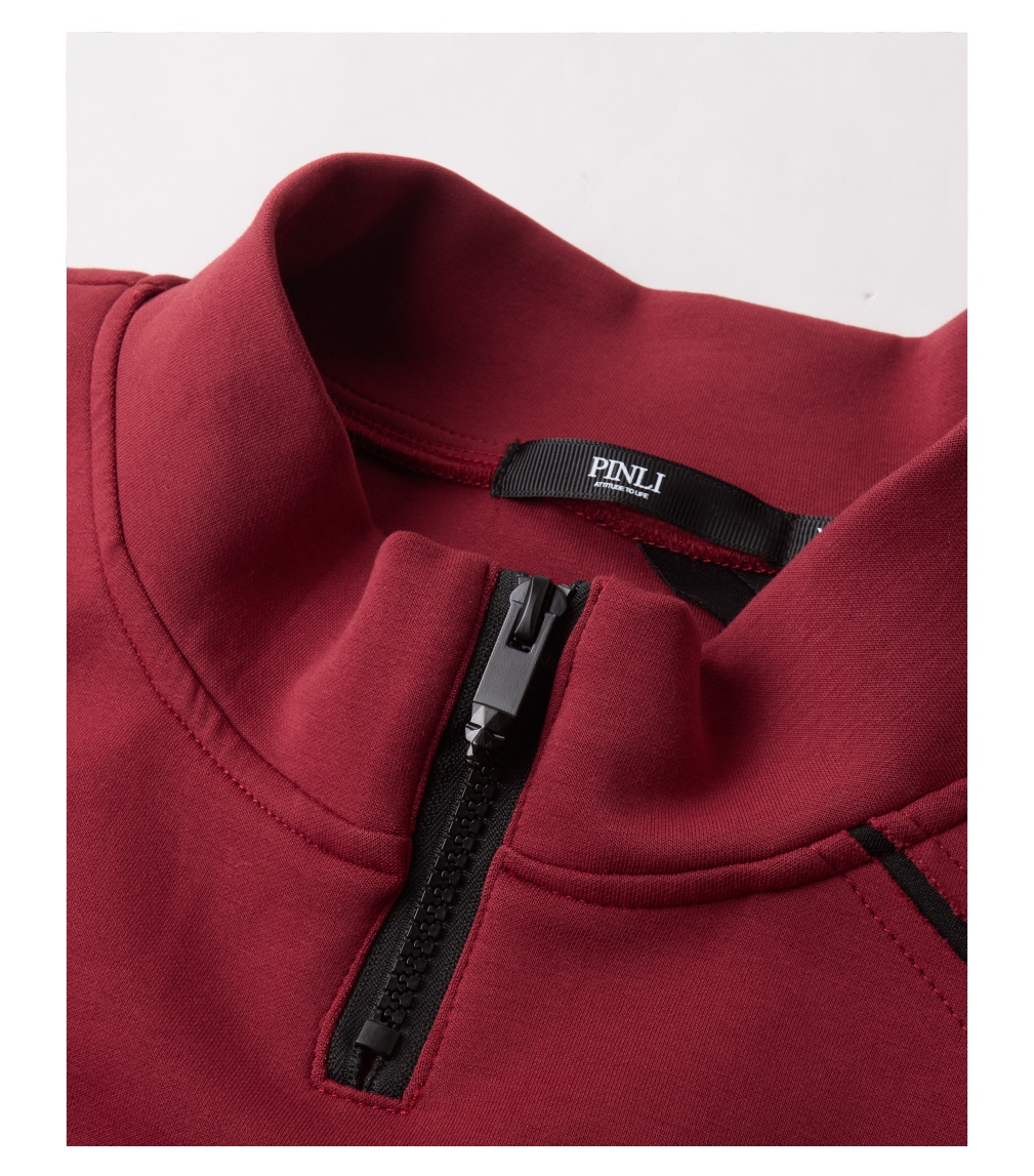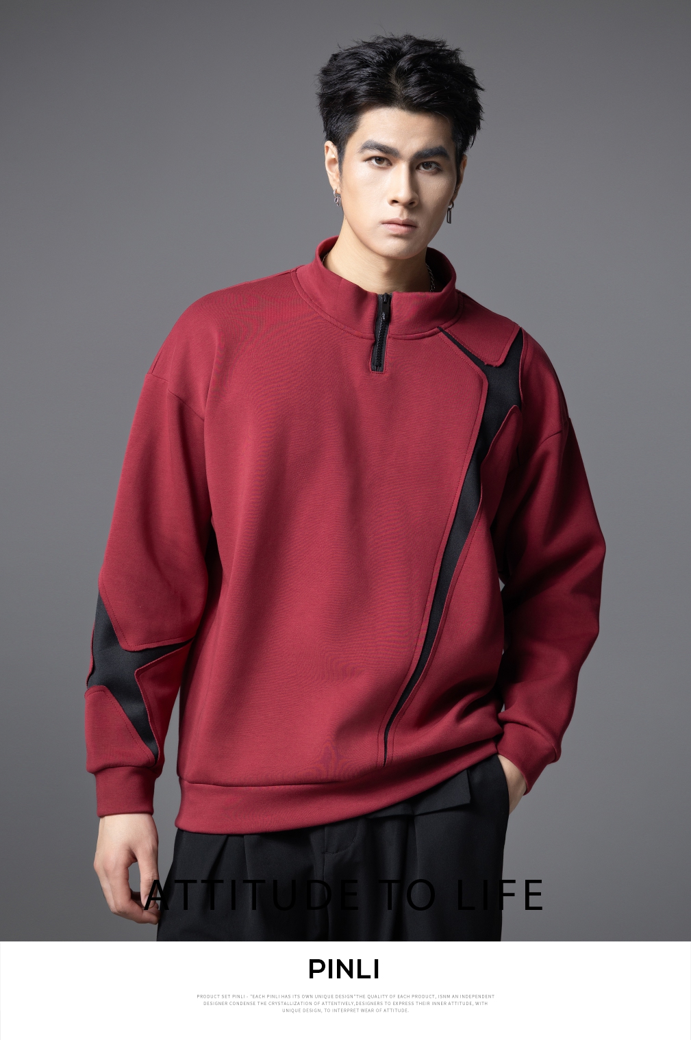 PINLI品立2025秋季新款潮牌高领拉链宽松卫衣男撞色复古休闲上衣B253109011