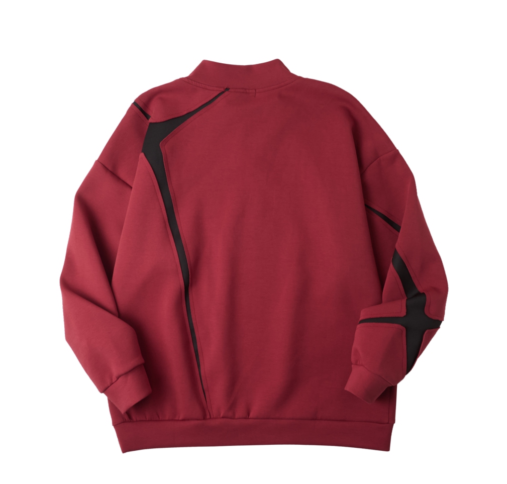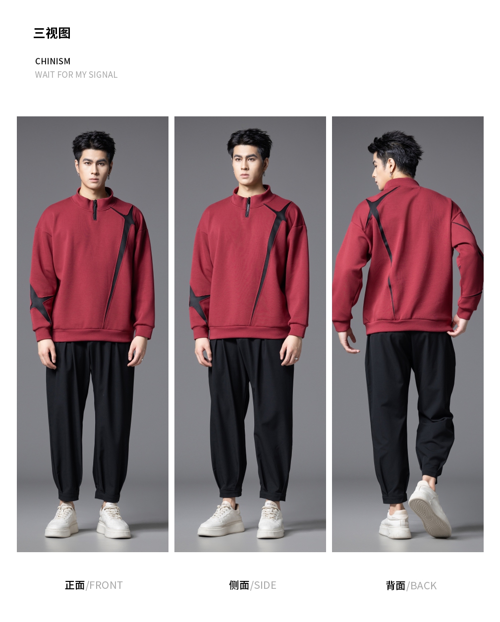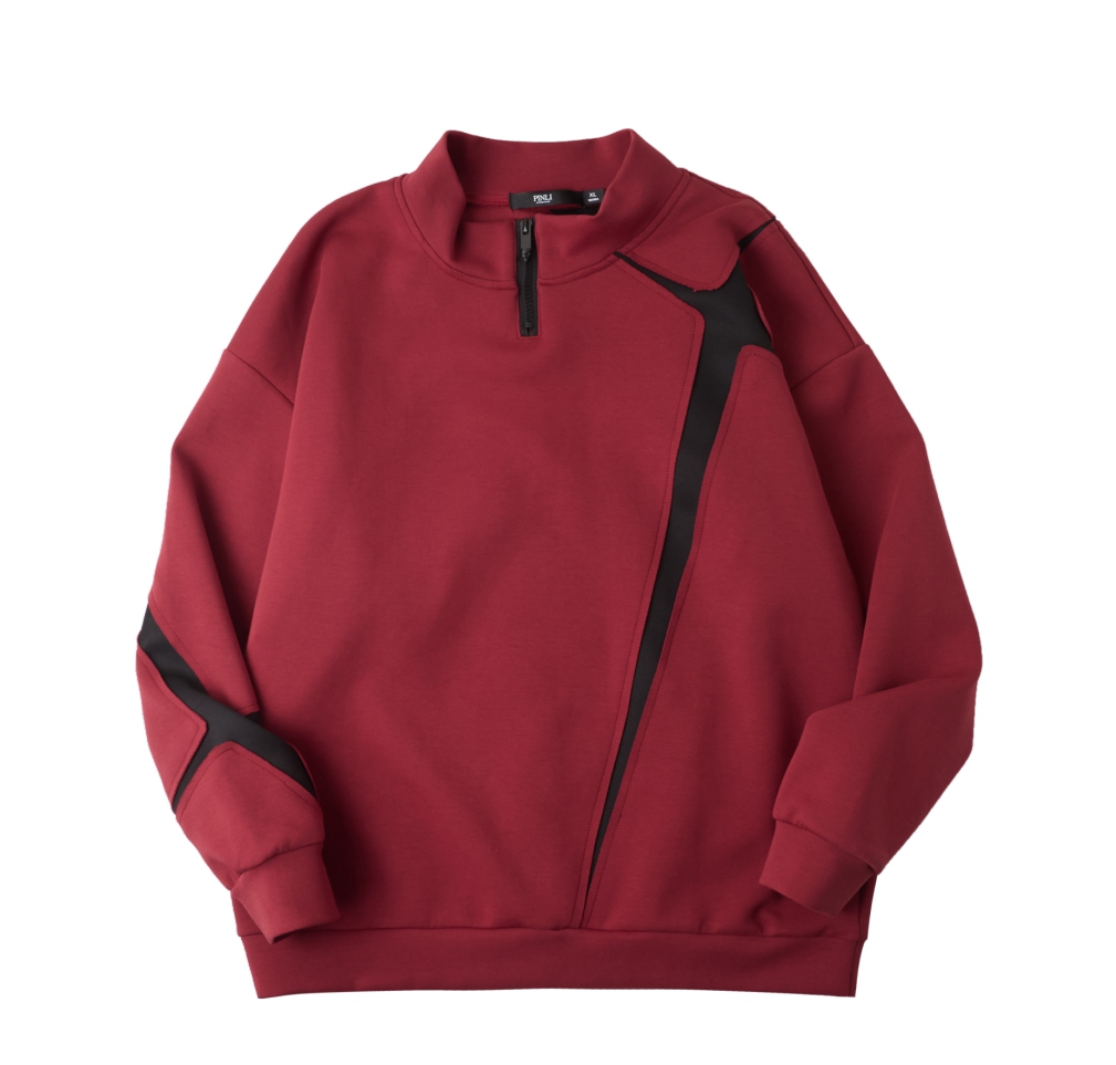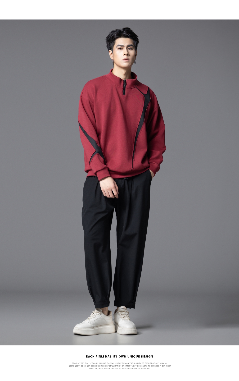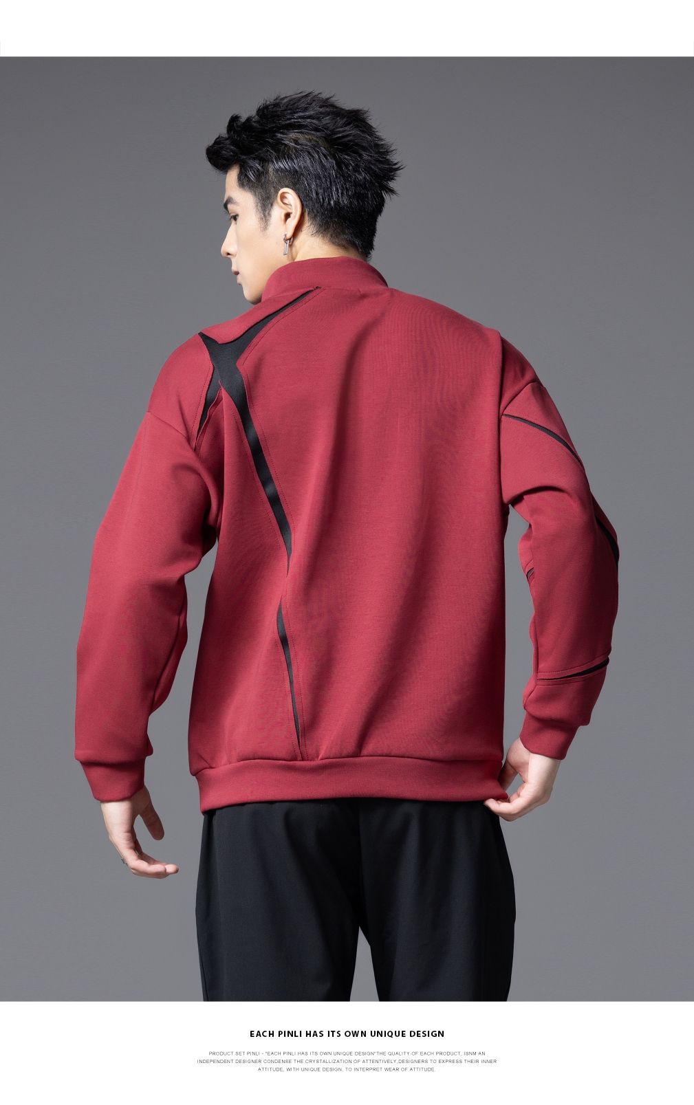 PINLI品立2025秋季新款潮牌高领拉链宽松卫衣男撞色复古休闲上衣B253109011
