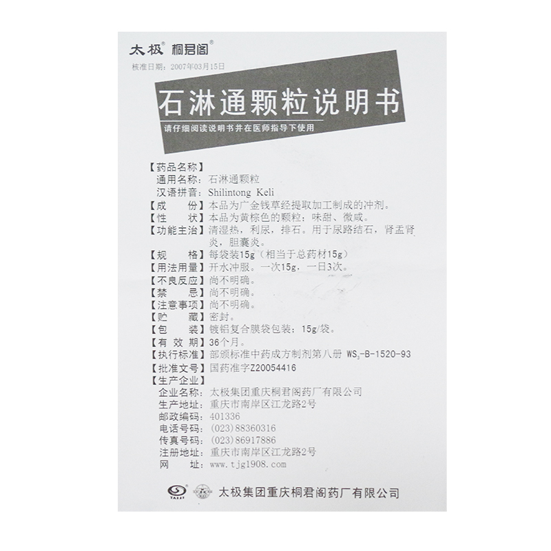 包邮低至18/盒】太极 石淋通颗粒15g*10袋/盒 清湿热 利尿 排石的功效 用于尿路结石 肾盂肾炎 胆囊炎