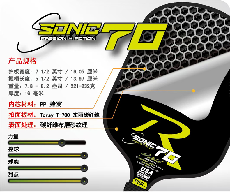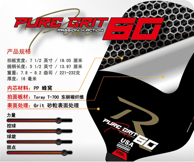 RSL亚狮龙匹克球拍礼盒 稳定操控Sonic 70 轻盈时尚Pure Grit 80 轻松击球Thunder 90匹克拍礼盒