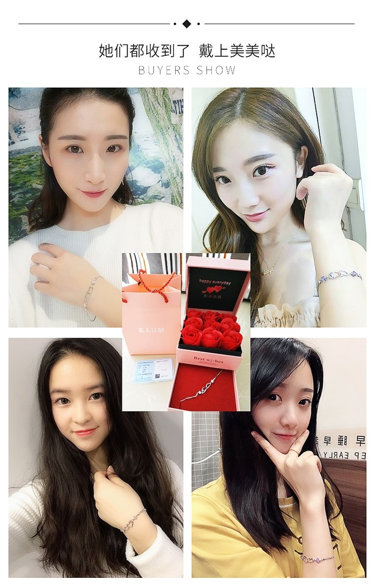 六鑫珠宝 浪漫双心幸福信号手链 925银