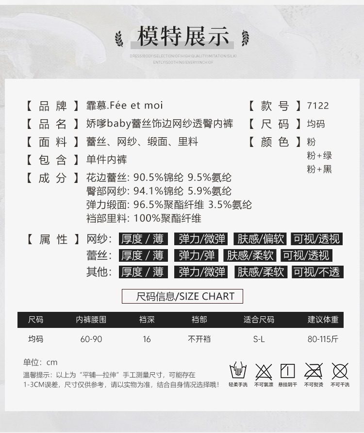蕾丝饰边网纱透臀内裤7122(可穿戴跳蛋)
