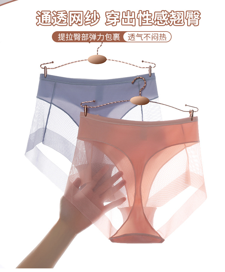 【穿出性感翘臀❗️性感无痕网纱内裤】半透网纱拼接「火辣撩人心弦」塑造性感立体翘臀,轻盈凉感冰丝,让肌肤自由呼吸,季薄款中腰紧身大码,塑身收腹提臀裤L