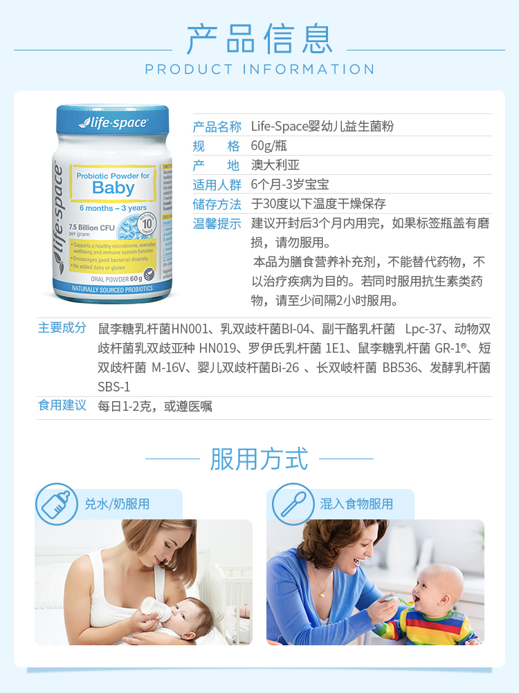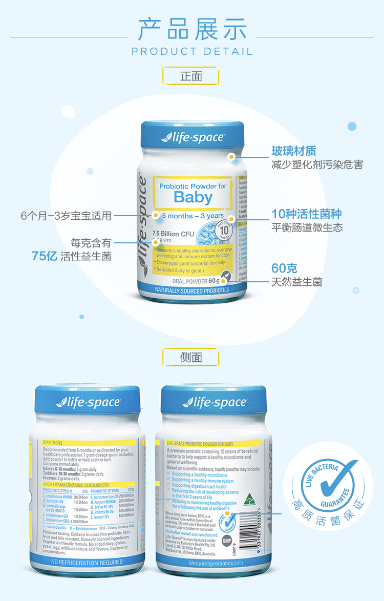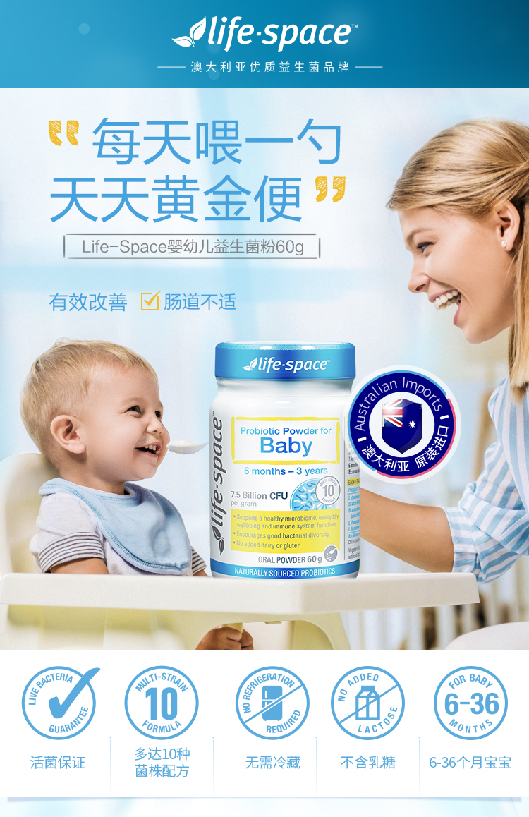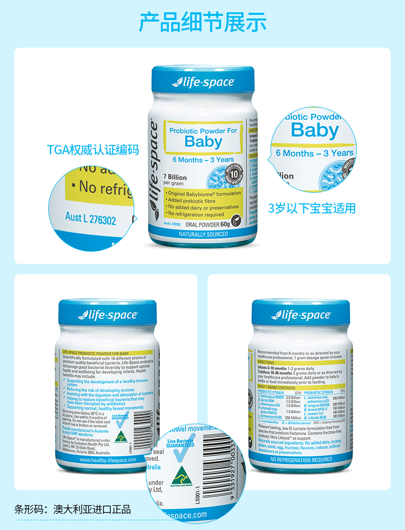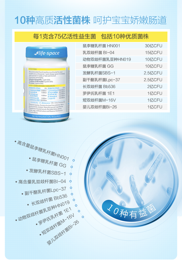 刘涛推荐 life space婴儿婴幼儿益生菌粉调理肠胃6-36个月儿童宝宝
