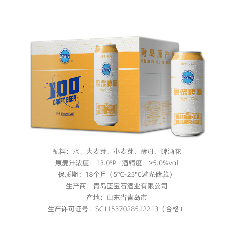 【特价款-新日期】青岛蓝宝石原浆啤酒 5.0%vol 500ml