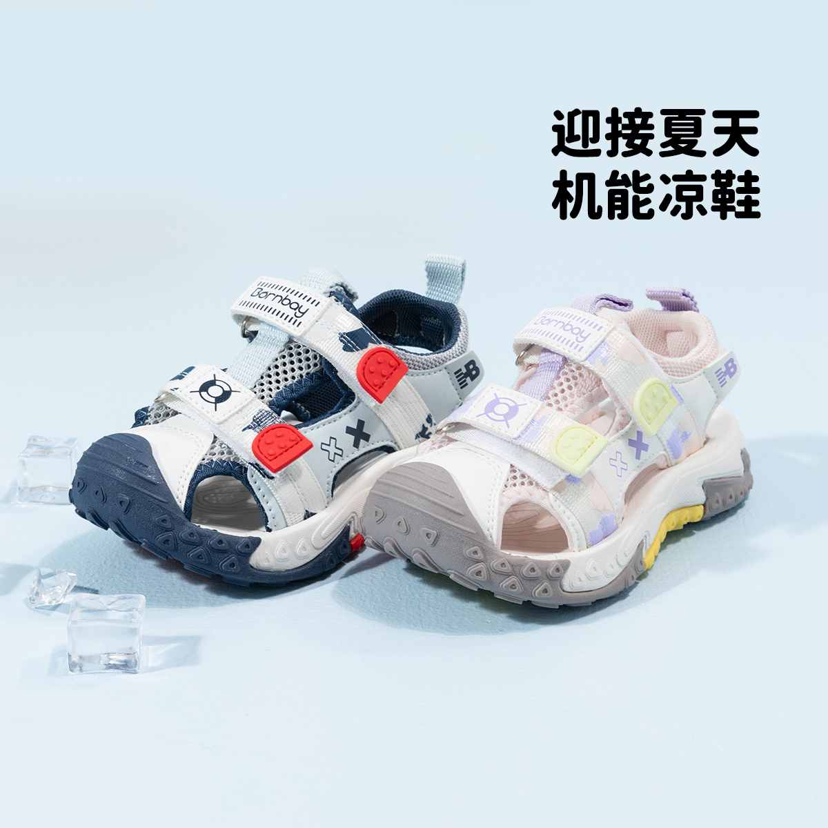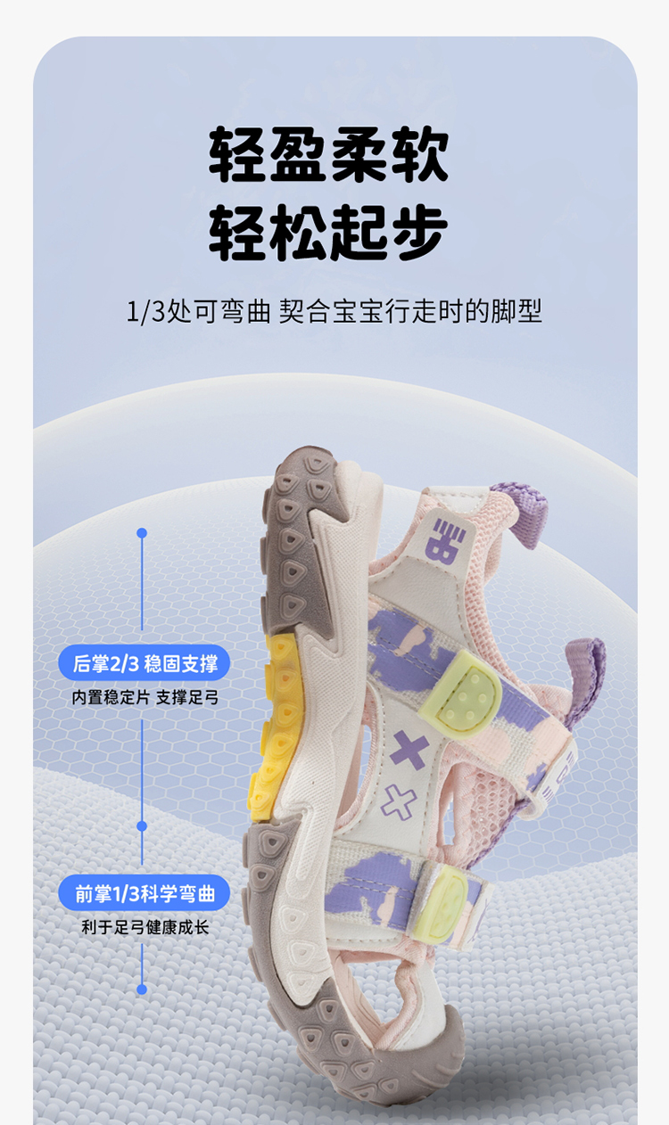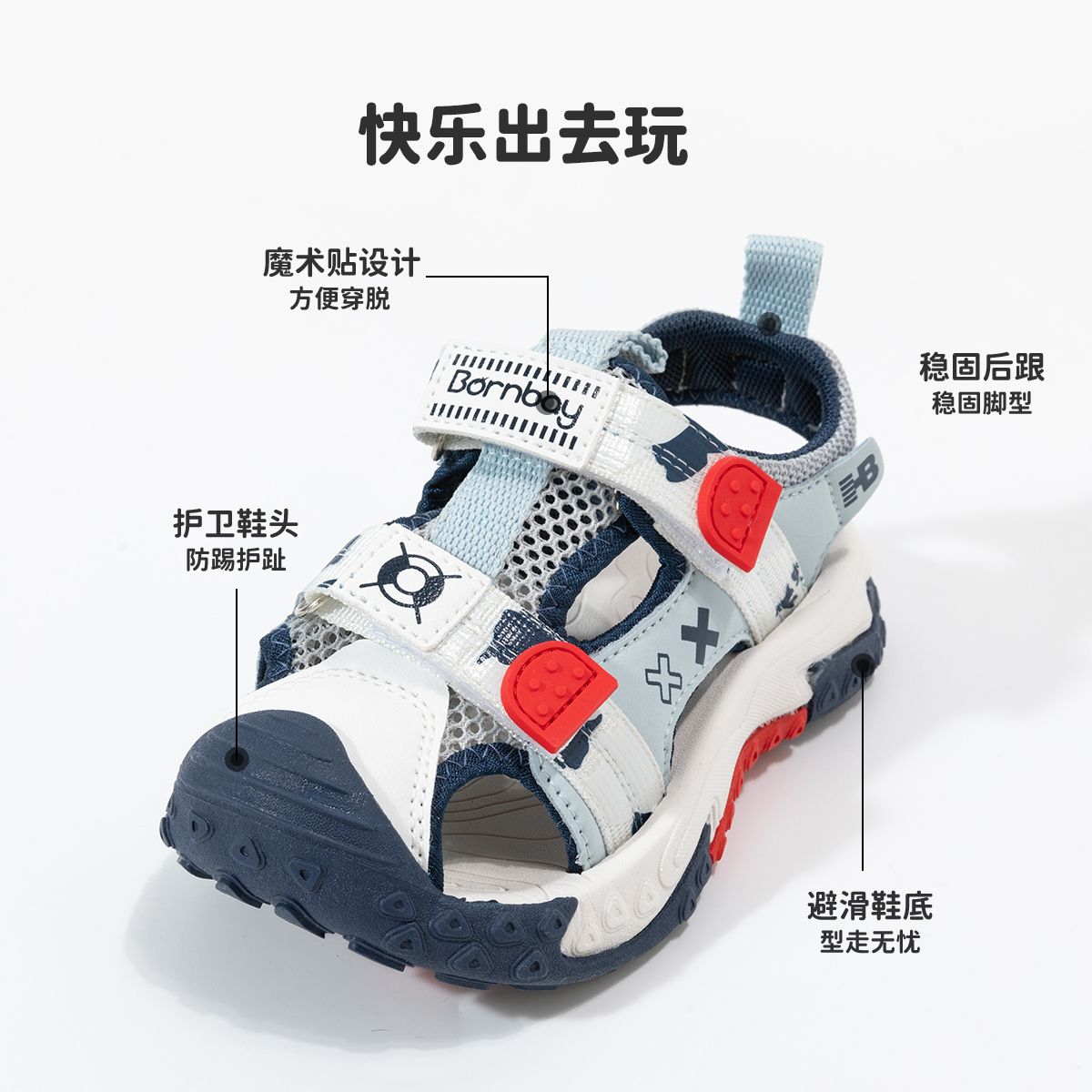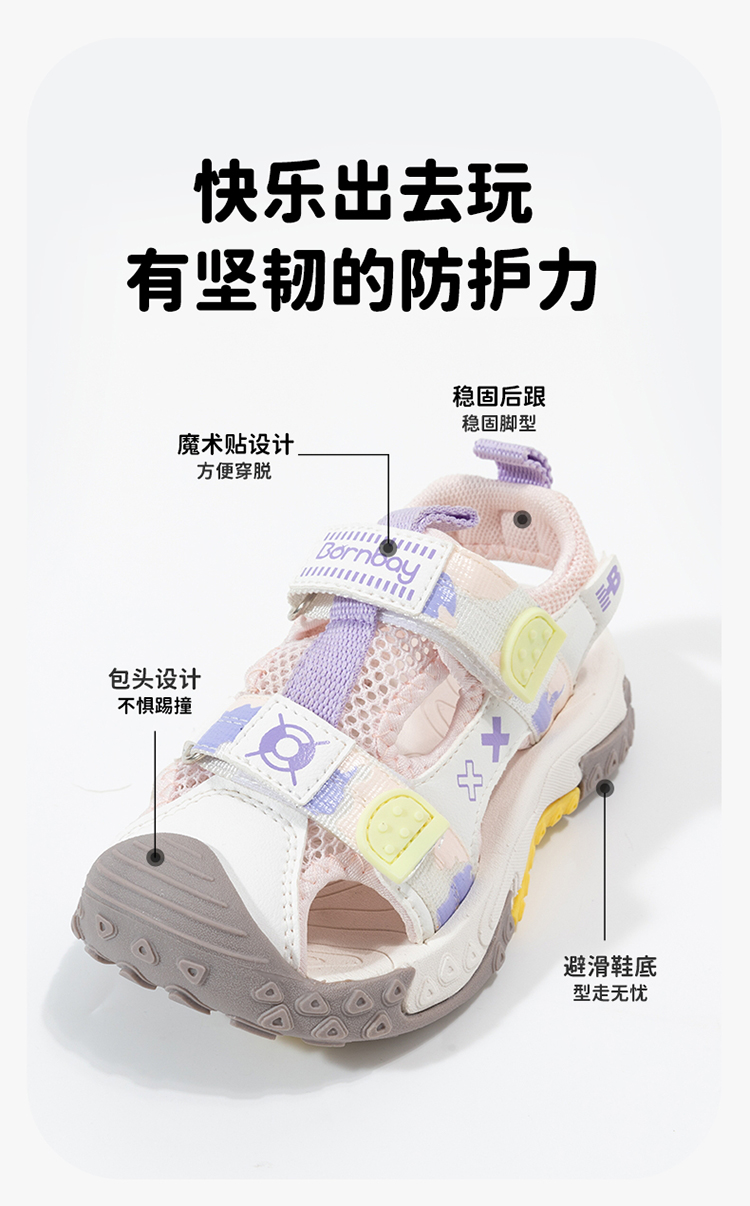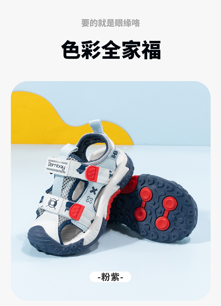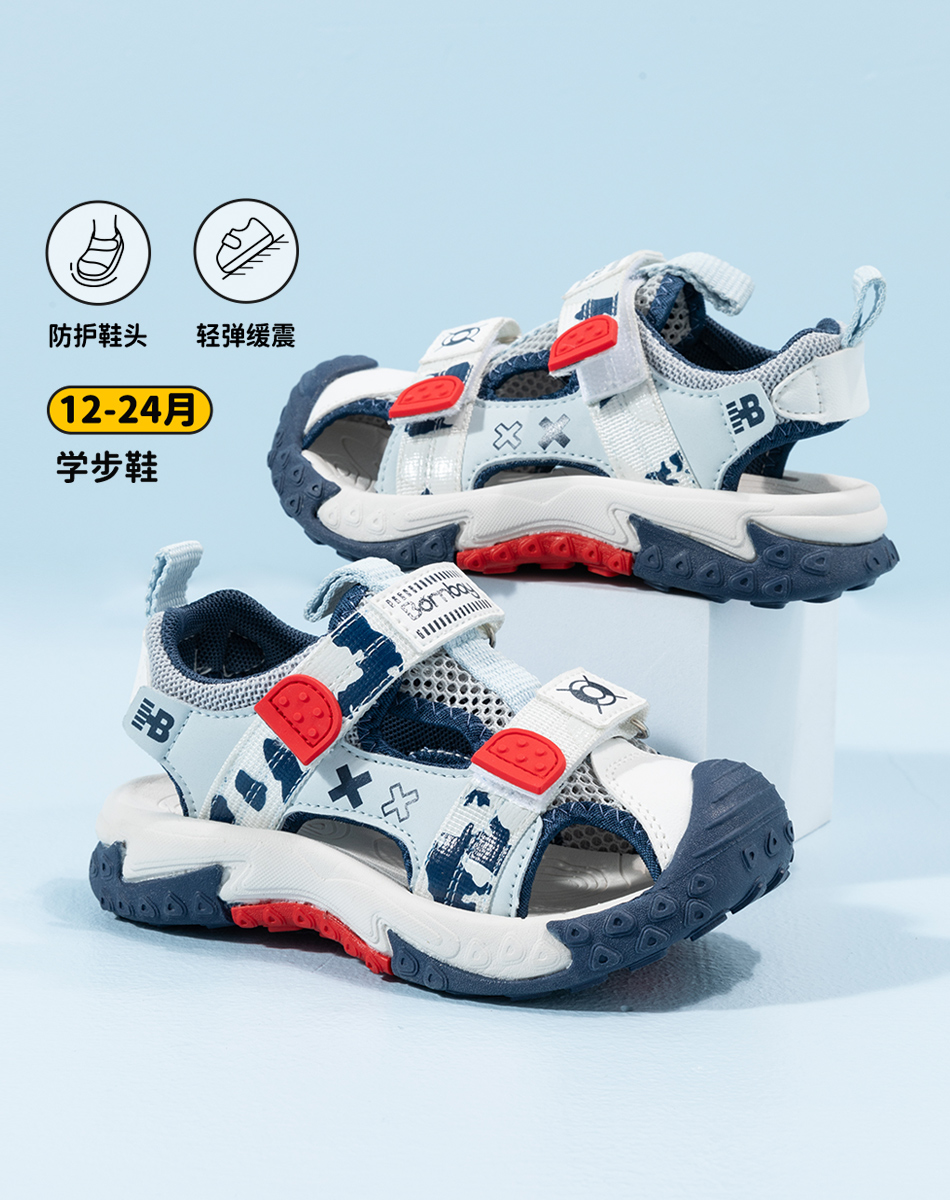 贝贝怡童鞋2022夏季男童凉鞋小童宝宝儿童凉鞋防滑魔术贴ZB2DX020