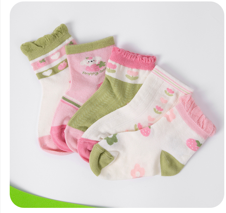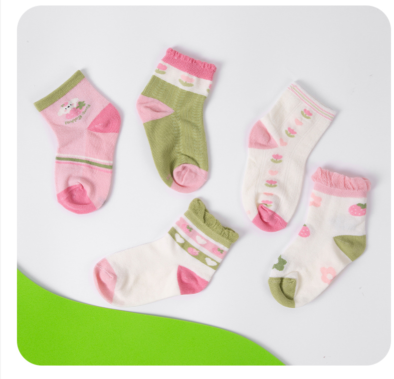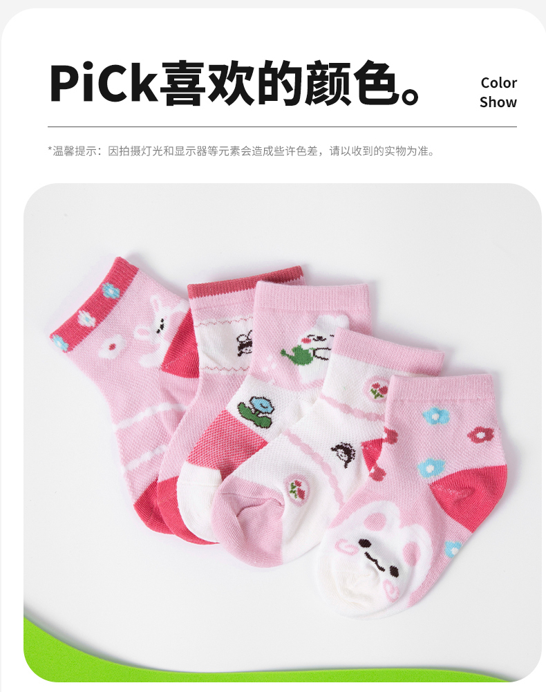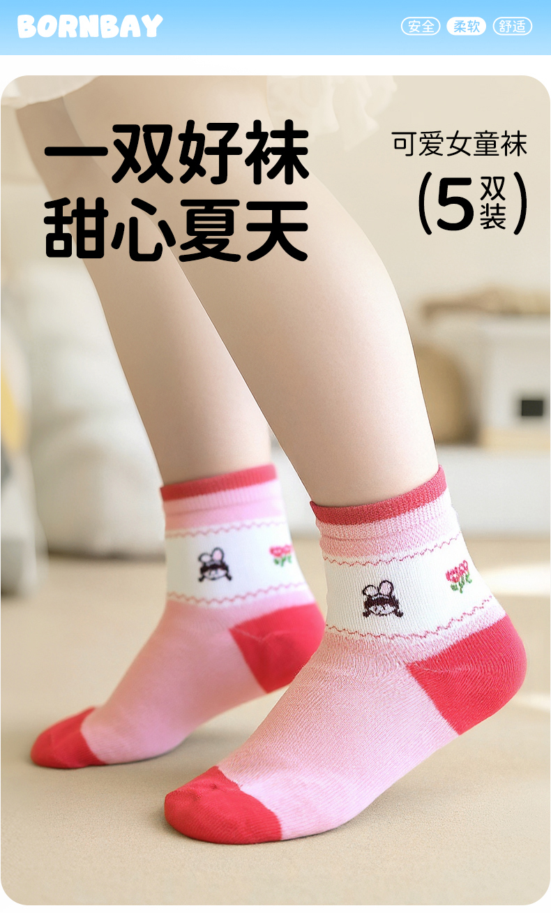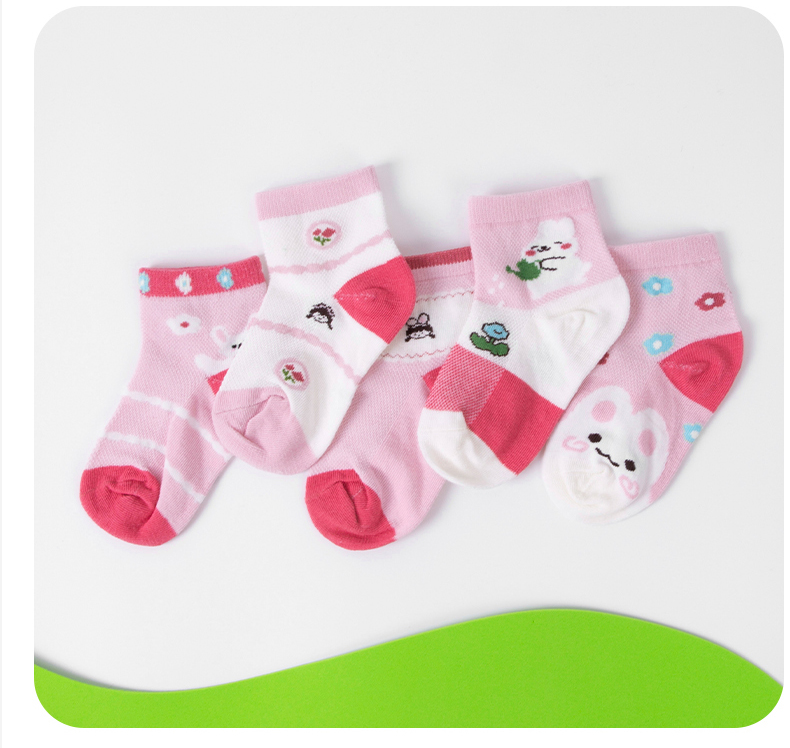 贝贝怡5双装网眼袜春夏新款女童中筒袜中大童休闲运动透气袜子ZB5EP006