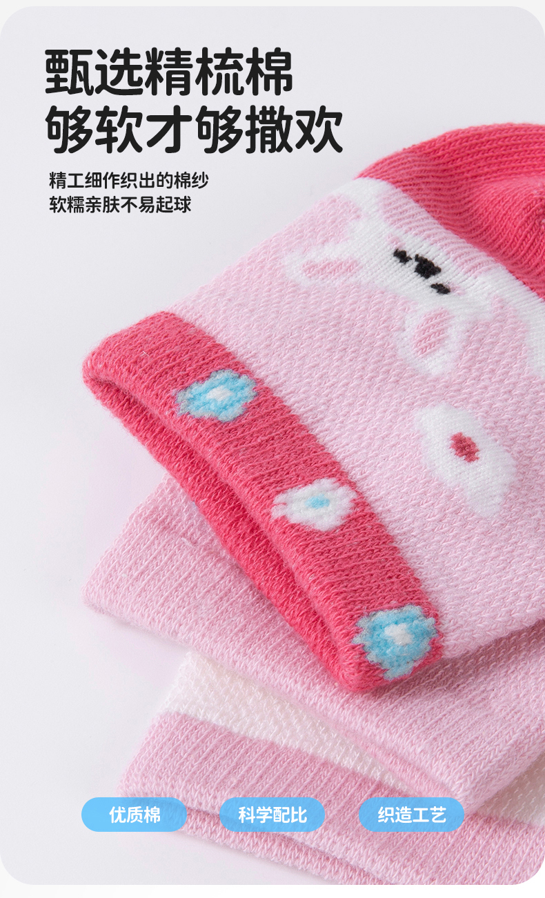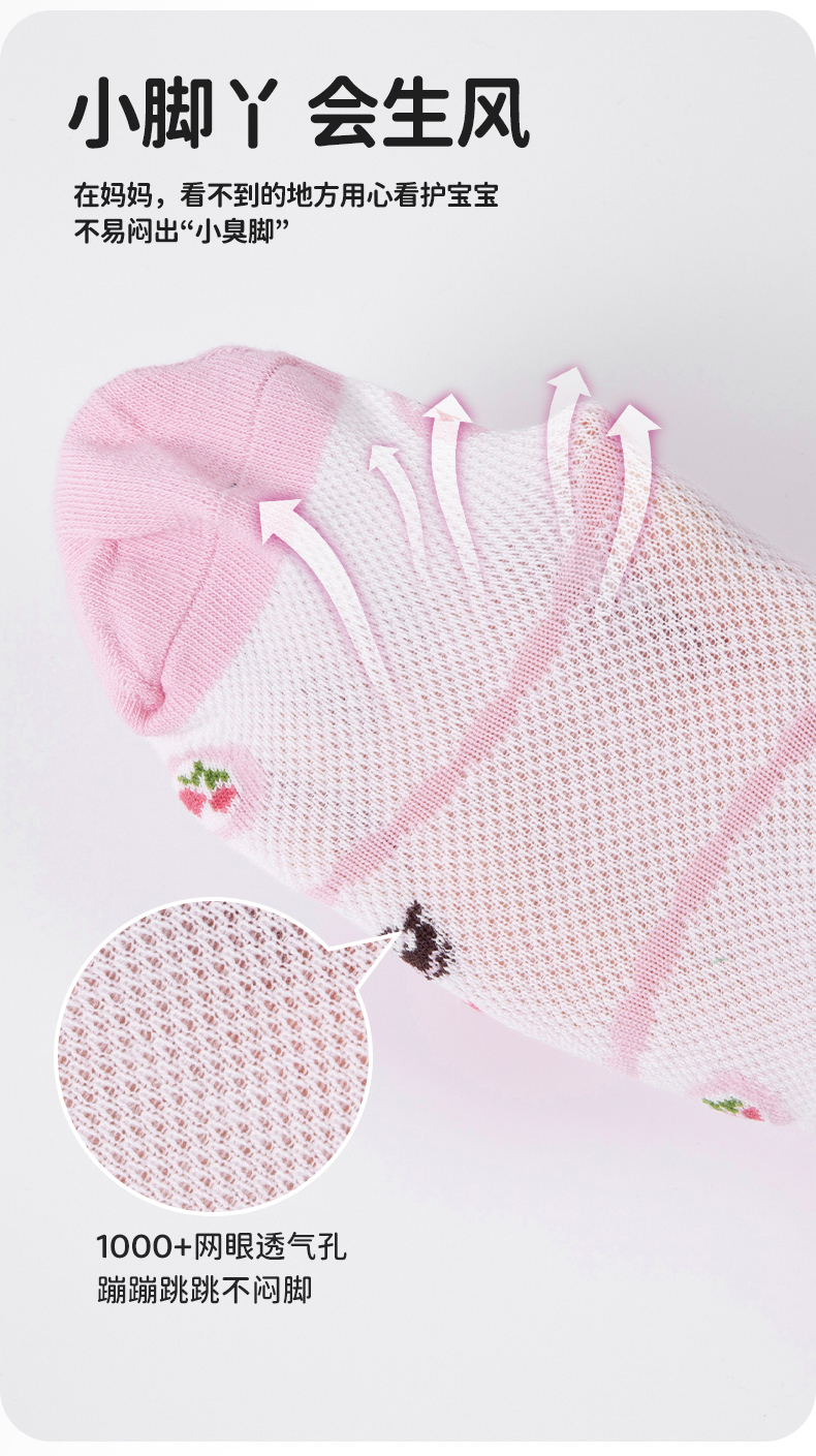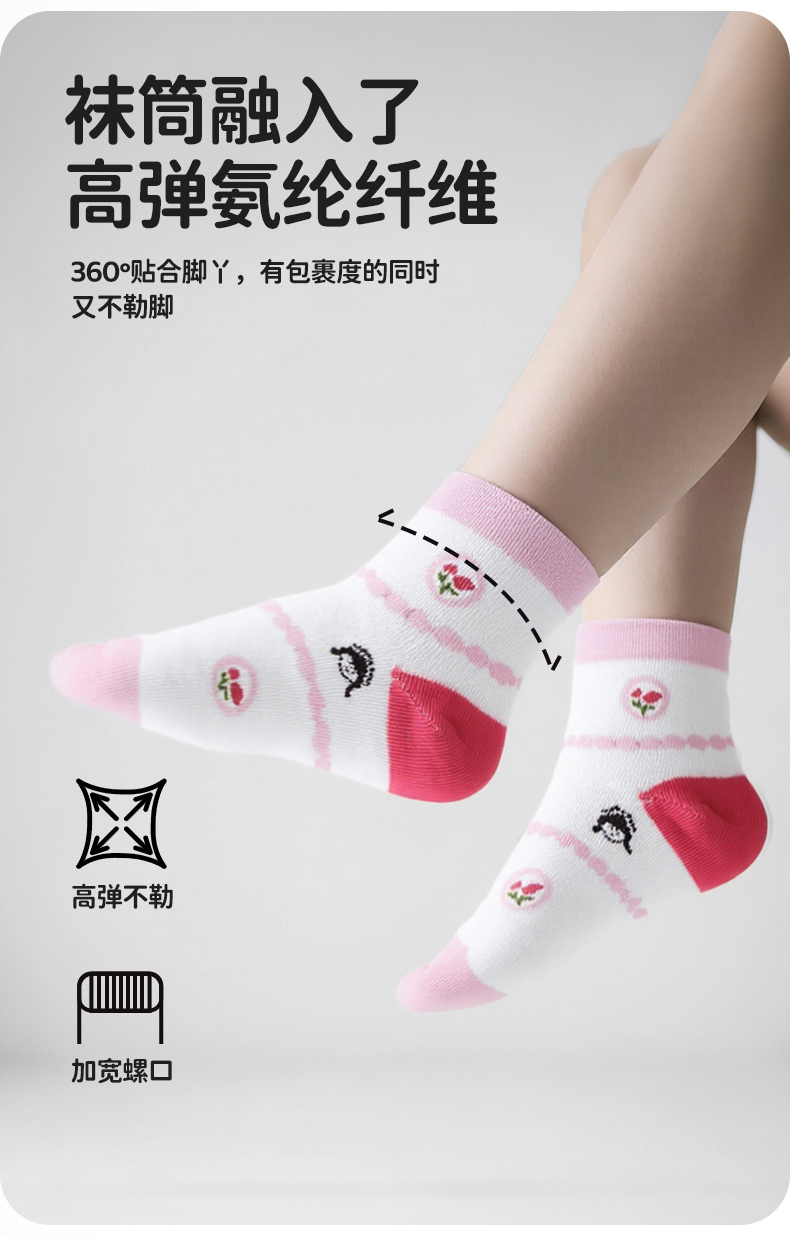 贝贝怡5双装网眼袜春夏新款女童中筒袜中大童休闲运动透气袜子ZB5EP006