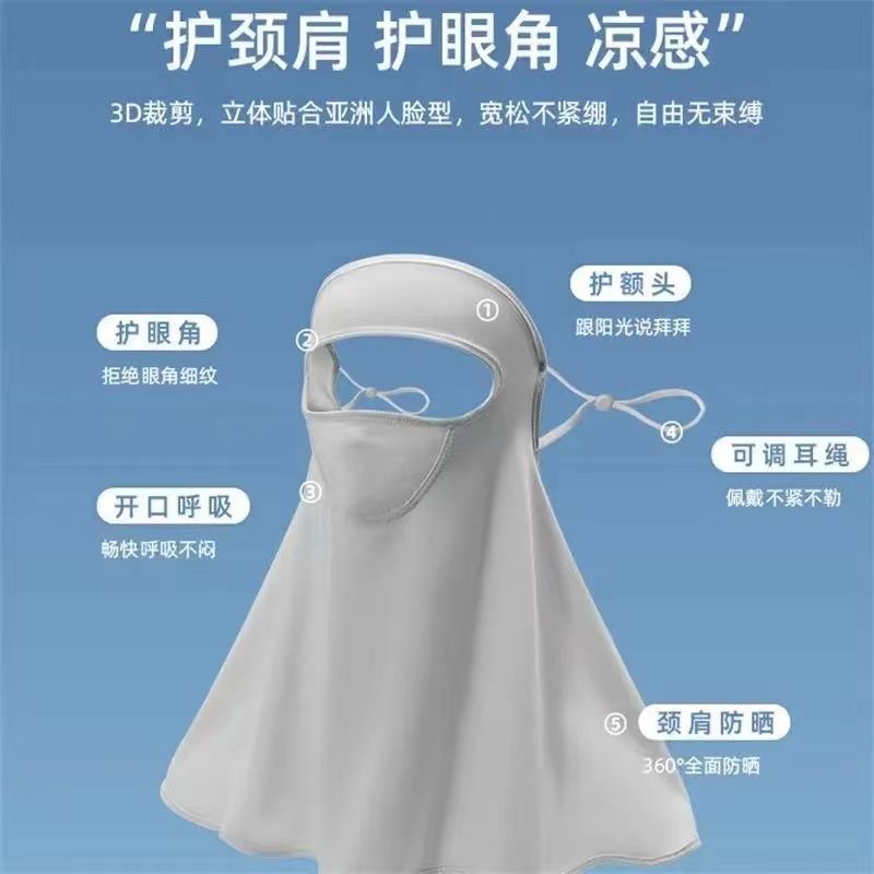 夏季防晒面罩女防紫外线全脸冰丝薄款透气遮阳脸罩护全脸眼角口罩