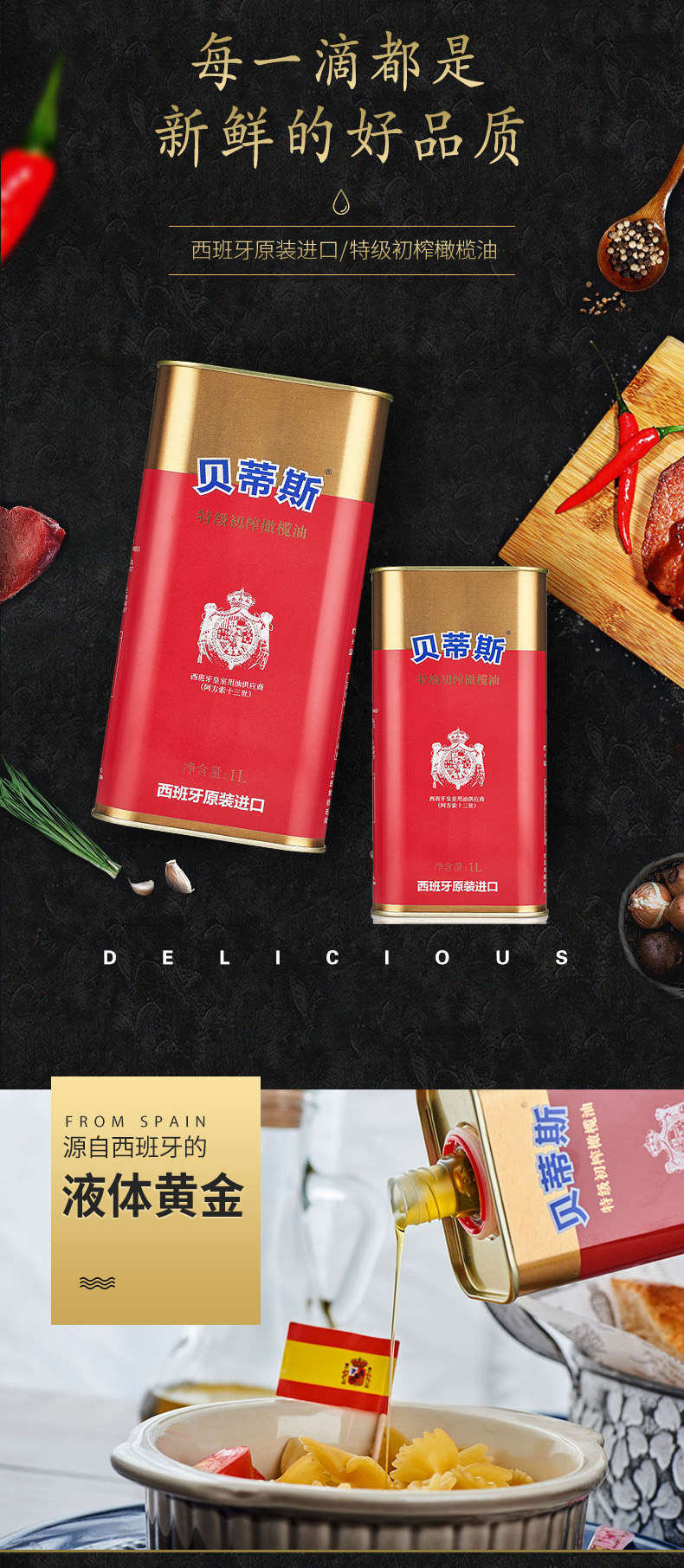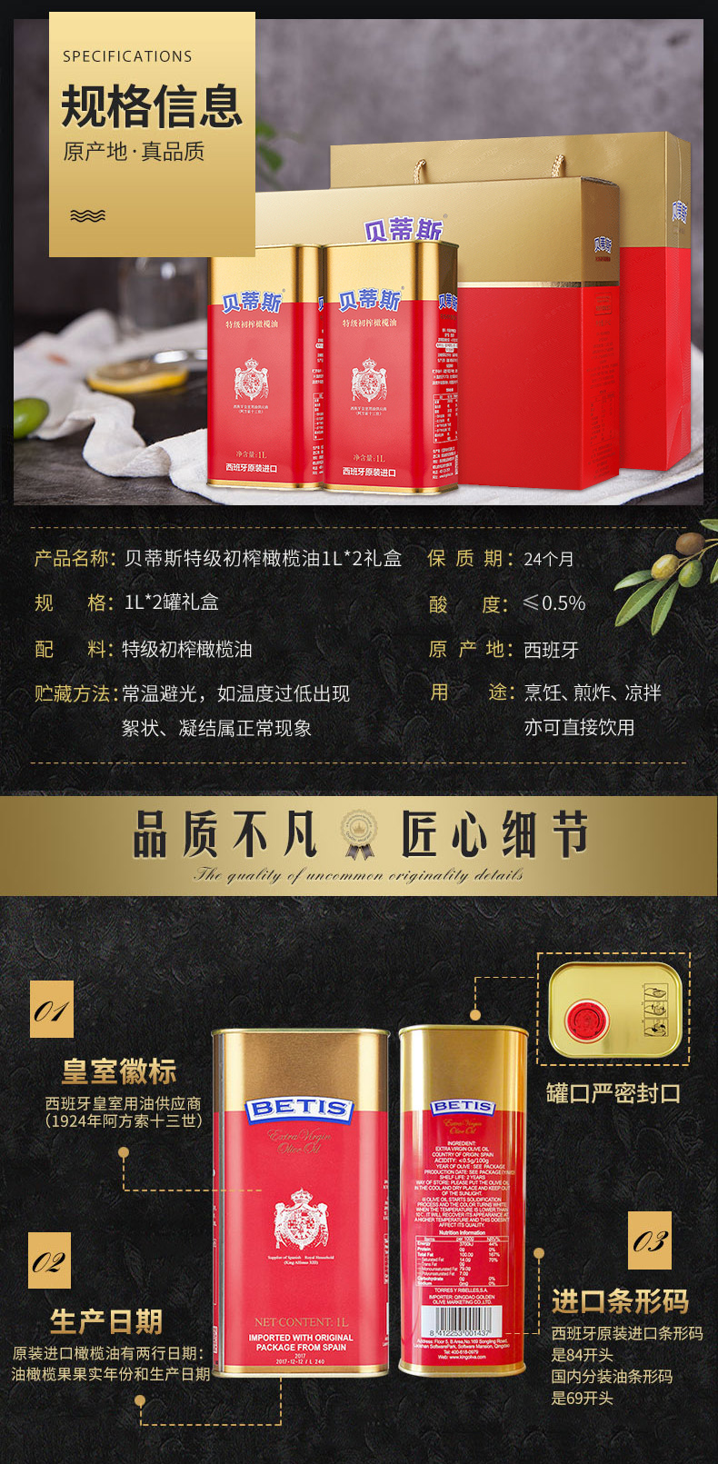 贝蒂斯 特级初榨橄榄油礼盒装 1L*2/盒